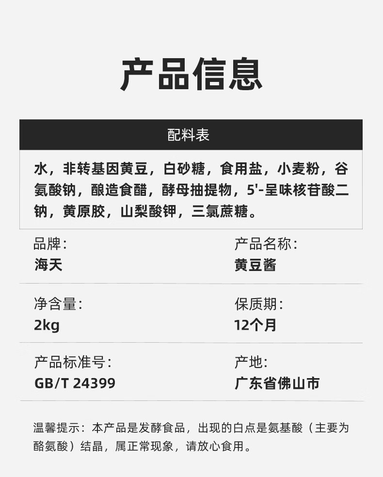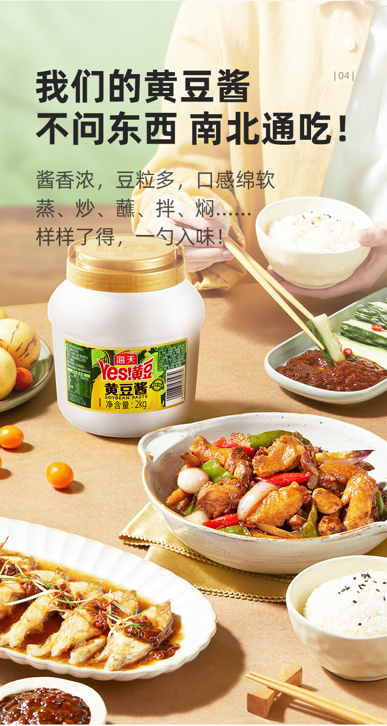 海天 黄豆酱 2kg 优选黄豆酿造 酱香浓郁 蒸炒焖拌 调味品