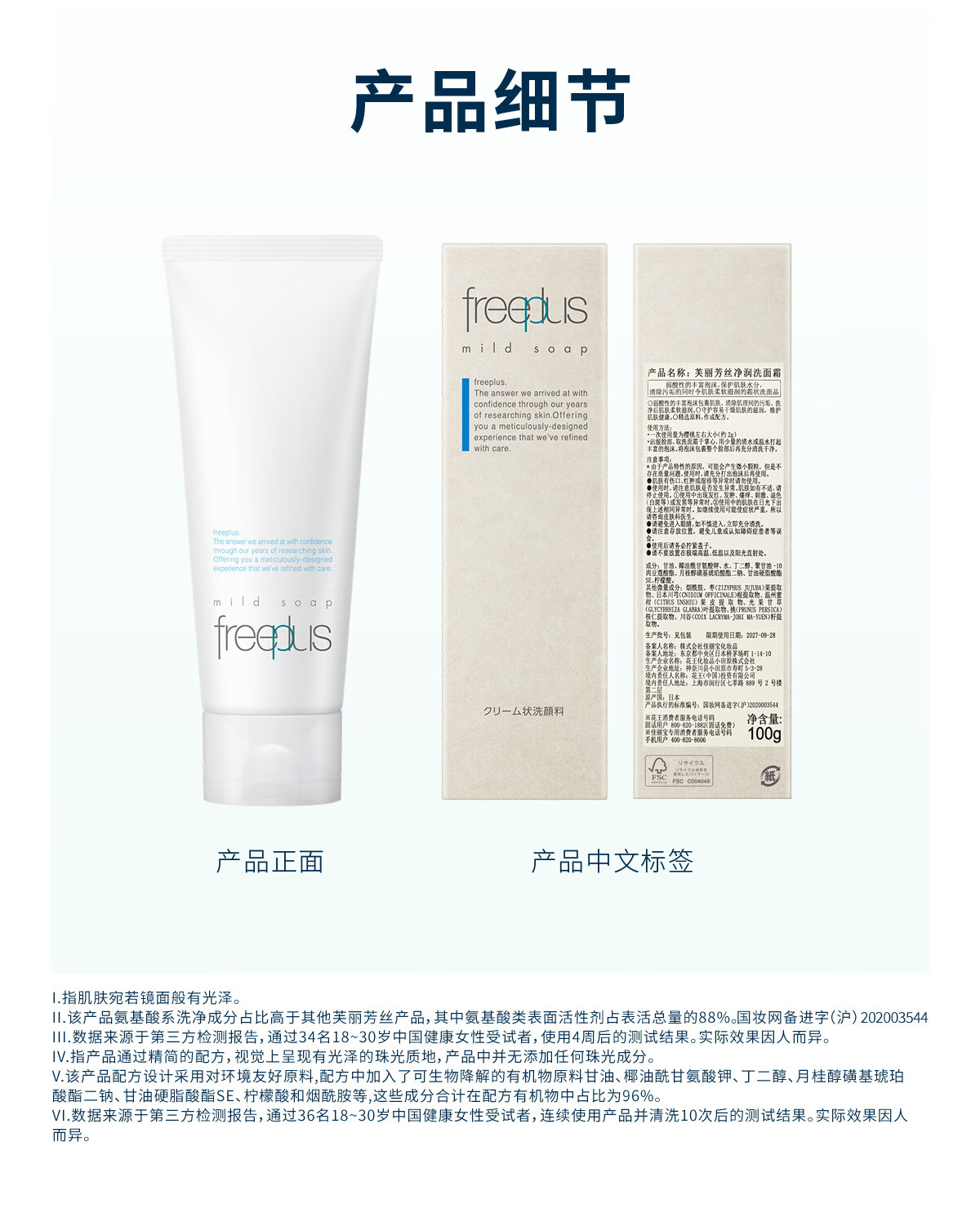 芙丽芳丝(Freeplus)洗面奶男女士氨基酸洁面乳100g*2生日新年礼物送男女朋友