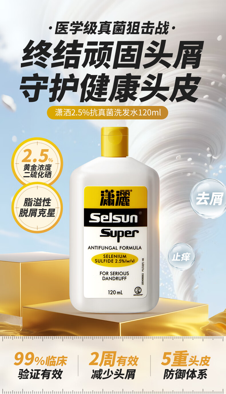 SELSUN潇洒2.5%二硫化硒洗发水120ml 控油去屑深层清洁止痒香港进口版