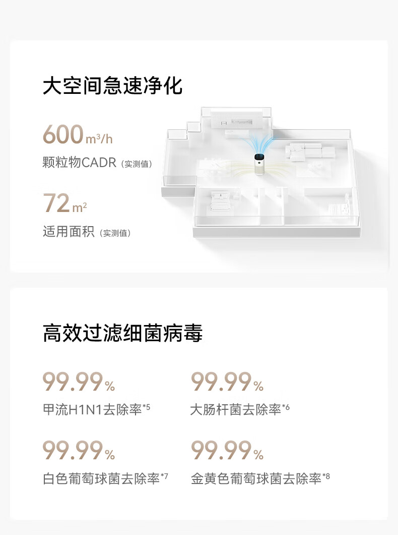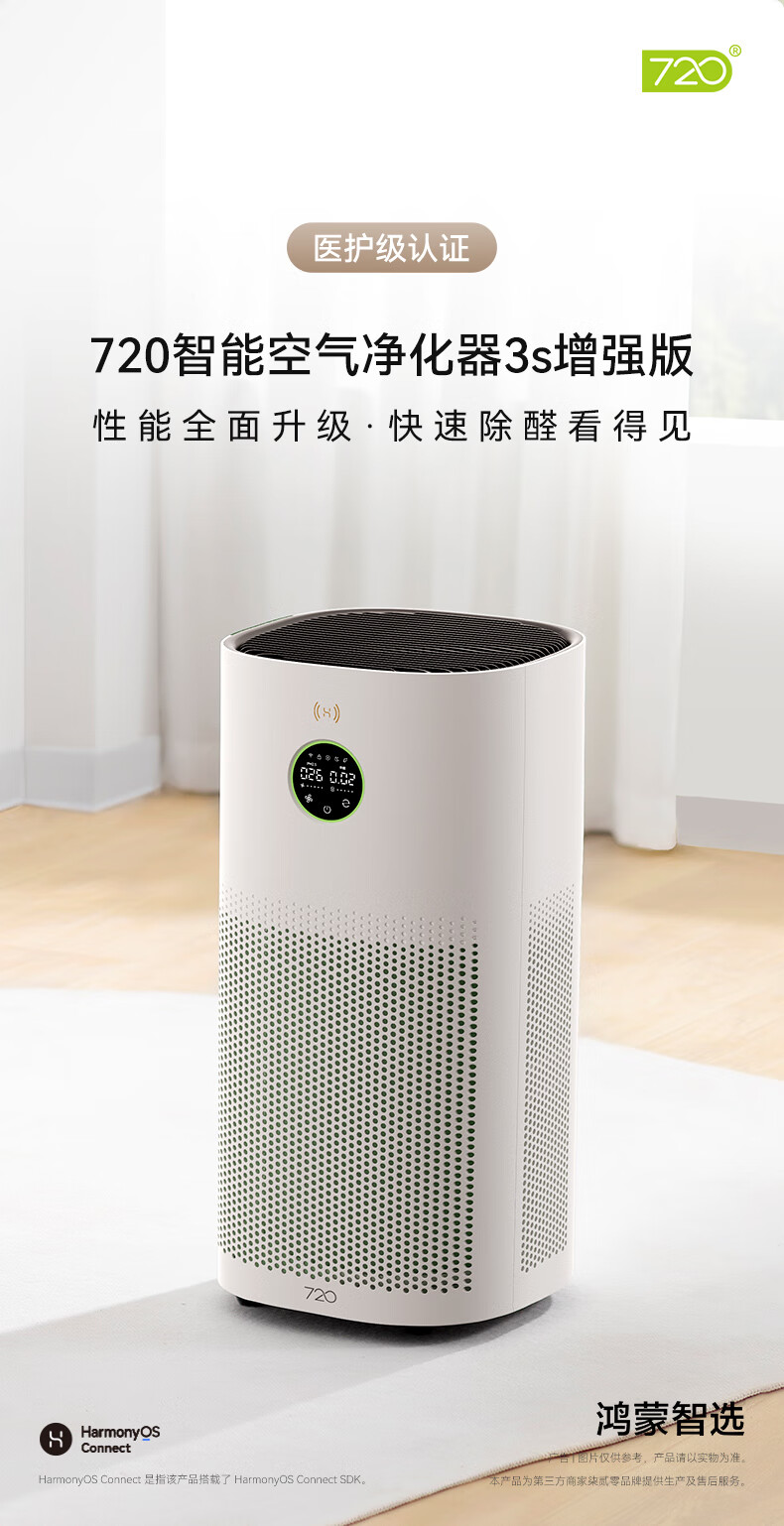 华为智选鸿蒙智选720空气净化器3s增强版 家用专业除甲醛卧室除宠物异味吸猫毛除过敏原甲醛数显国家补贴