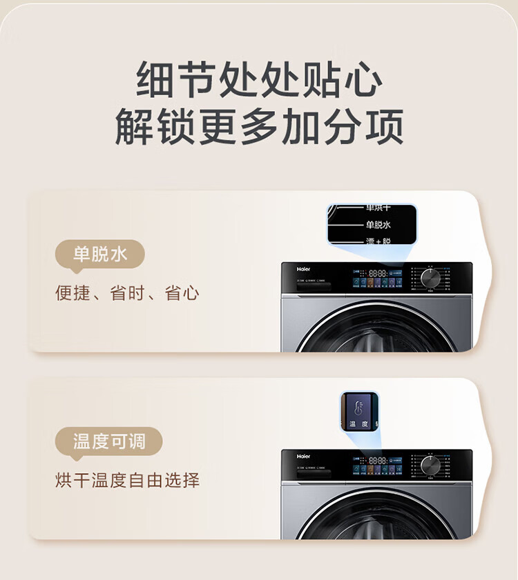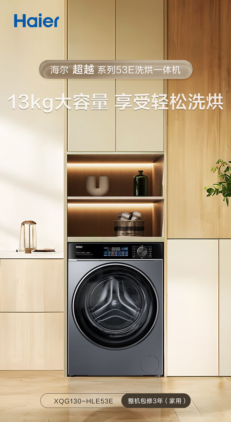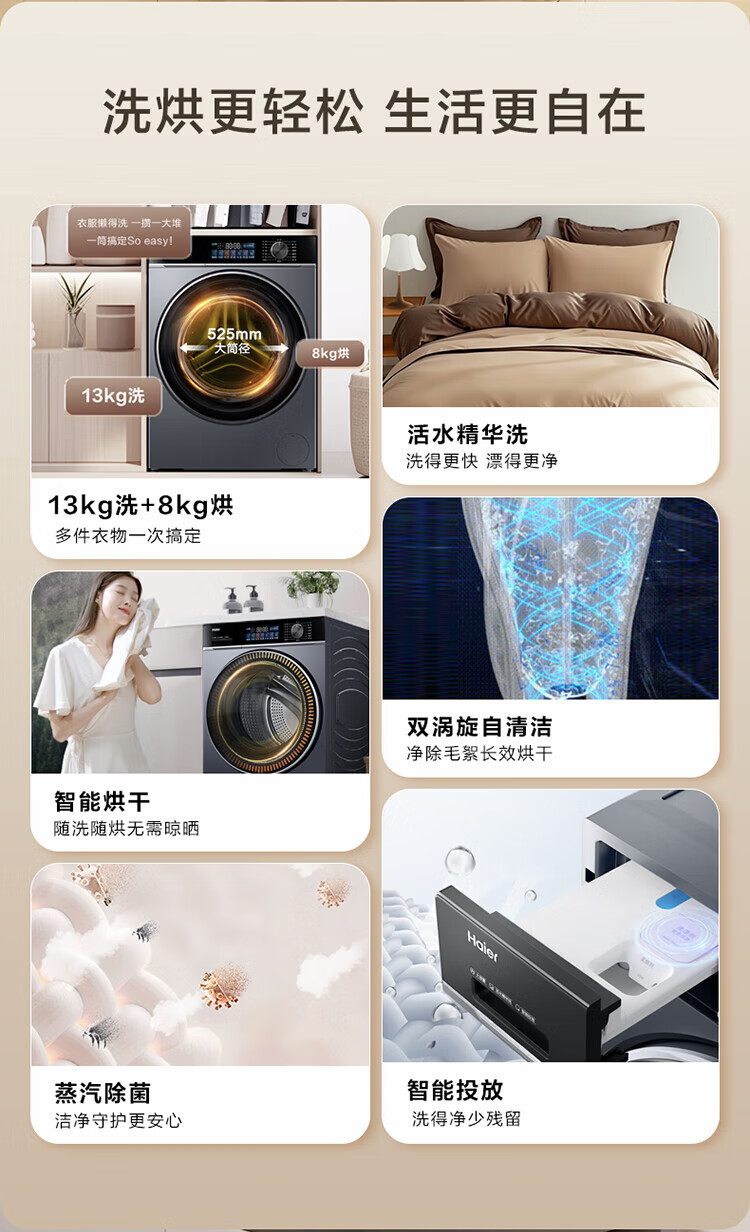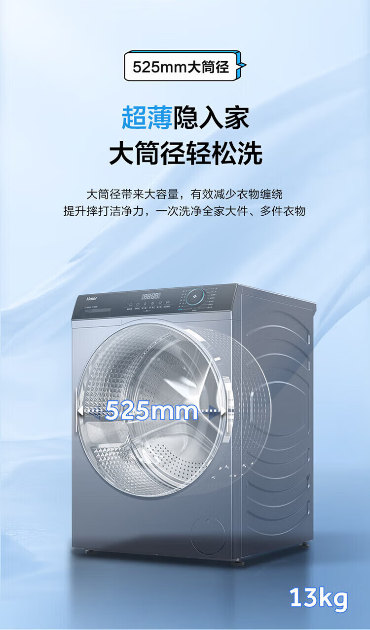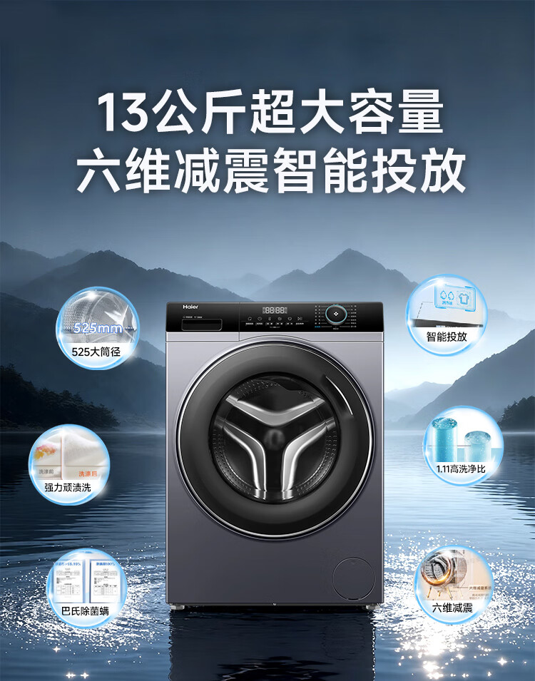 海尔(Haier)13公斤变频一级节能全自动滚筒洗衣机除菌除螨智能投放525大筒径六维减震超薄国家补贴20%洗衣机 海尔13公斤洗脱+六维减震+1.1洗净比+智能投放