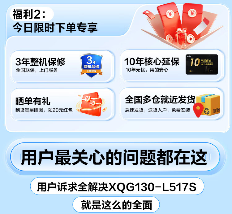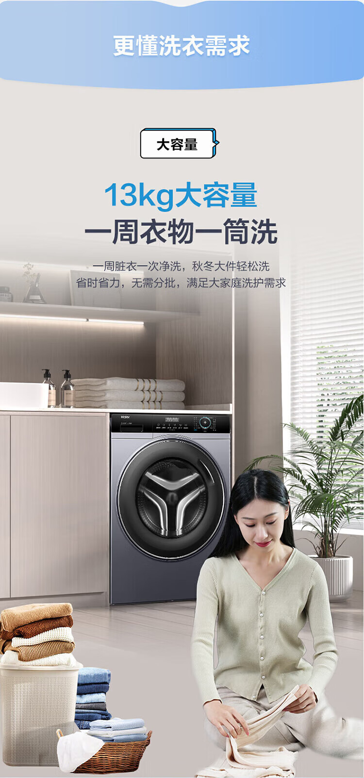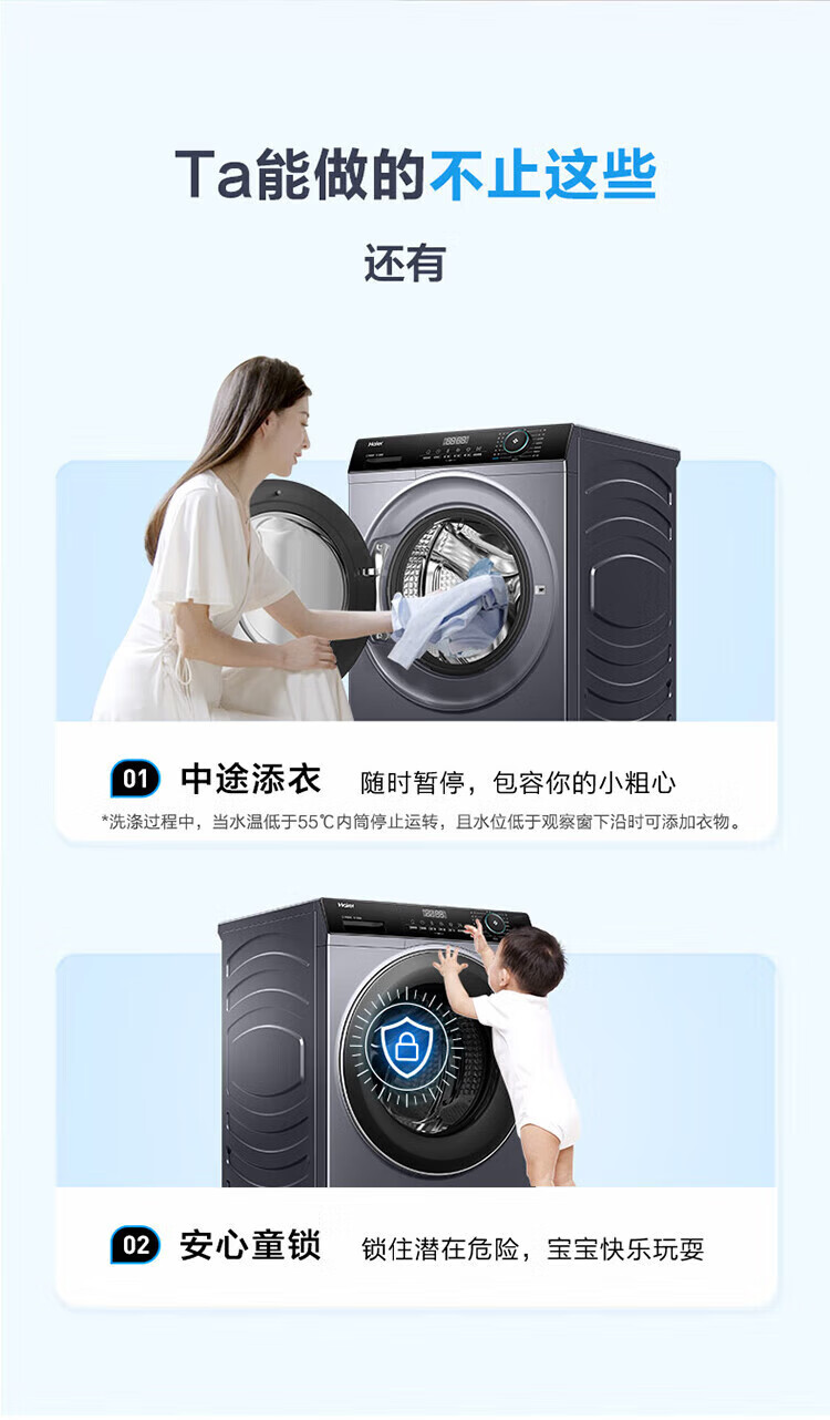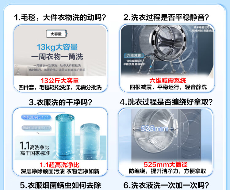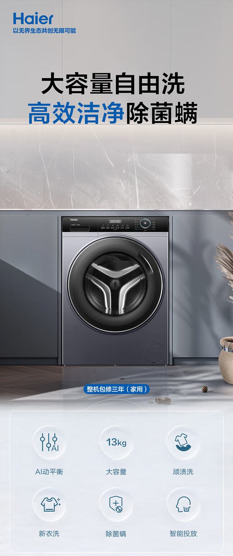 海尔(Haier)13公斤变频一级节能全自动滚筒洗衣机除菌除螨智能投放525大筒径六维减震超薄国家补贴20%洗衣机 海尔13公斤洗脱+六维减震+1.1洗净比+智能投放
