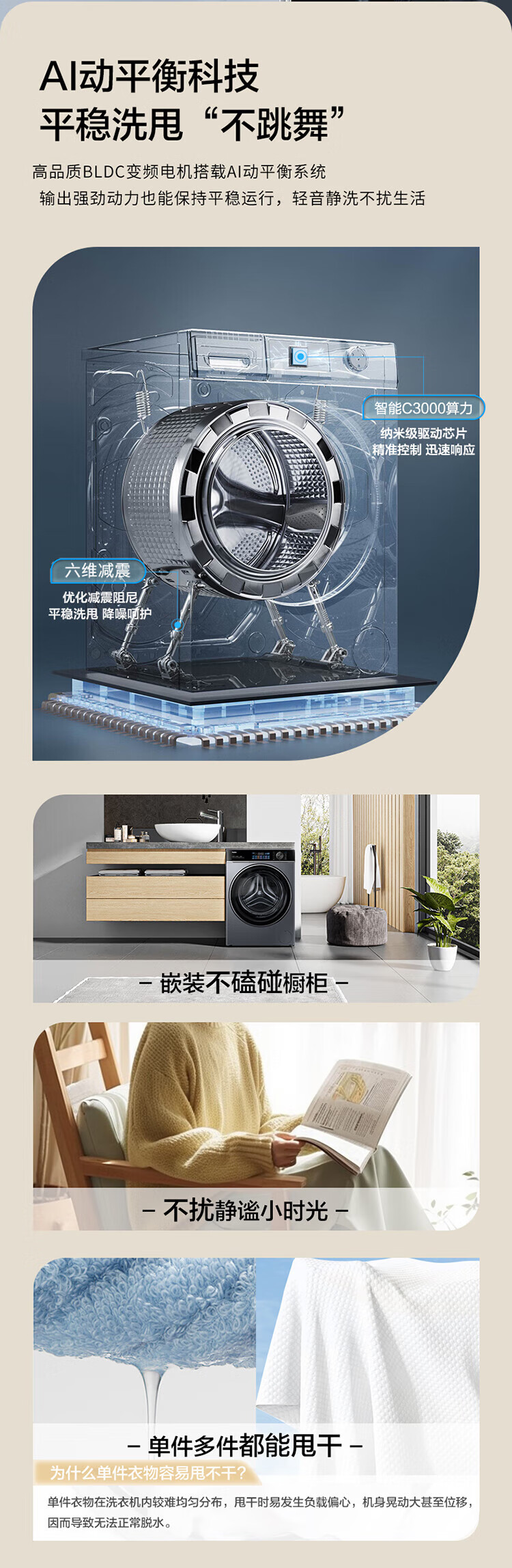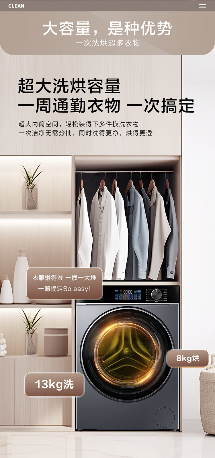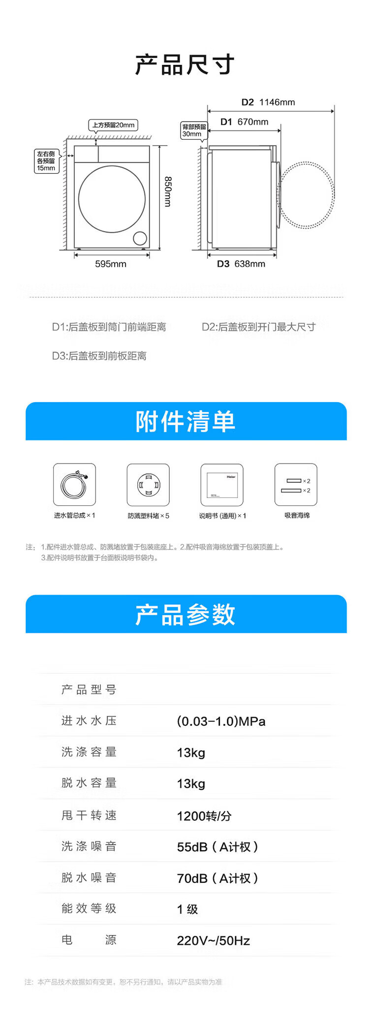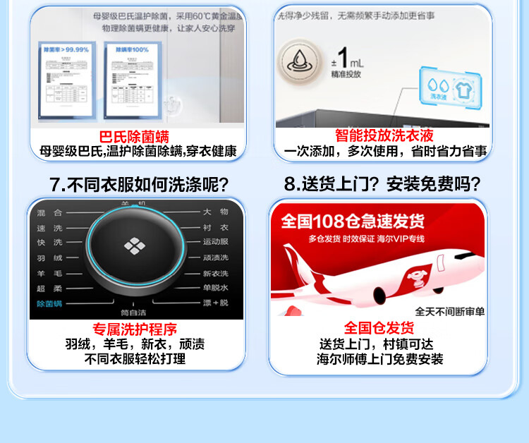 海尔(Haier)13公斤变频一级节能全自动滚筒洗衣机除菌除螨智能投放525大筒径六维减震超薄国家补贴20%洗衣机 海尔13公斤洗脱+六维减震+1.1洗净比+智能投放