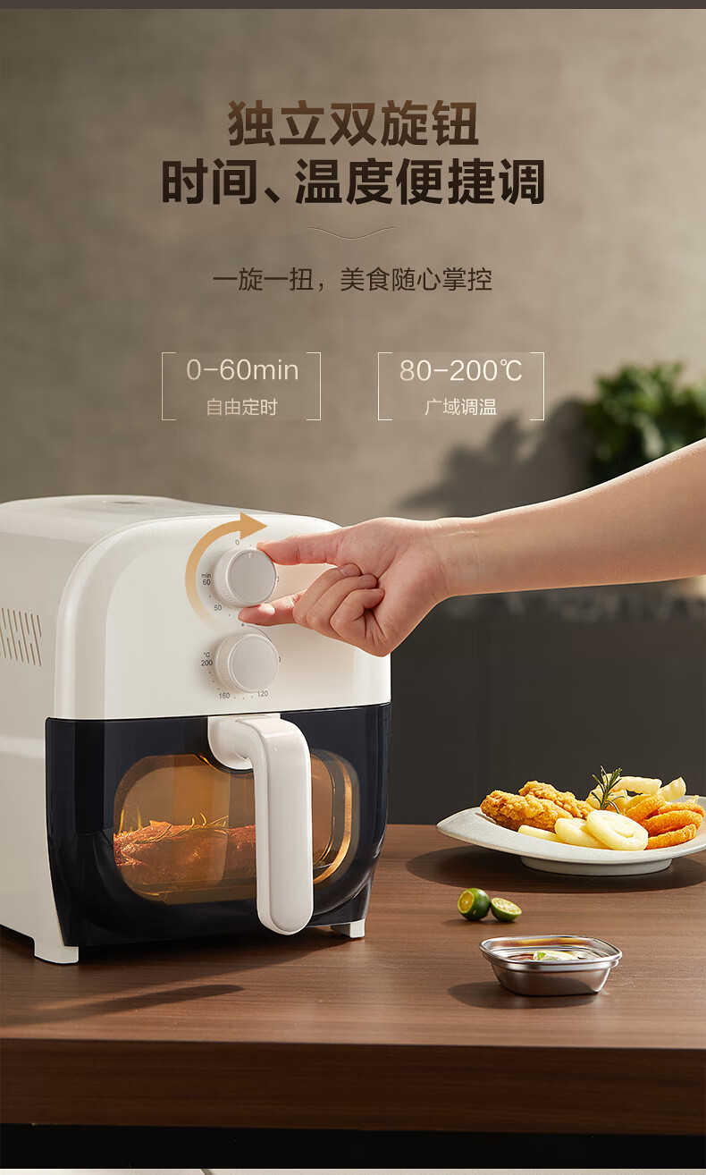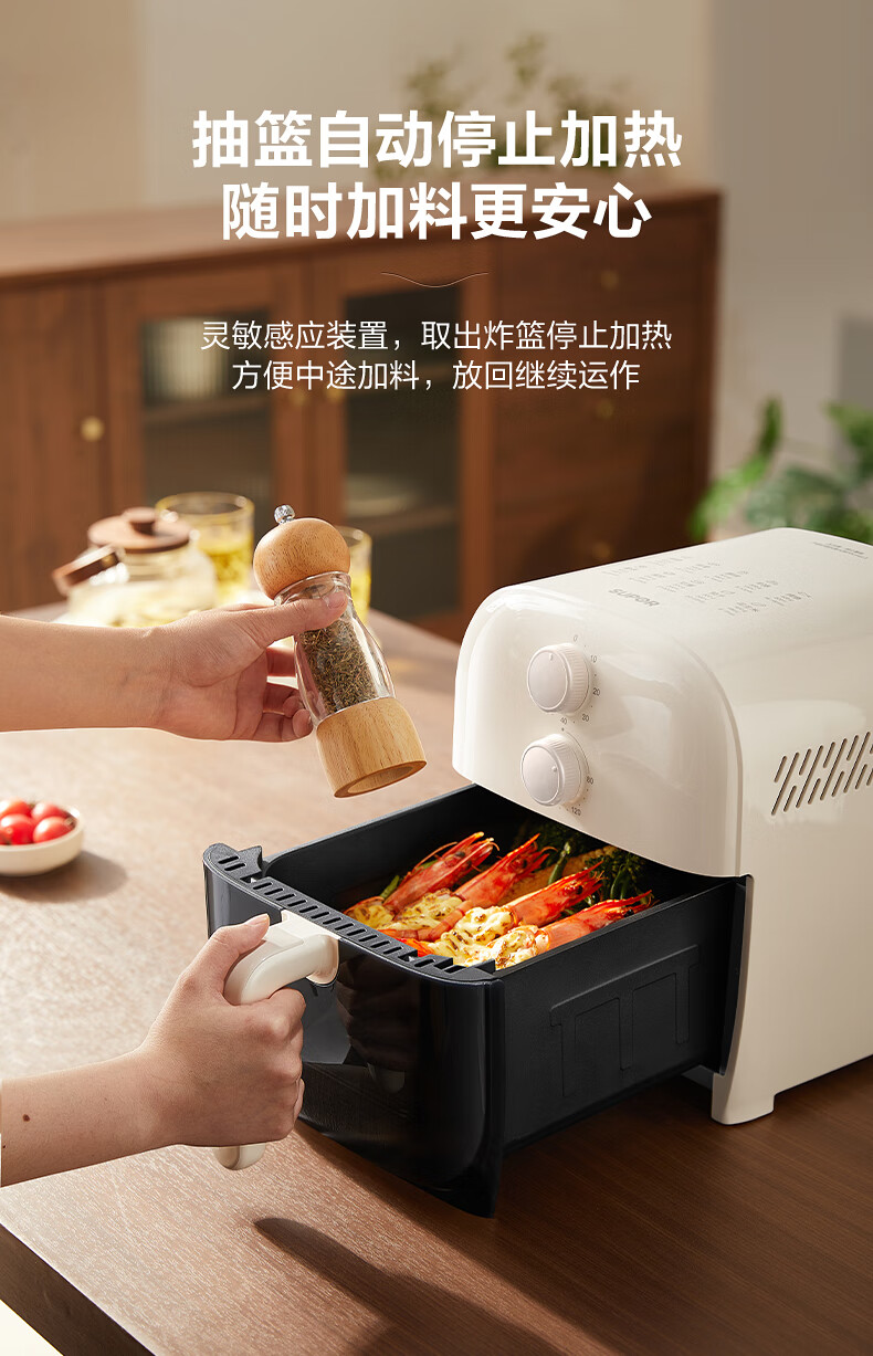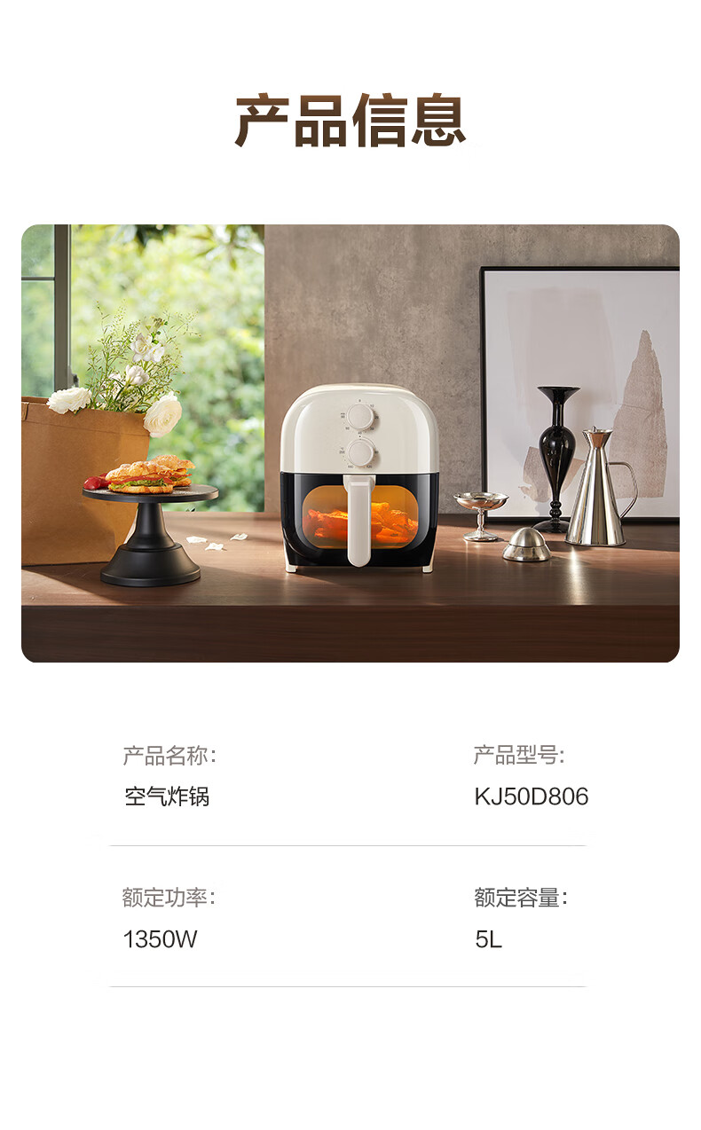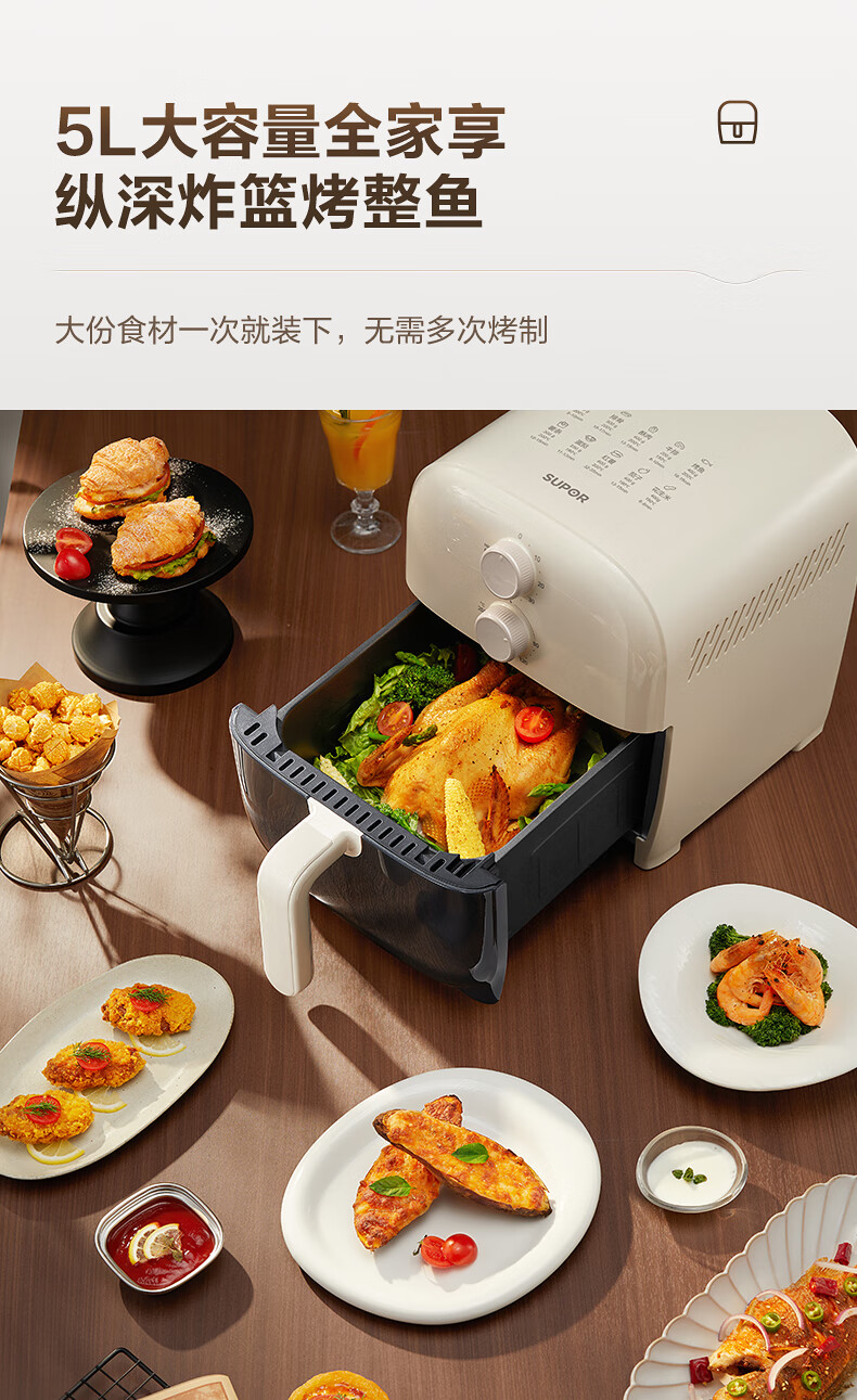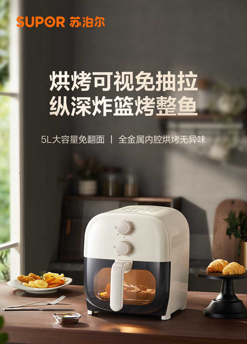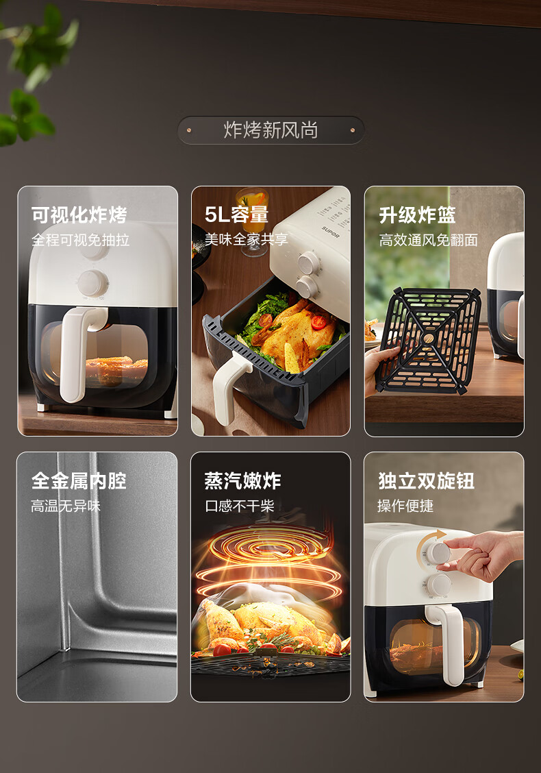 苏泊尔(SUPOR)空气炸锅不用翻面 家用全自动 可视5L大容量 控时控温 操作便捷免翻面空炸KJ50D806