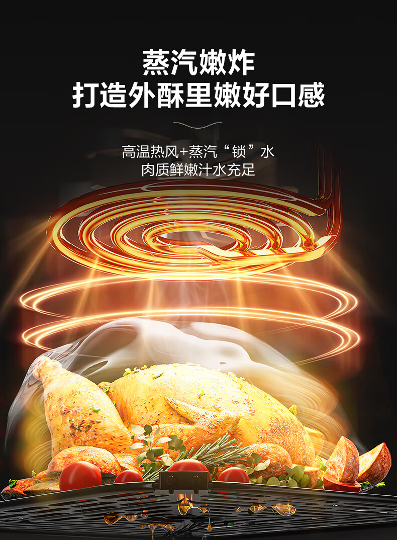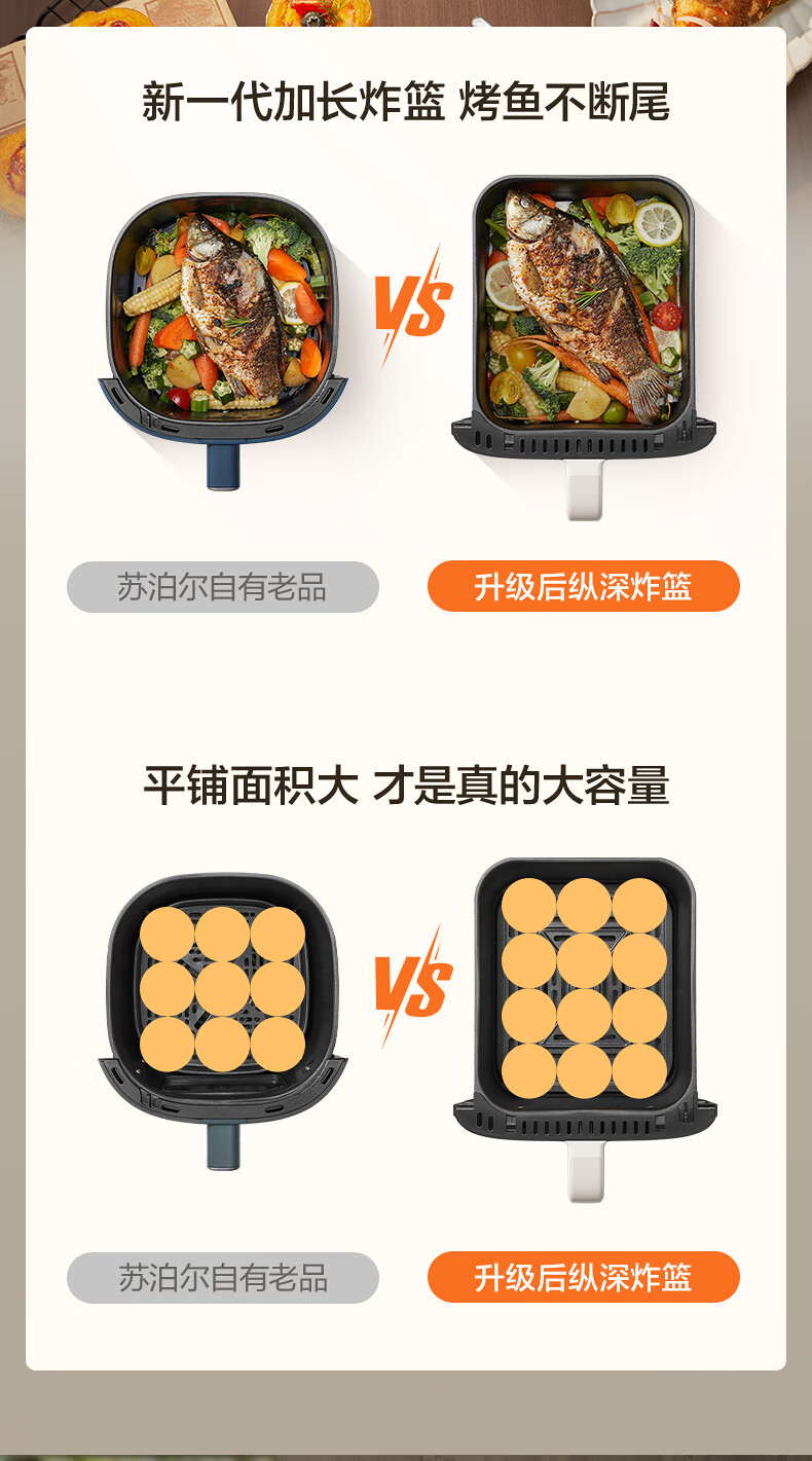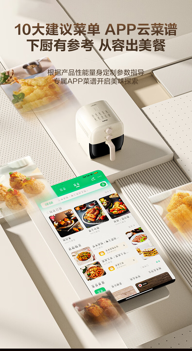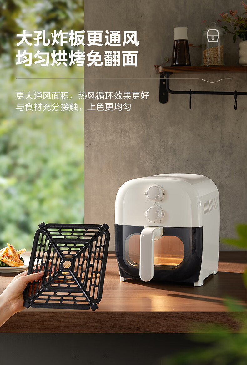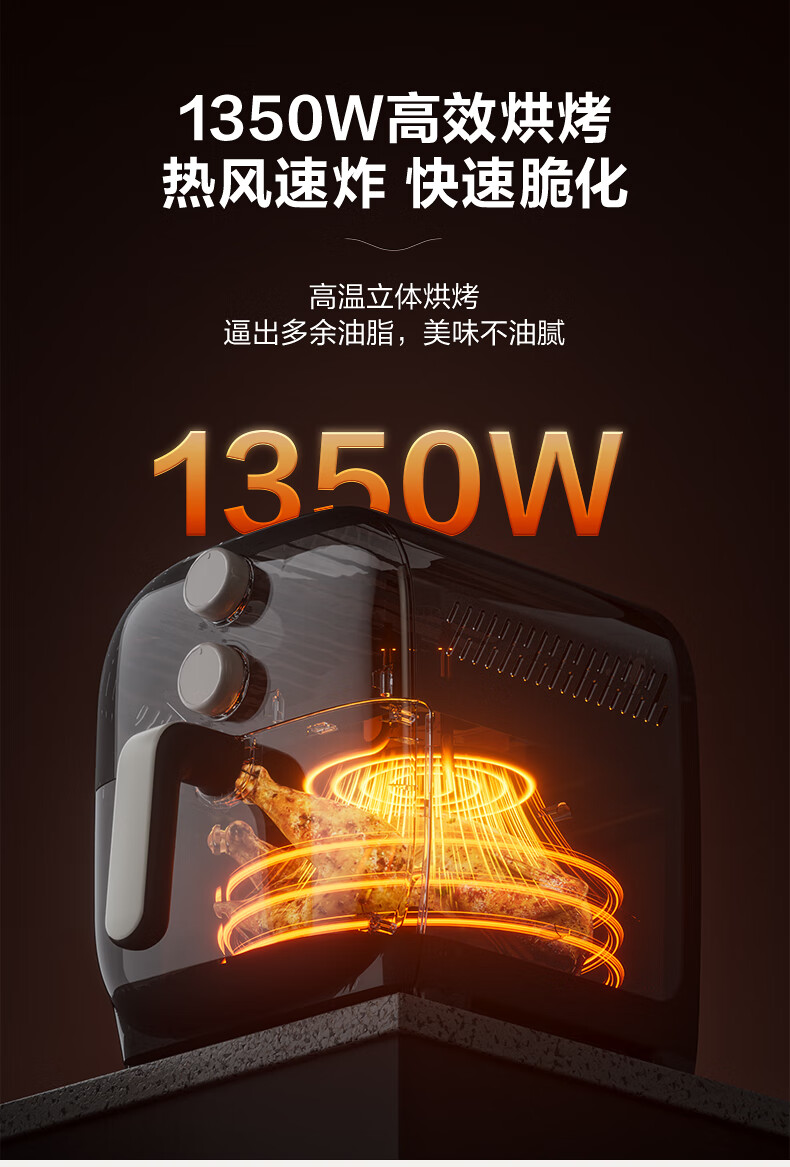 苏泊尔(SUPOR)空气炸锅不用翻面 家用全自动 可视5L大容量 控时控温 操作便捷免翻面空炸KJ50D806