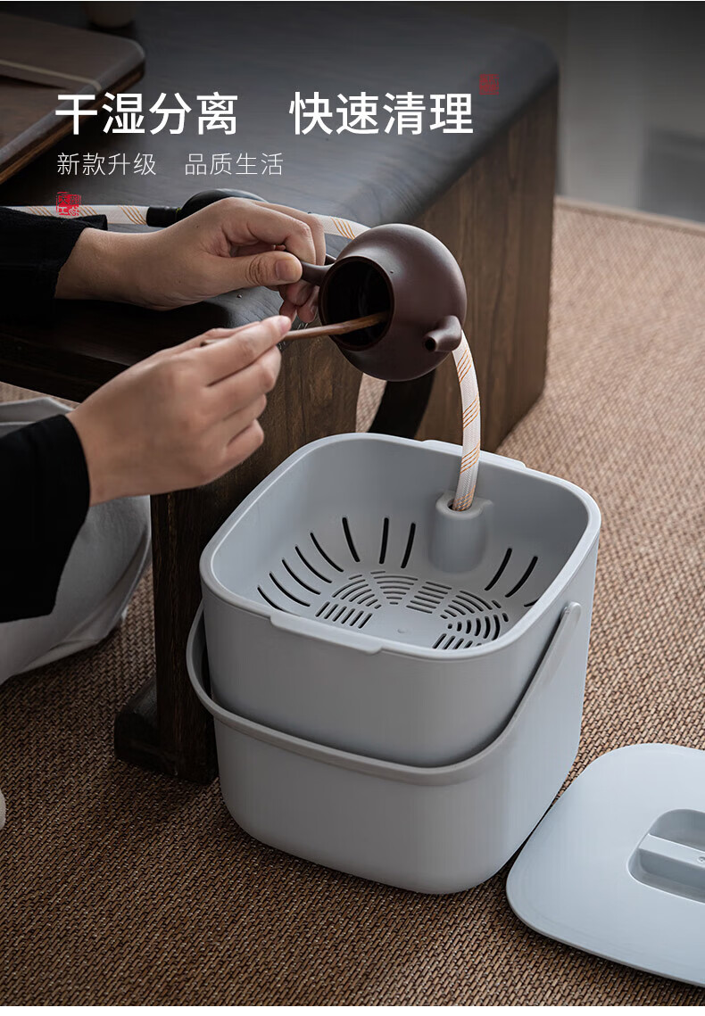 星坊 茶渣桶 茶水桶 滤茶桶废水桶茶台滤水桶过滤分离茶叶垃圾桶大号