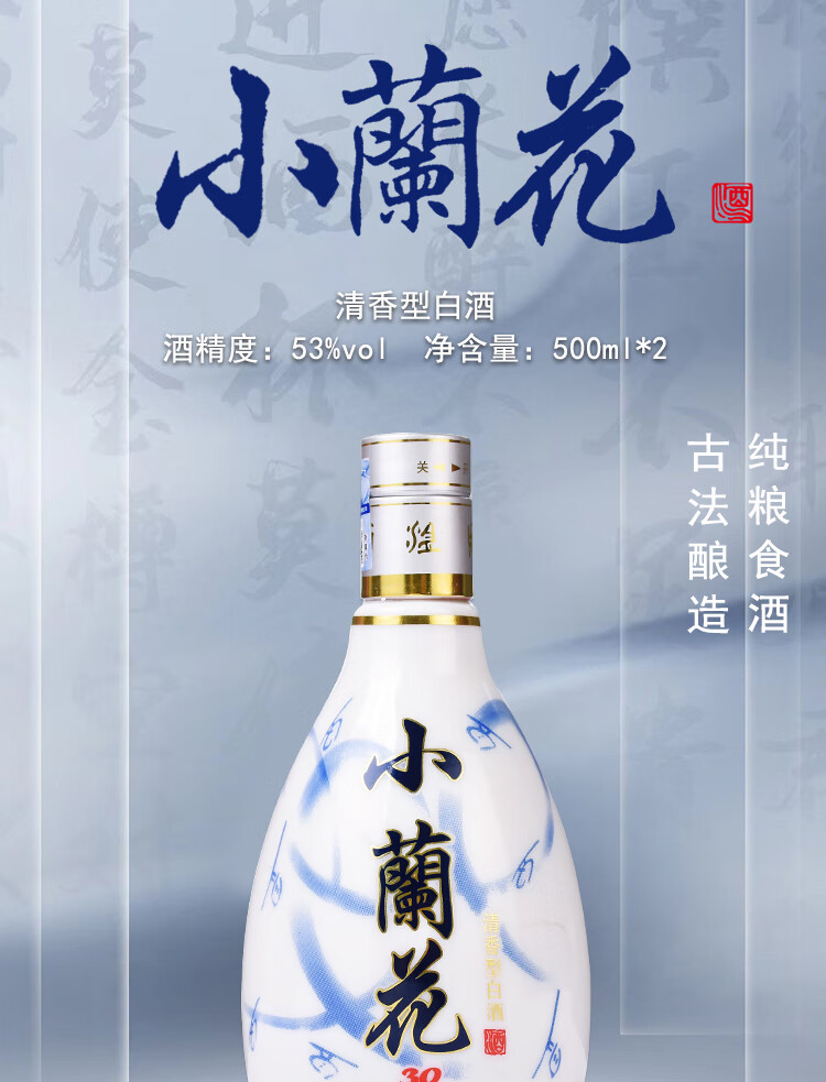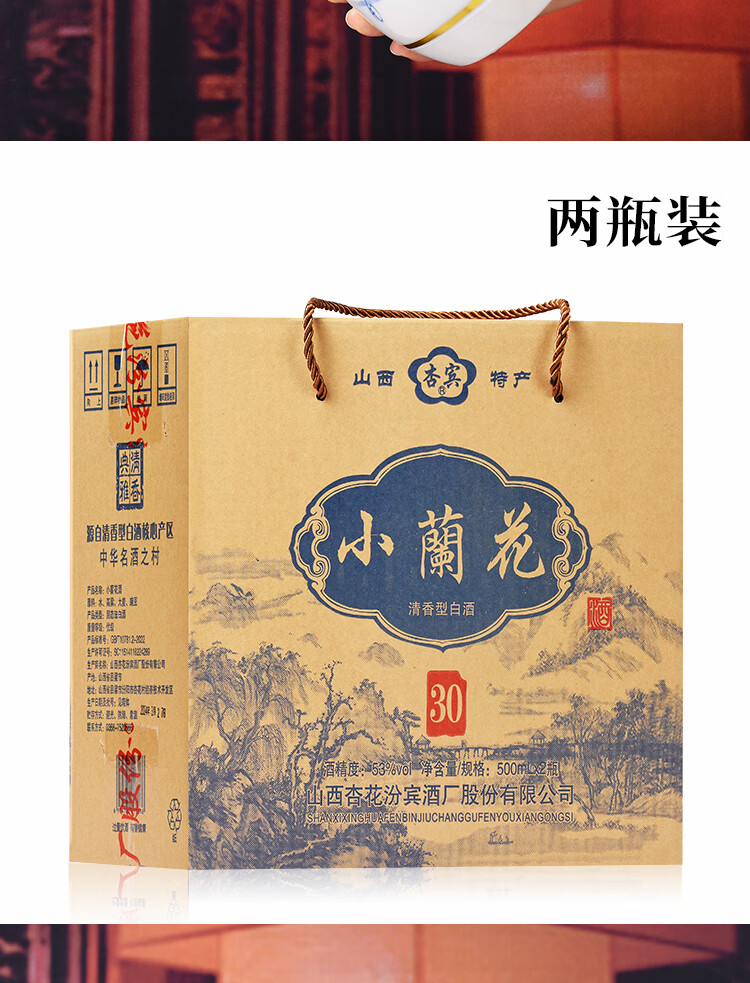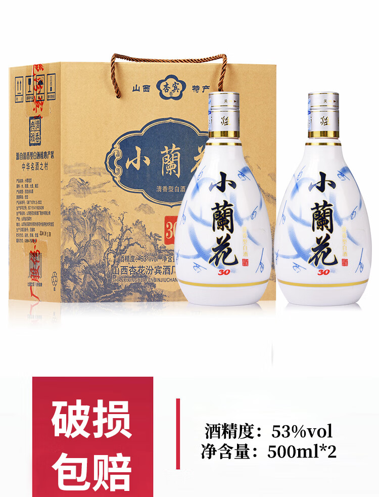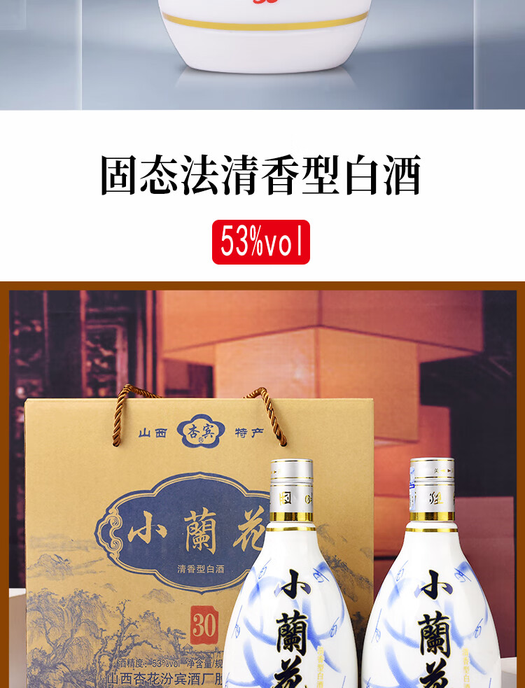 杏宾山西杏花村小兰花53度清香型白酒纯粮食酒送礼自饮 53度 500mL 4瓶 自饮装