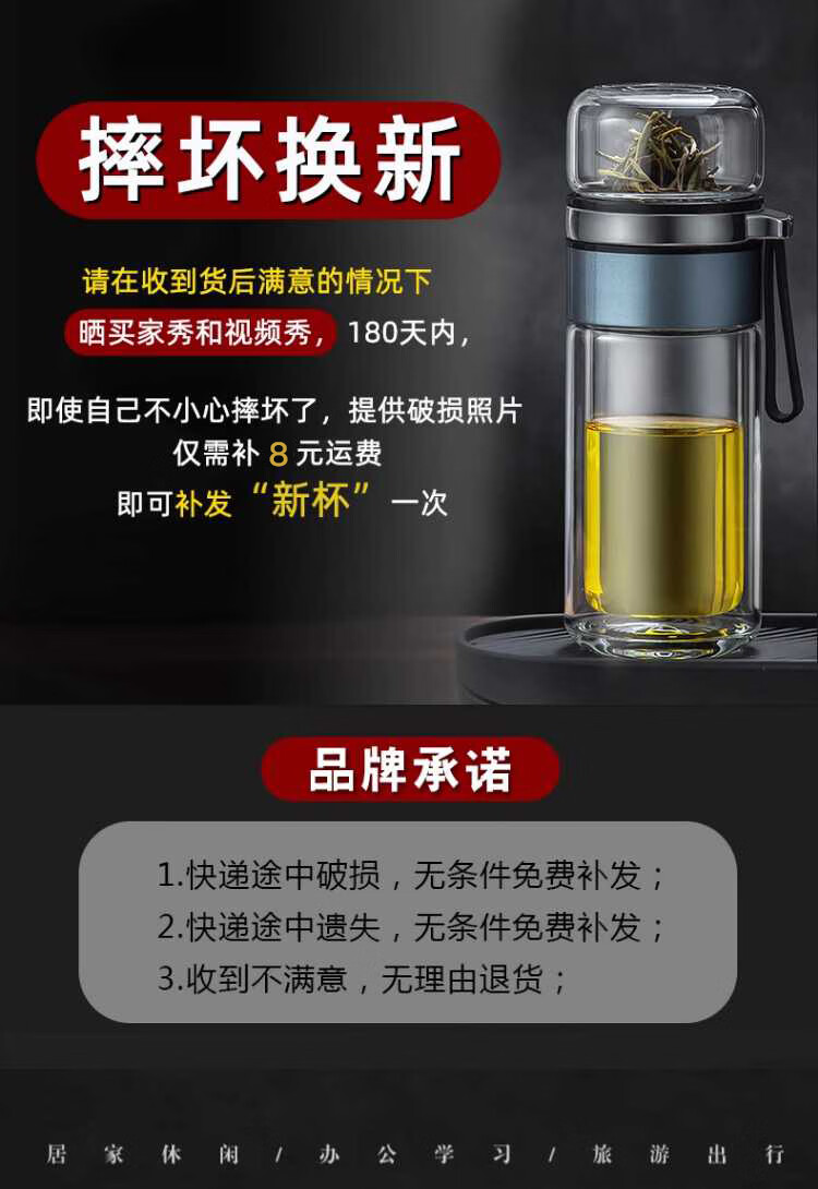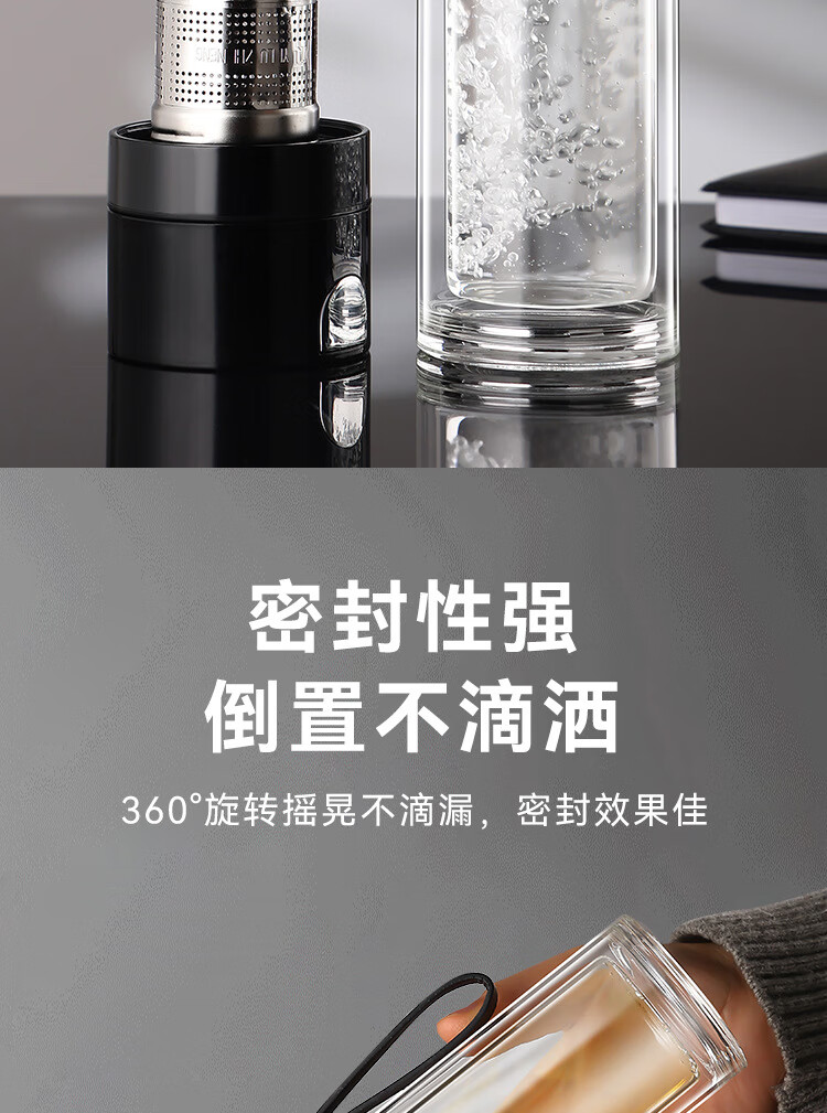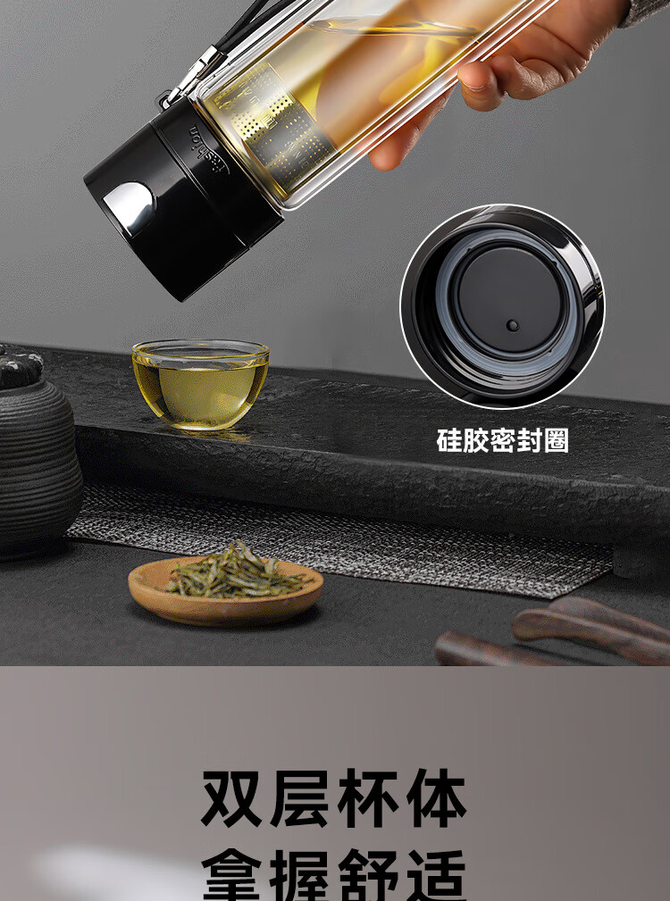 格亚(GEYA)茶水分离保温水杯泡茶杯316不锈钢保温杯便携水杯花茶杯定制刻字 黑色 520ml