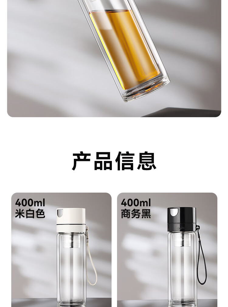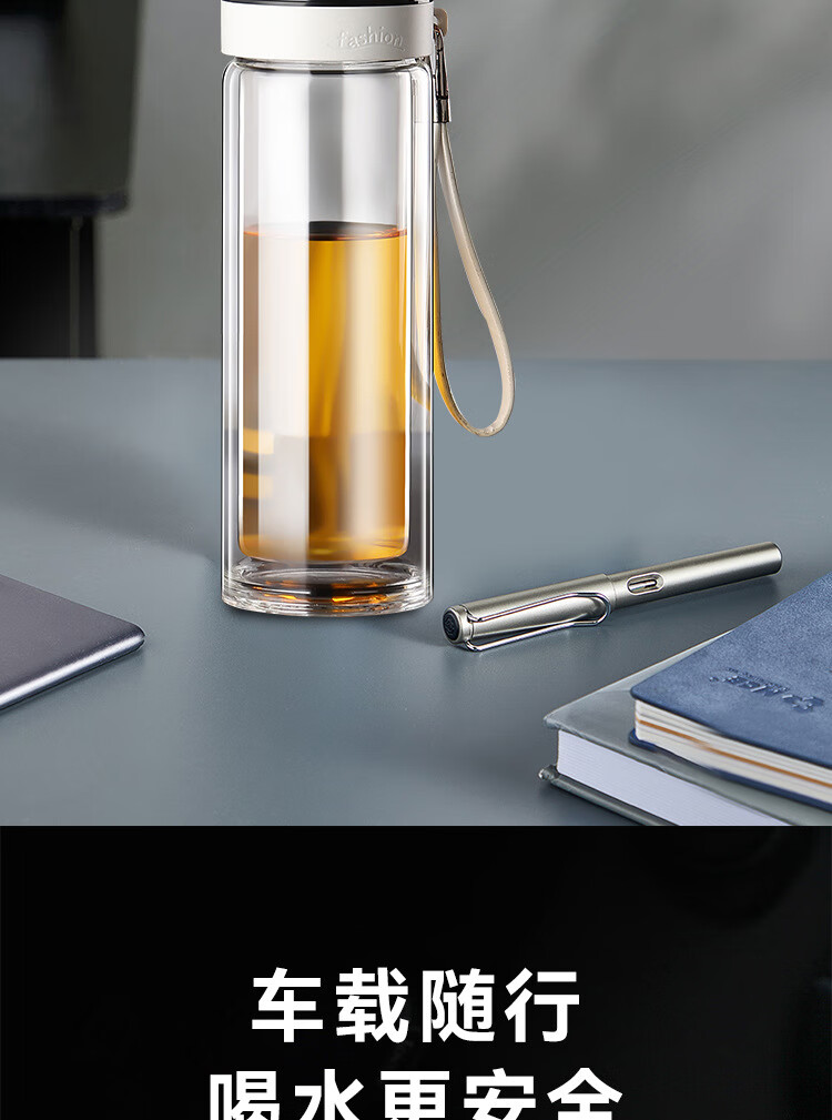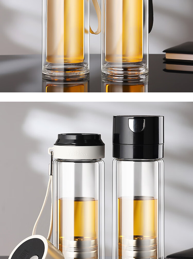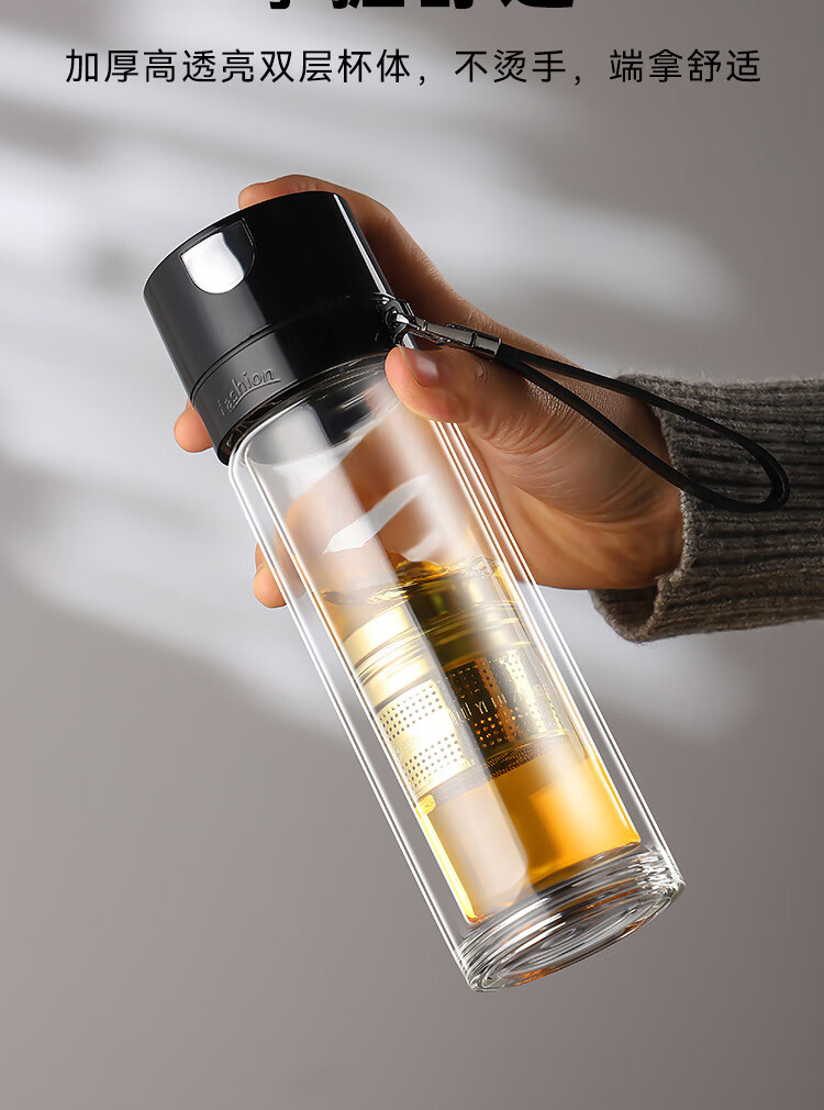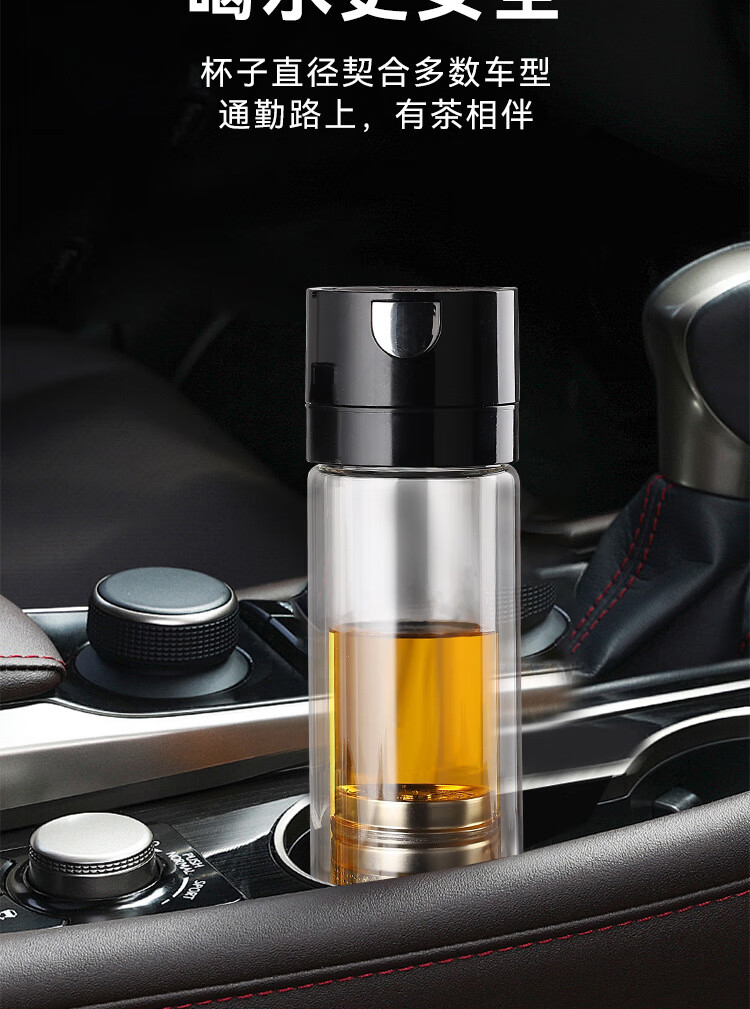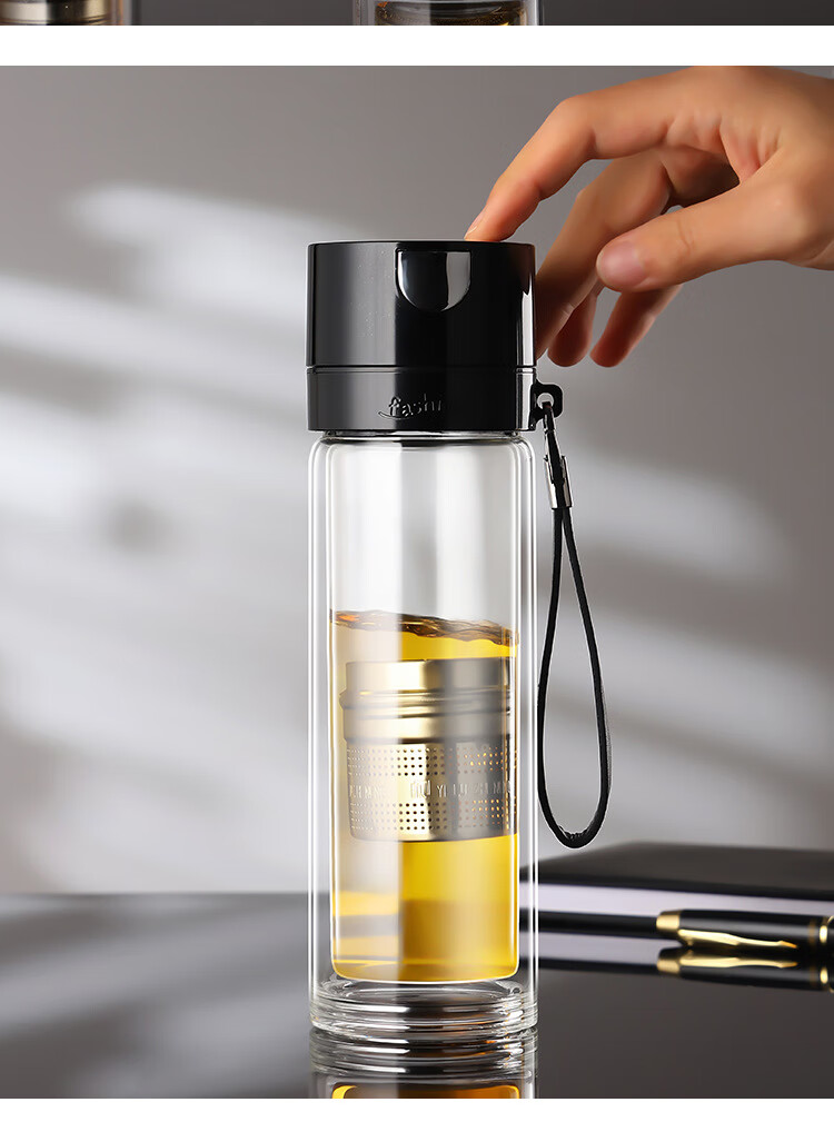 创建磁吸炮弹泡茶杯一键开盖玻璃杯大容量高硼硅水杯车载茶水分离杯子 白色400ml带提绳