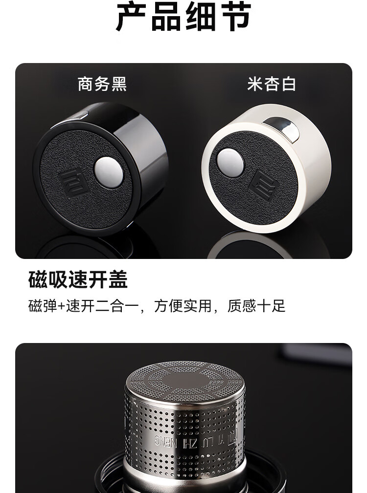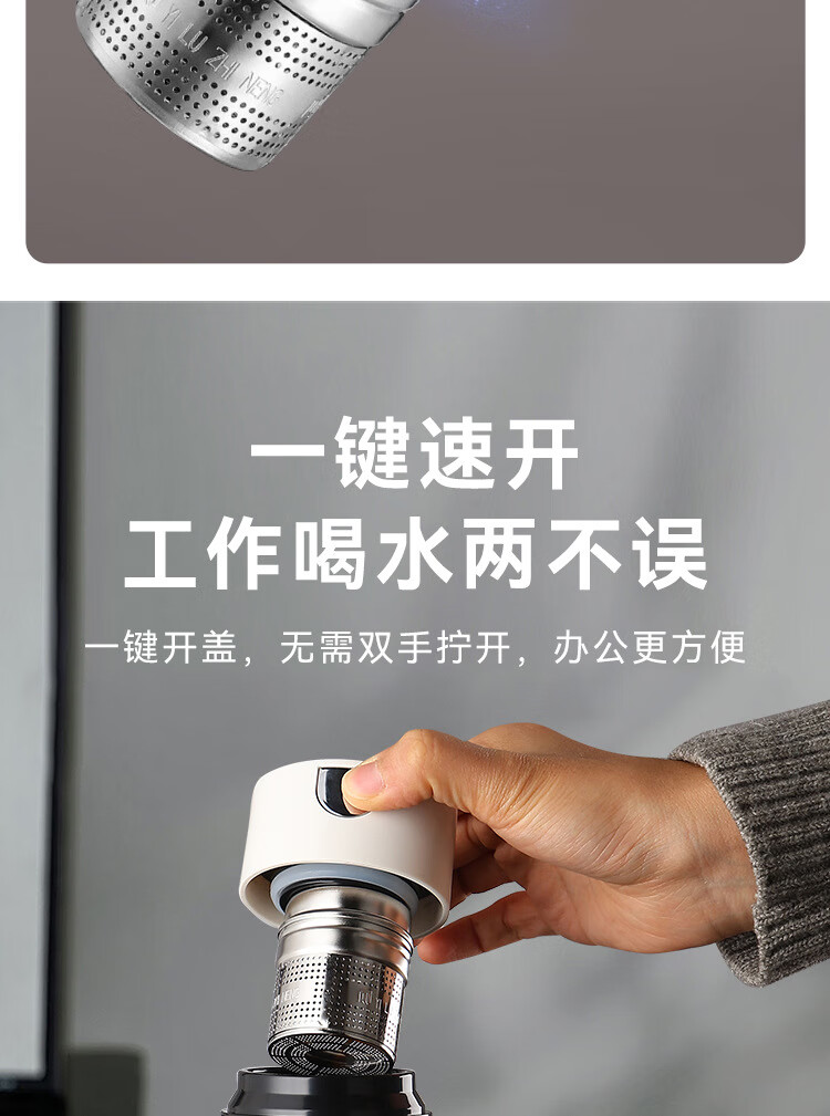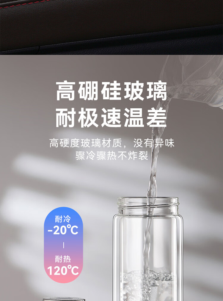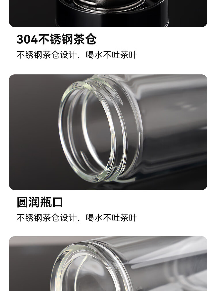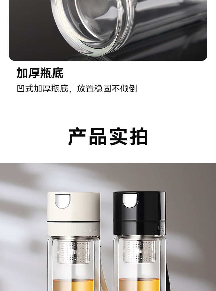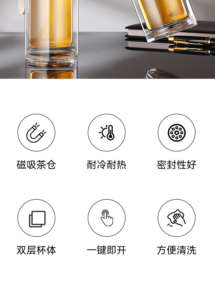 创建磁吸炮弹泡茶杯一键开盖玻璃杯大容量高硼硅水杯车载茶水分离杯子 白色400ml带提绳