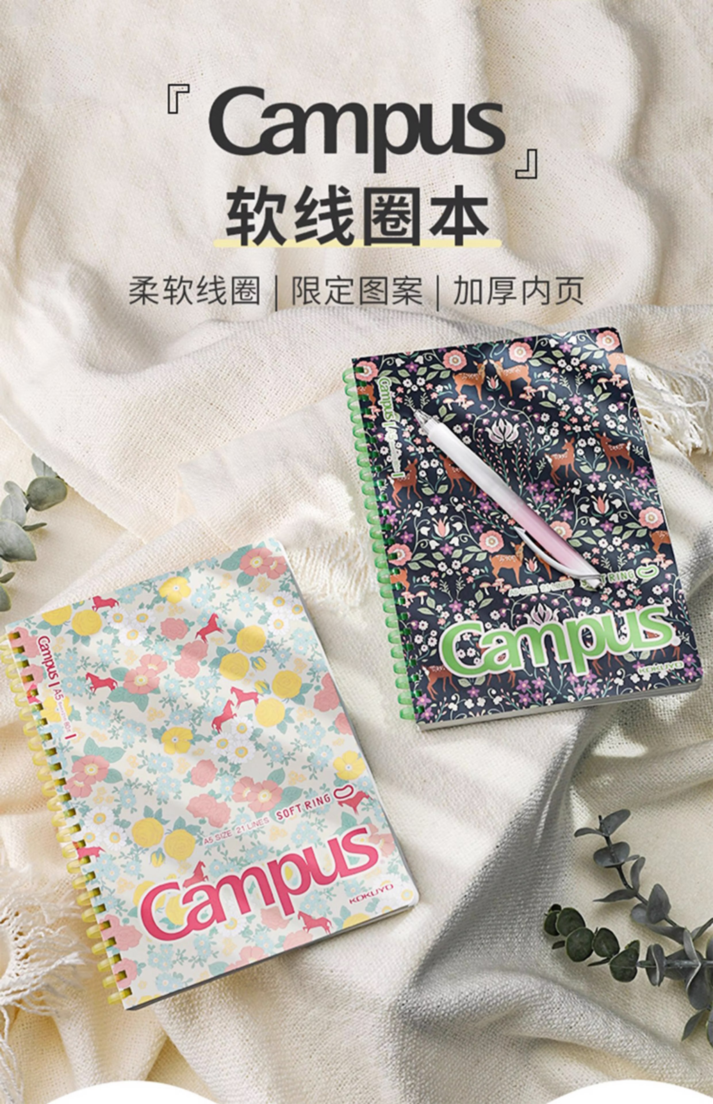 国誉(KOKUYO)【2023新品】日本国誉(KOKUYO)Campus加藤木系列软线圈笔记本不硌手 白色B5