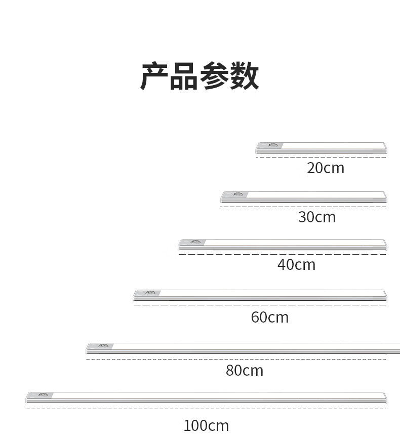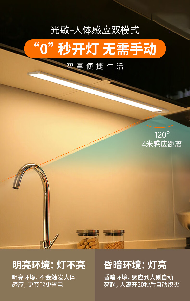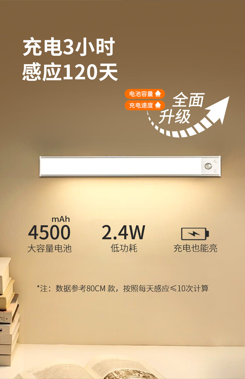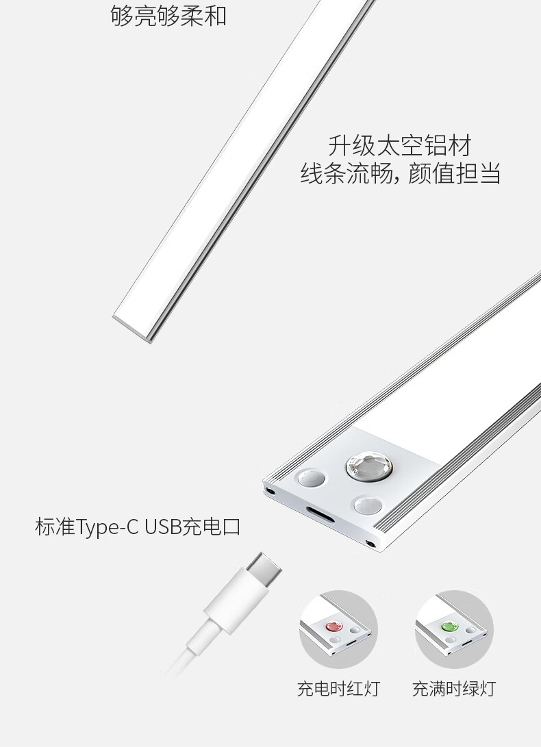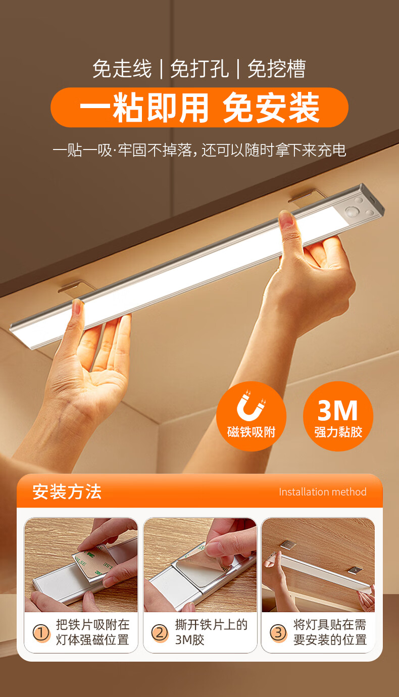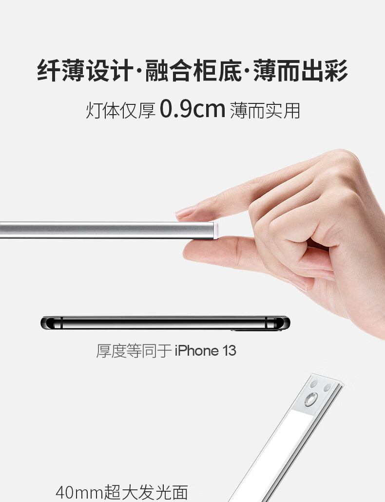 松潮橱柜灯人体感应灯带磁吸充电免布线衣柜酒柜鞋柜玄关灯小夜灯氛围 清晰白光/高续航版+人体+光感 升级版橱柜灯60cm
