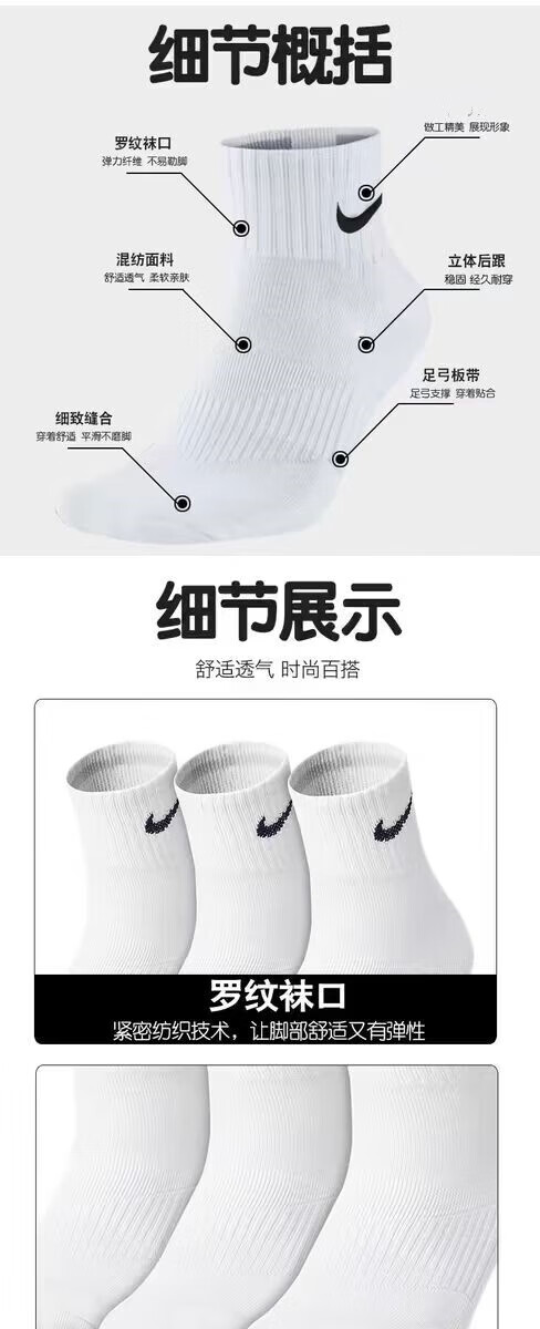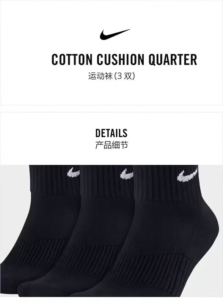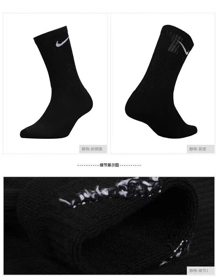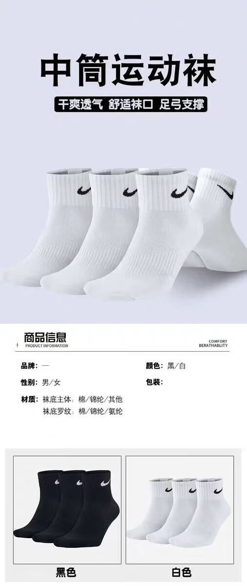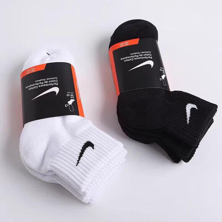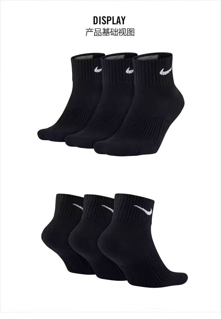 袜子男女运动袜精梳棉春秋四季透气吸汗防滑跑步篮球防臭四季款 2黑+1白【长(高)筒】3双 L 码【42-45】精梳棉