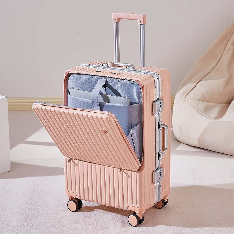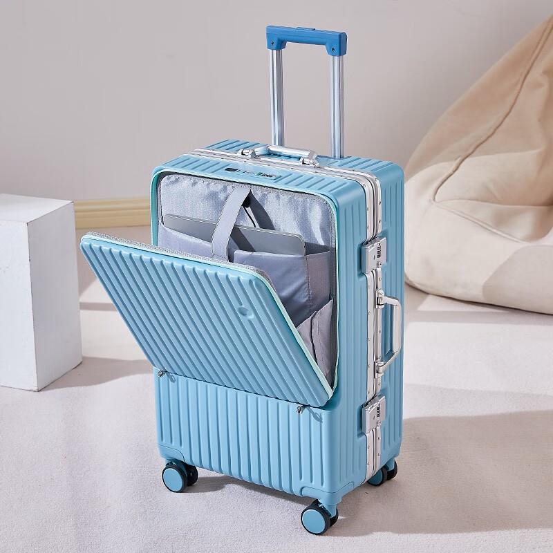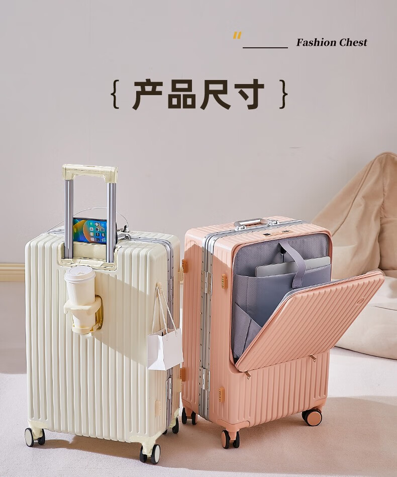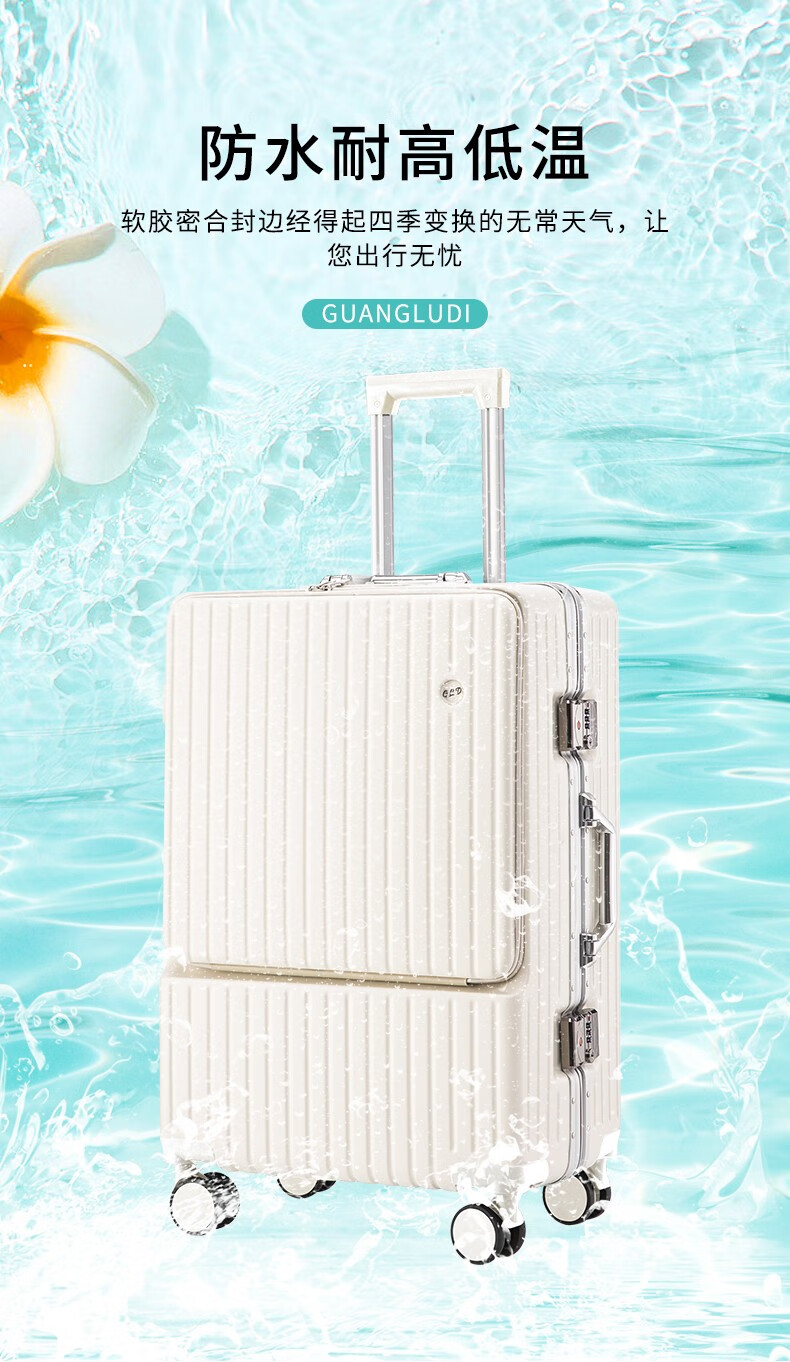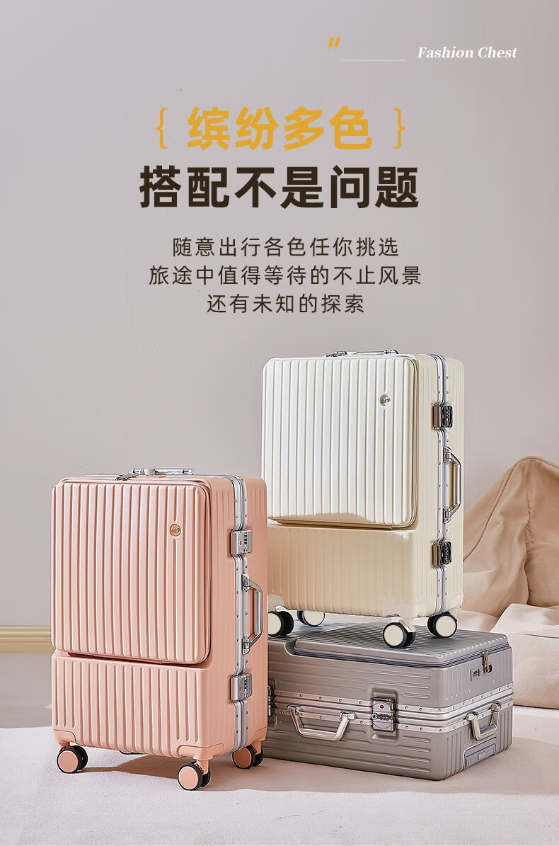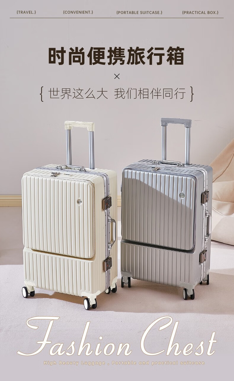 广璐迪高颜值前开盖铝框行李箱女拉杆箱男旅行密码箱子小皮箱包结实耐用 三分之二前置开口 铝框箱/奢华银 26英寸 大容量+多功能+抗压耐撞