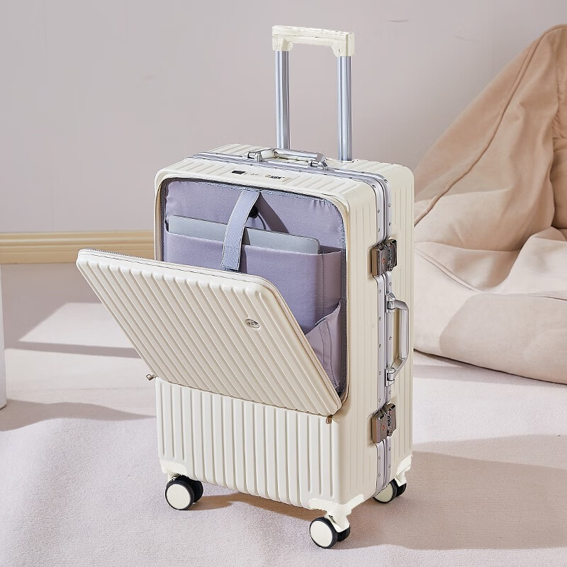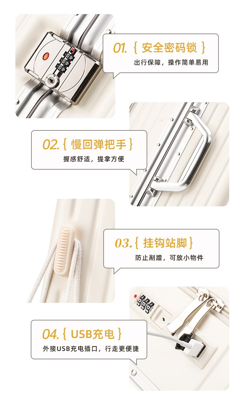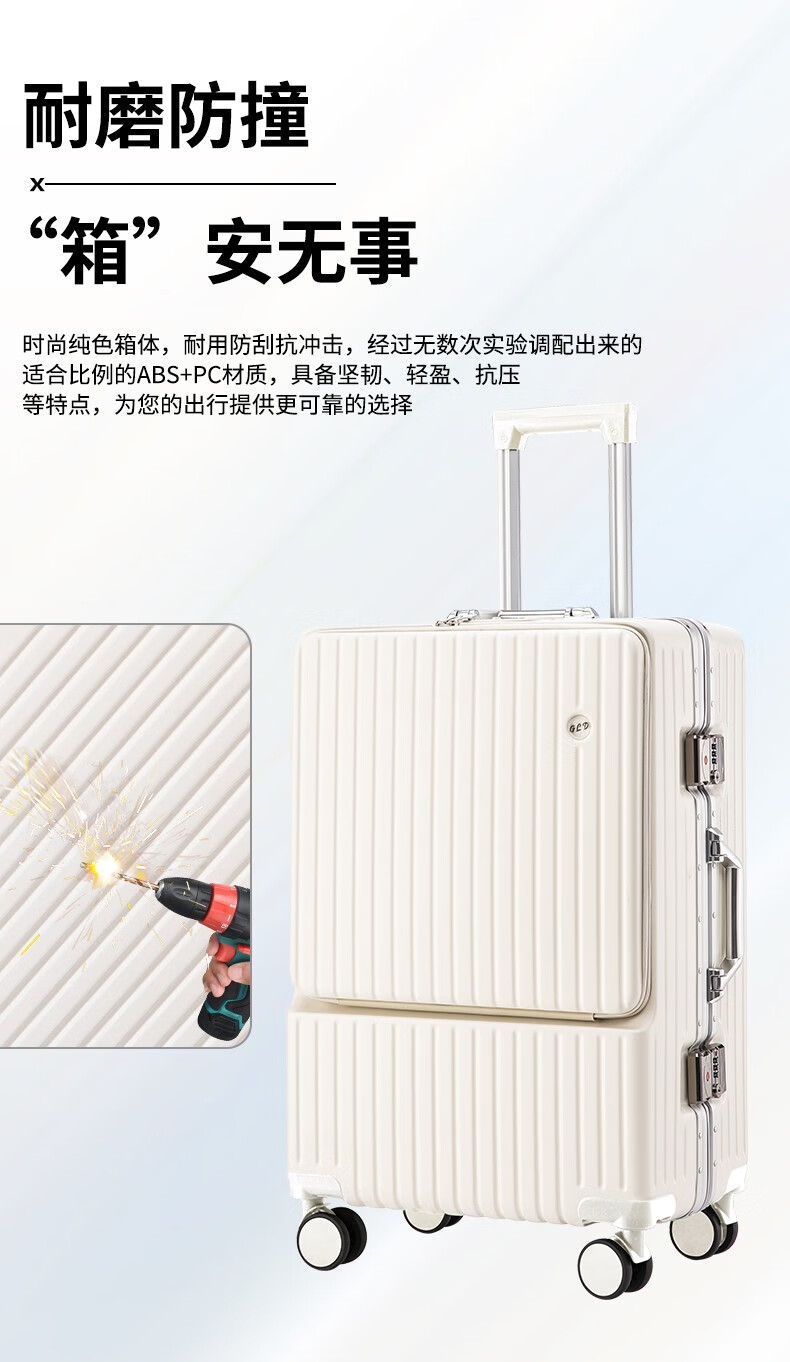 箱君行旅铝框行李箱新款高颜值拉杆箱男大容量旅行箱轻音防刮加厚密码箱 气质白 【铆钉加固+加厚防刮】 28英寸 【超大容量】