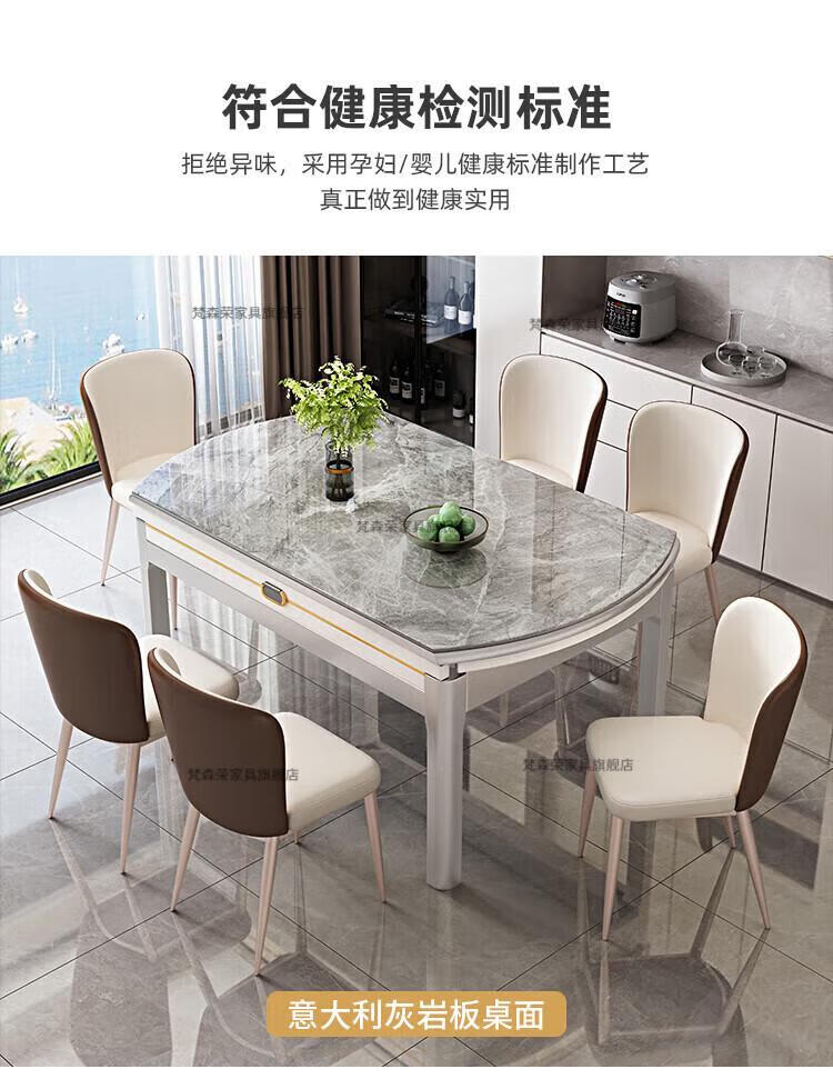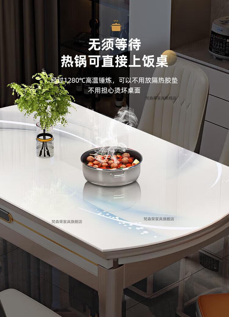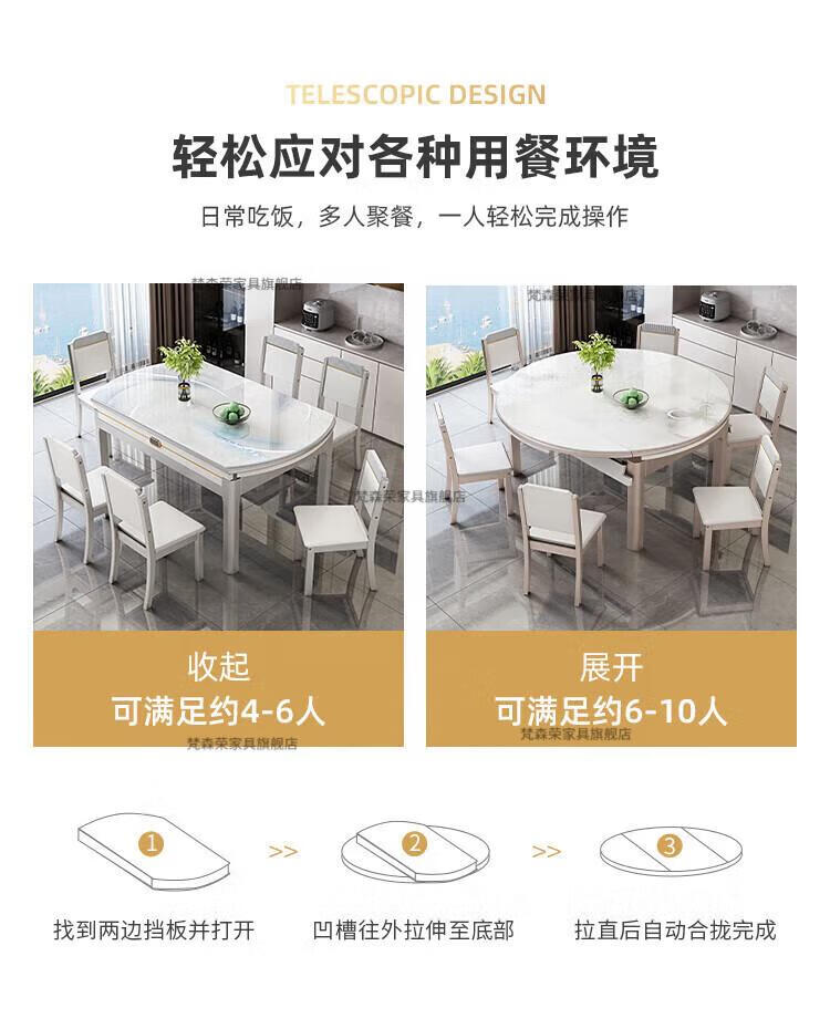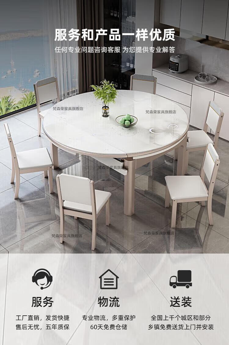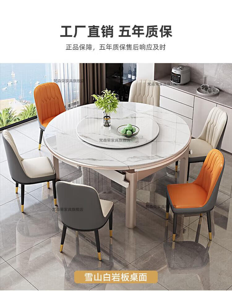 梵森荣2026新款餐桌家用流晶石岩板餐桌椅现代简约感大小户型可变圆桌 钥匙扣随机发货