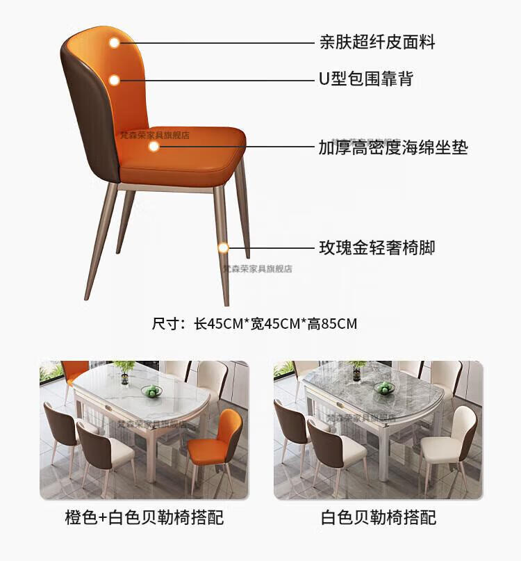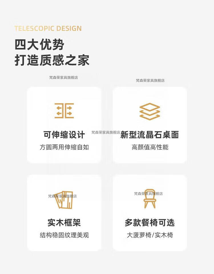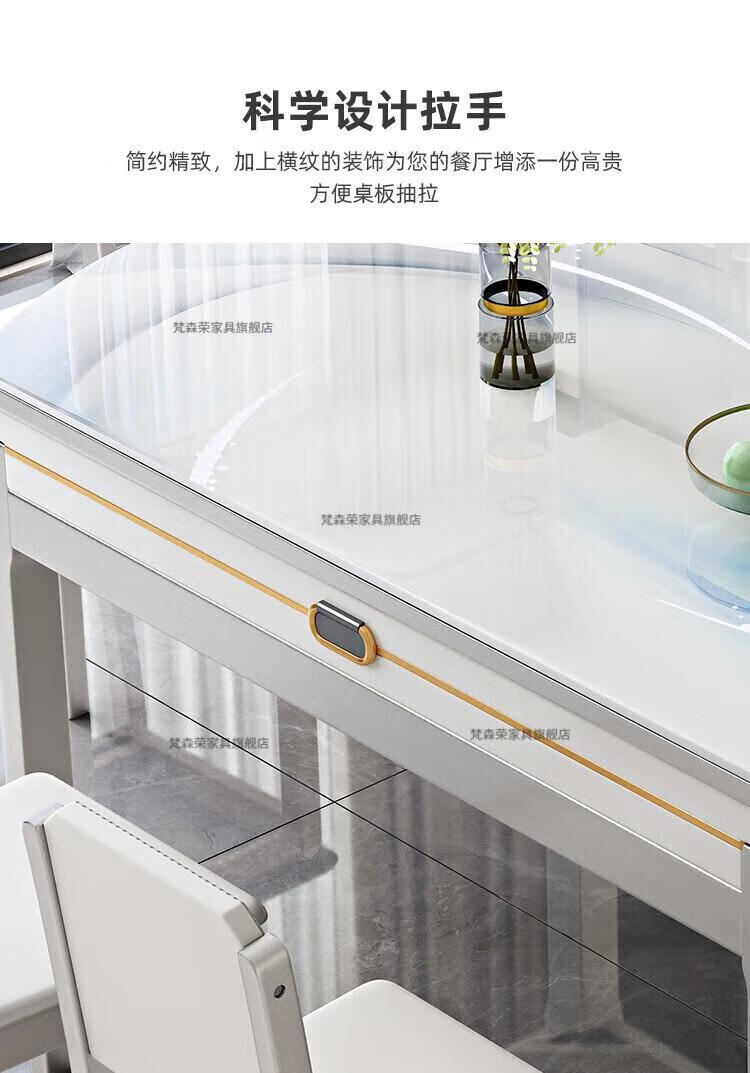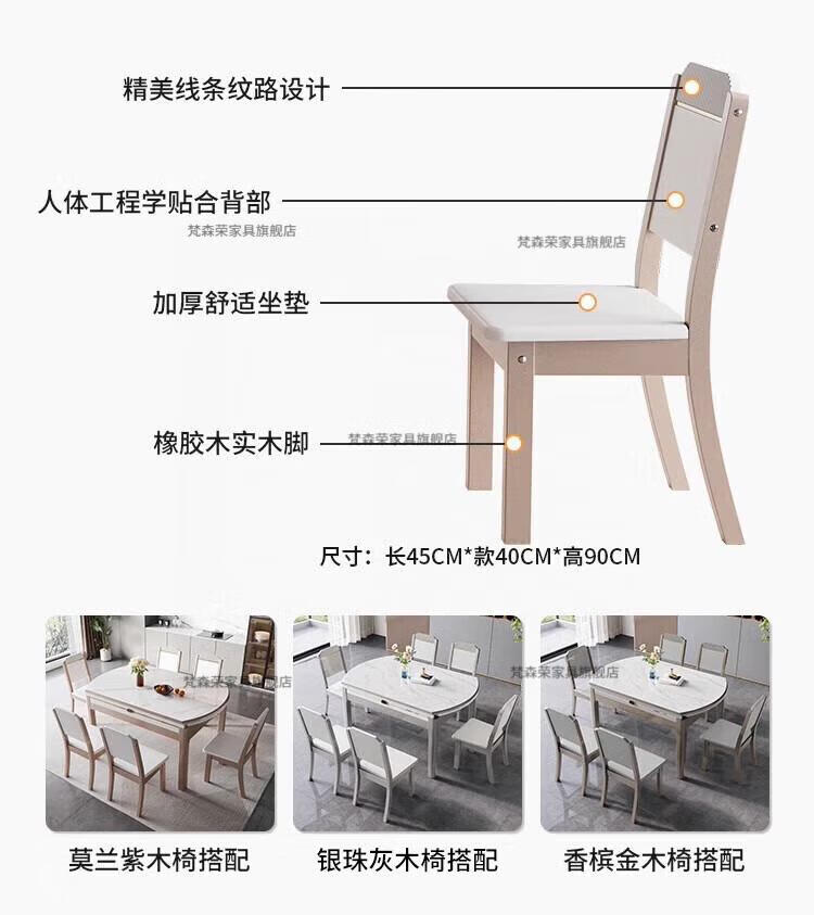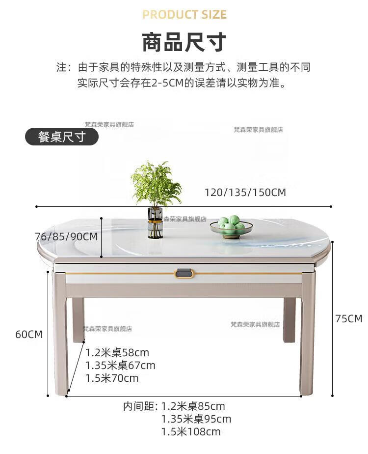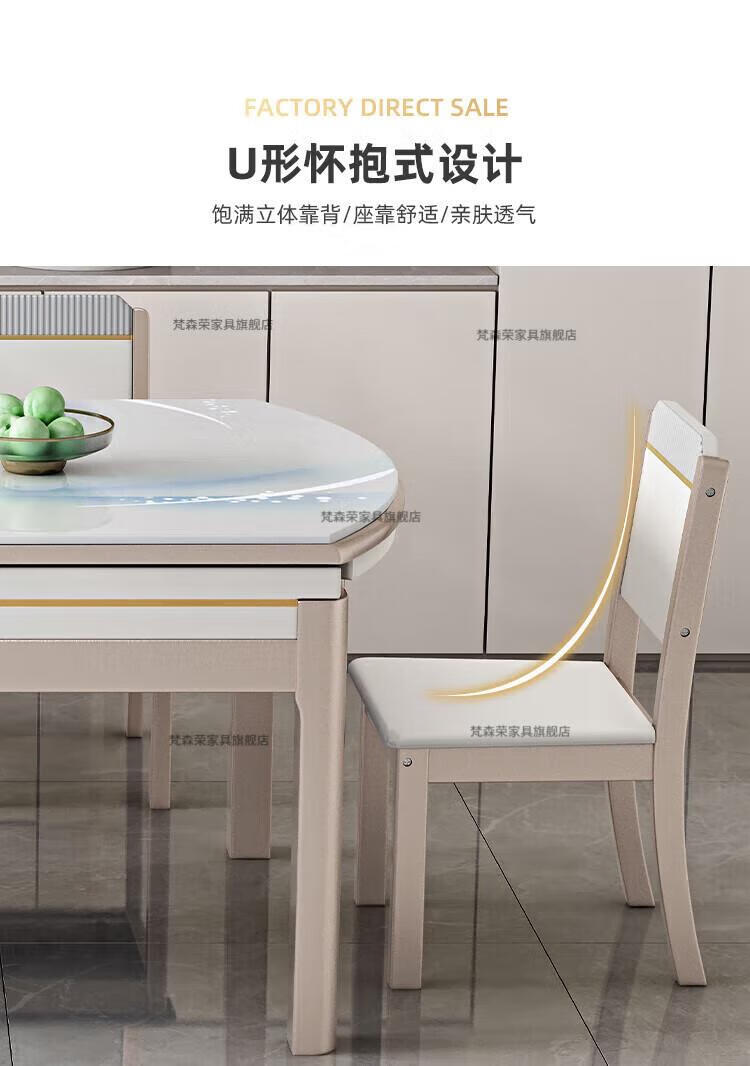 梵森荣2026新款餐桌家用流晶石岩板餐桌椅现代简约感大小户型可变圆桌 钥匙扣随机发货