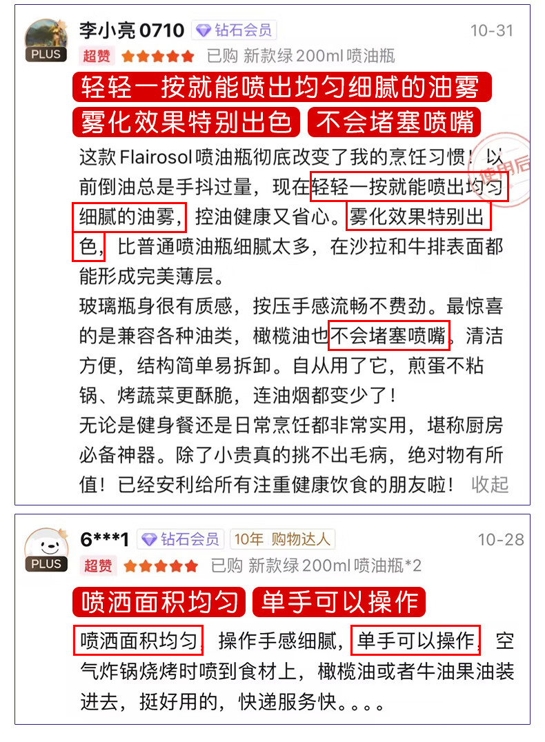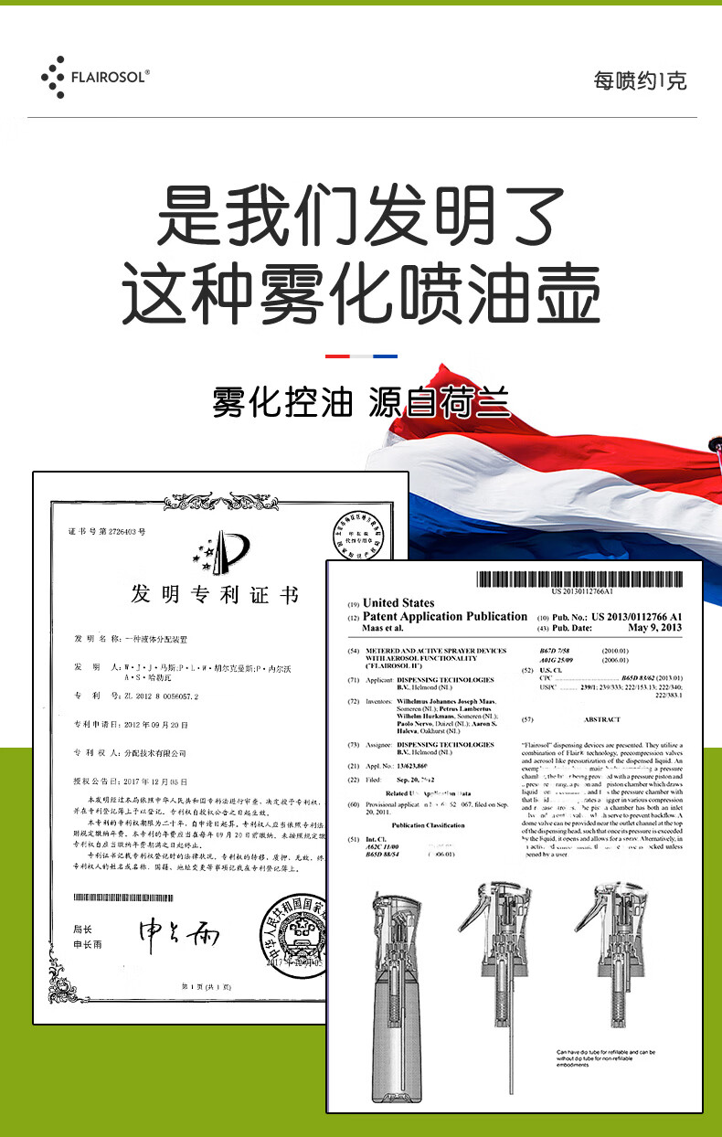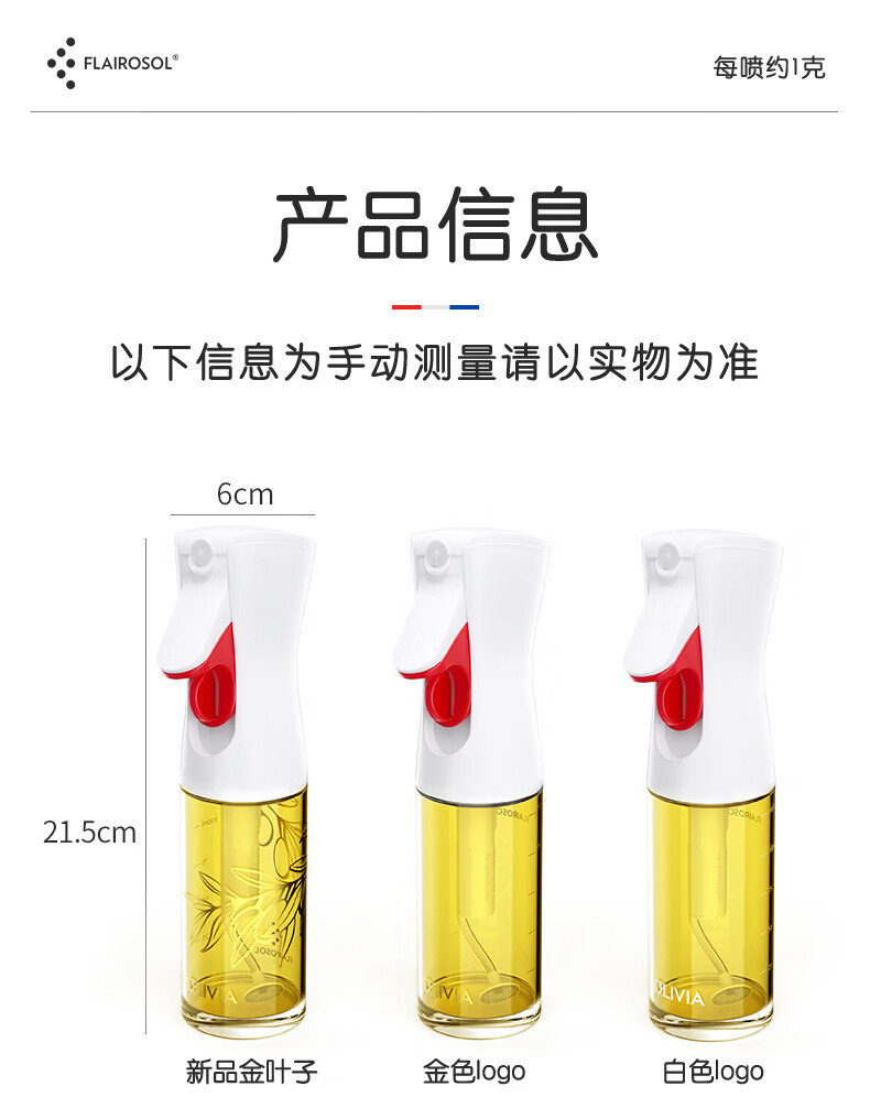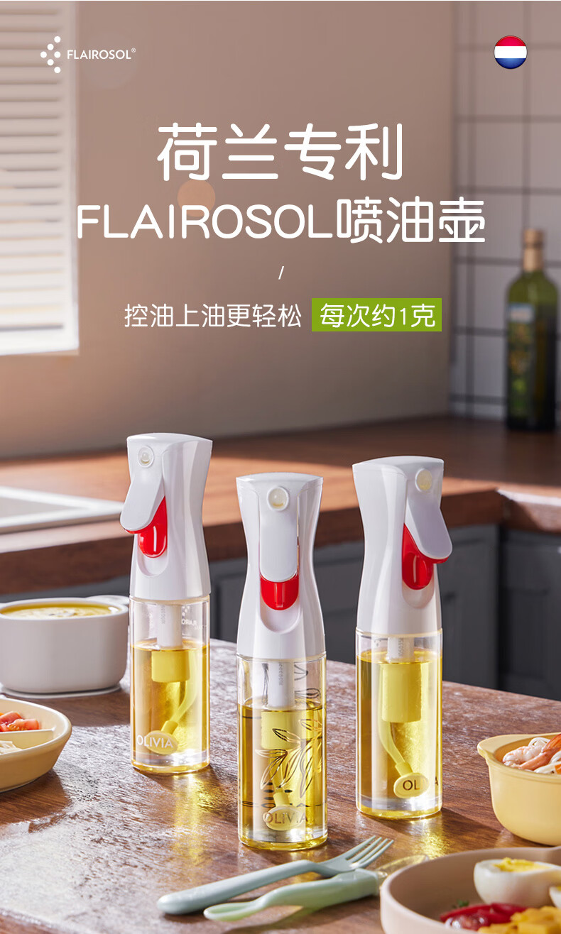 FLAIROSOL喷油瓶荷兰专利雾化喷油壶空气炸锅家用厨房控喷雾瓶橄榄油瓶 FLAIROSOL金叶子喷油瓶