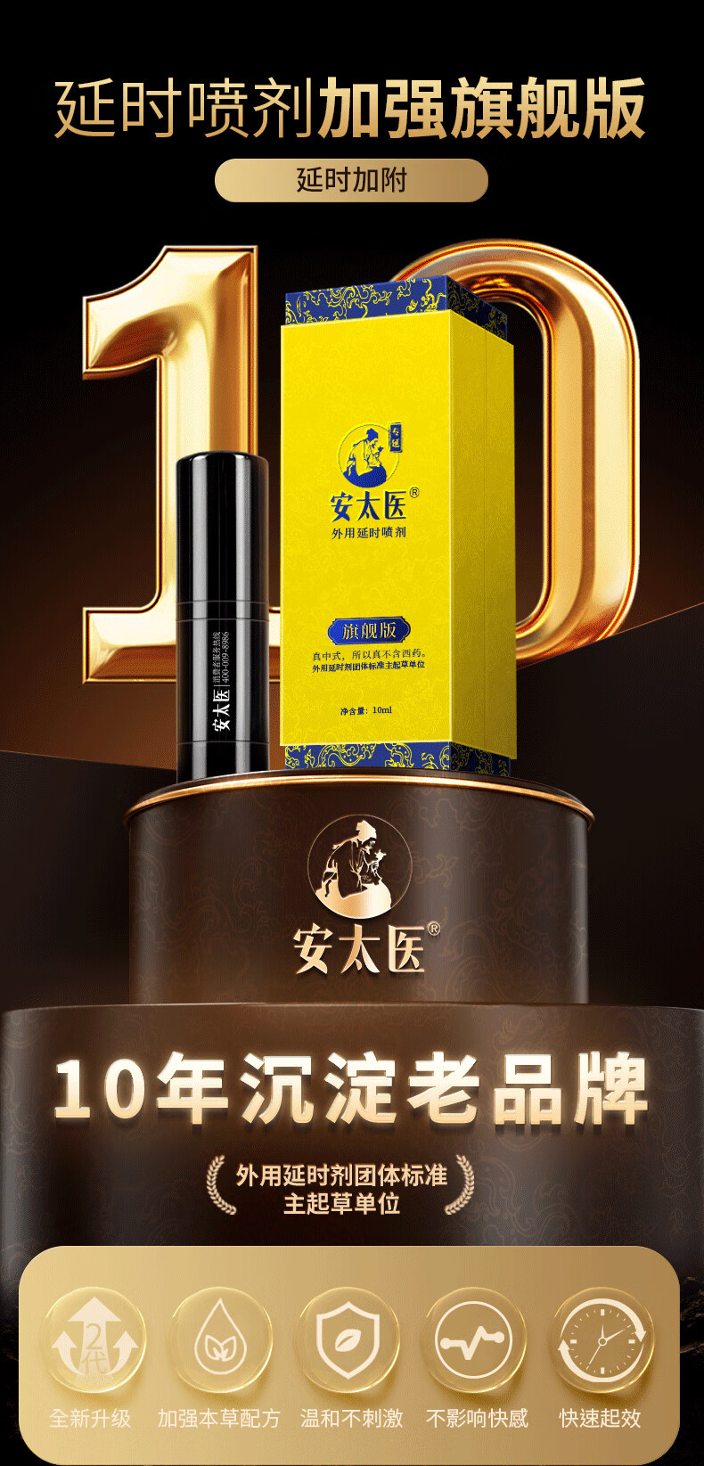 安太医男用延时喷剂延迟喷雾不麻可口爱龟头敏感早泄射精快房事情趣用品 2代加强版10ml【劲爆-适合进阶者】送6片湿巾