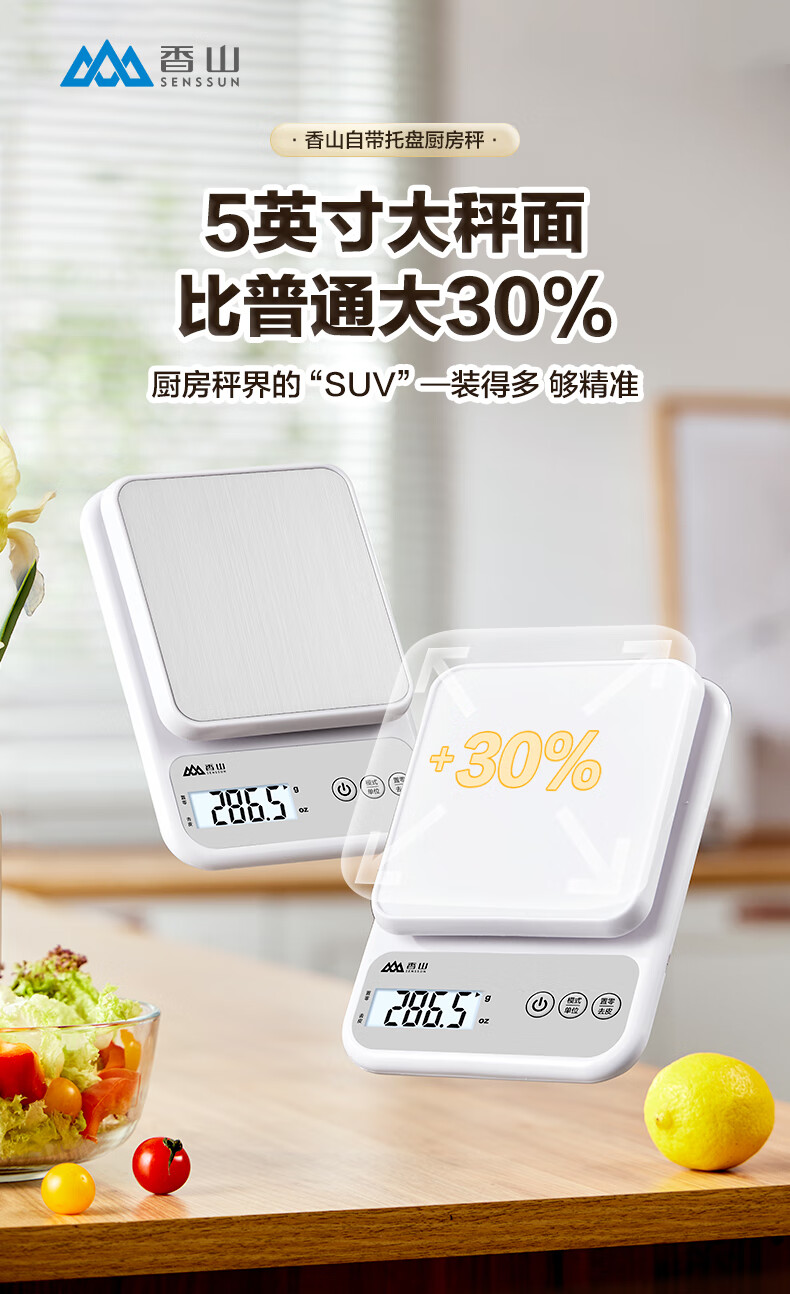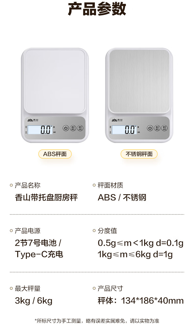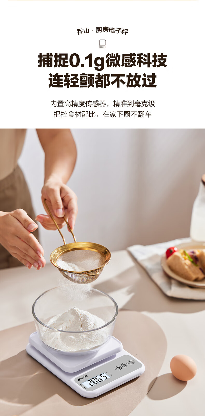 香山 电子秤厨房秤 克称高精度克重秤家用食物称菜秤茶叶烘培蛋糕克数秤咖啡秤水果秤珠宝称 台秤 塑盘-电池款【量程3kg-0.1g】