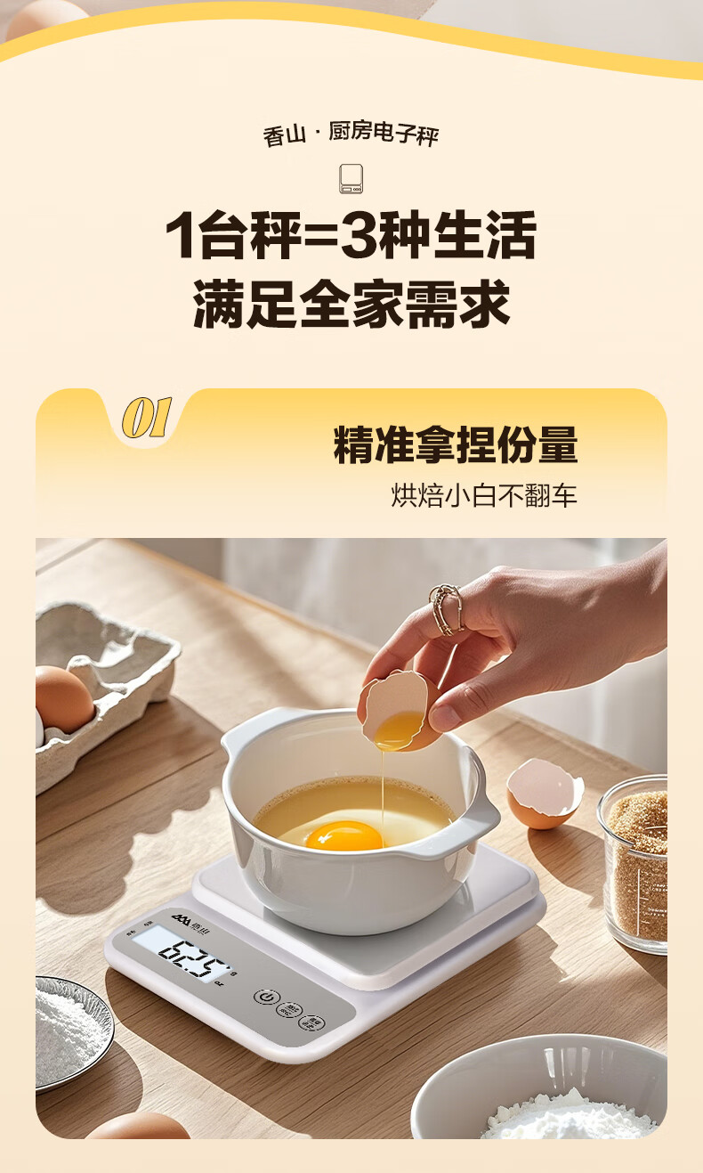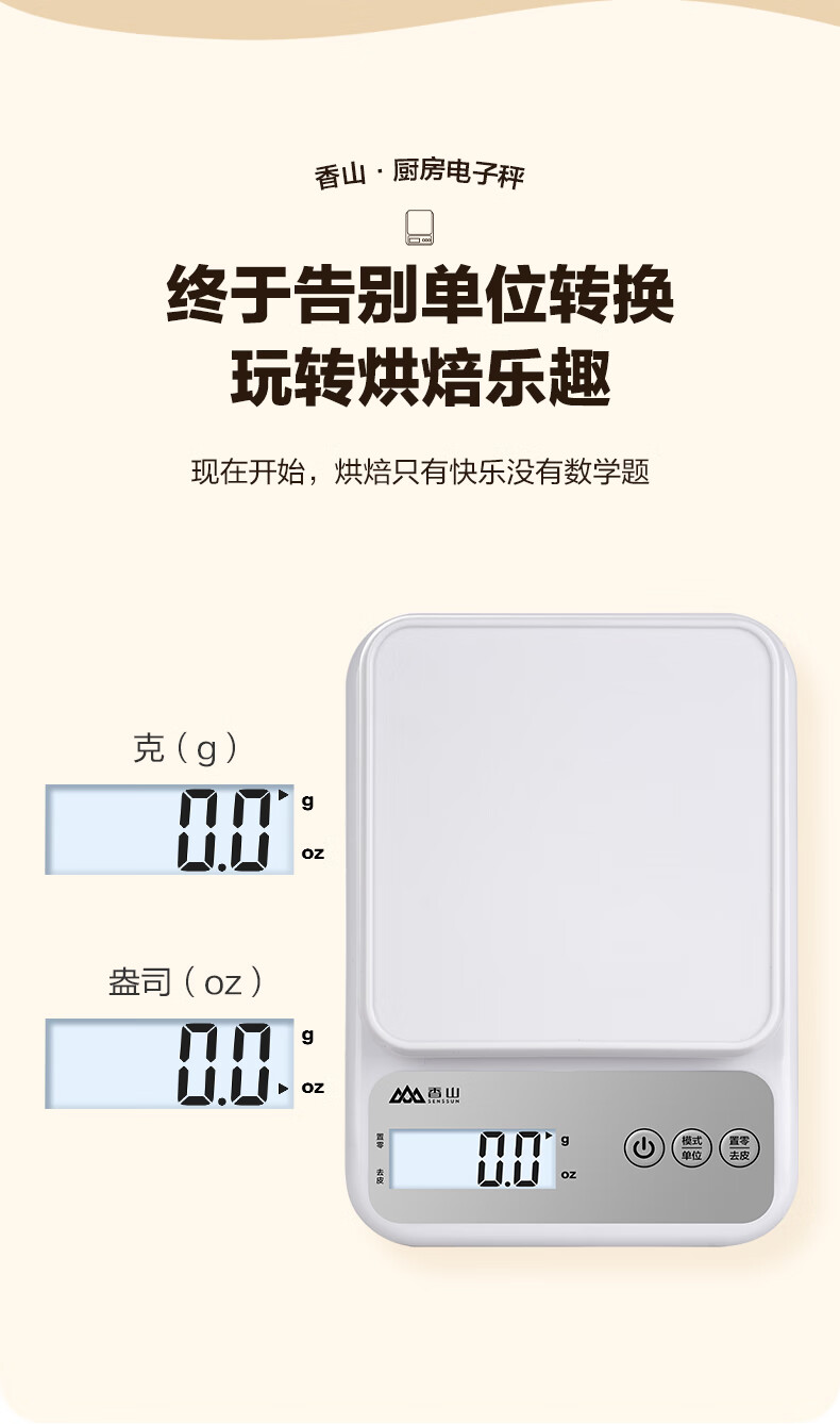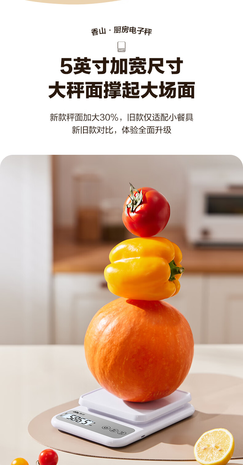 香山 电子秤厨房秤 克称高精度克重秤家用食物称菜秤茶叶烘培蛋糕克数秤咖啡秤水果秤珠宝称 台秤 塑盘-电池款【量程3kg-0.1g】