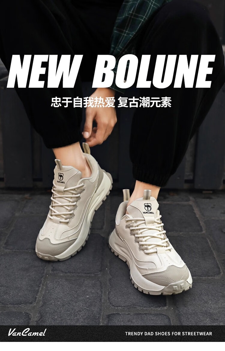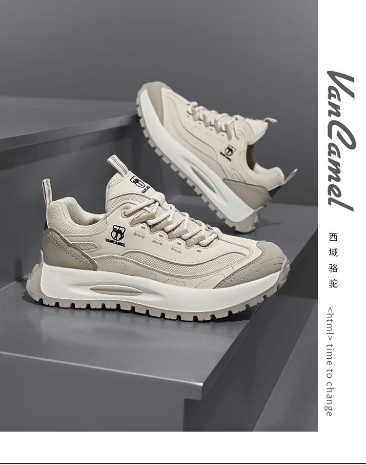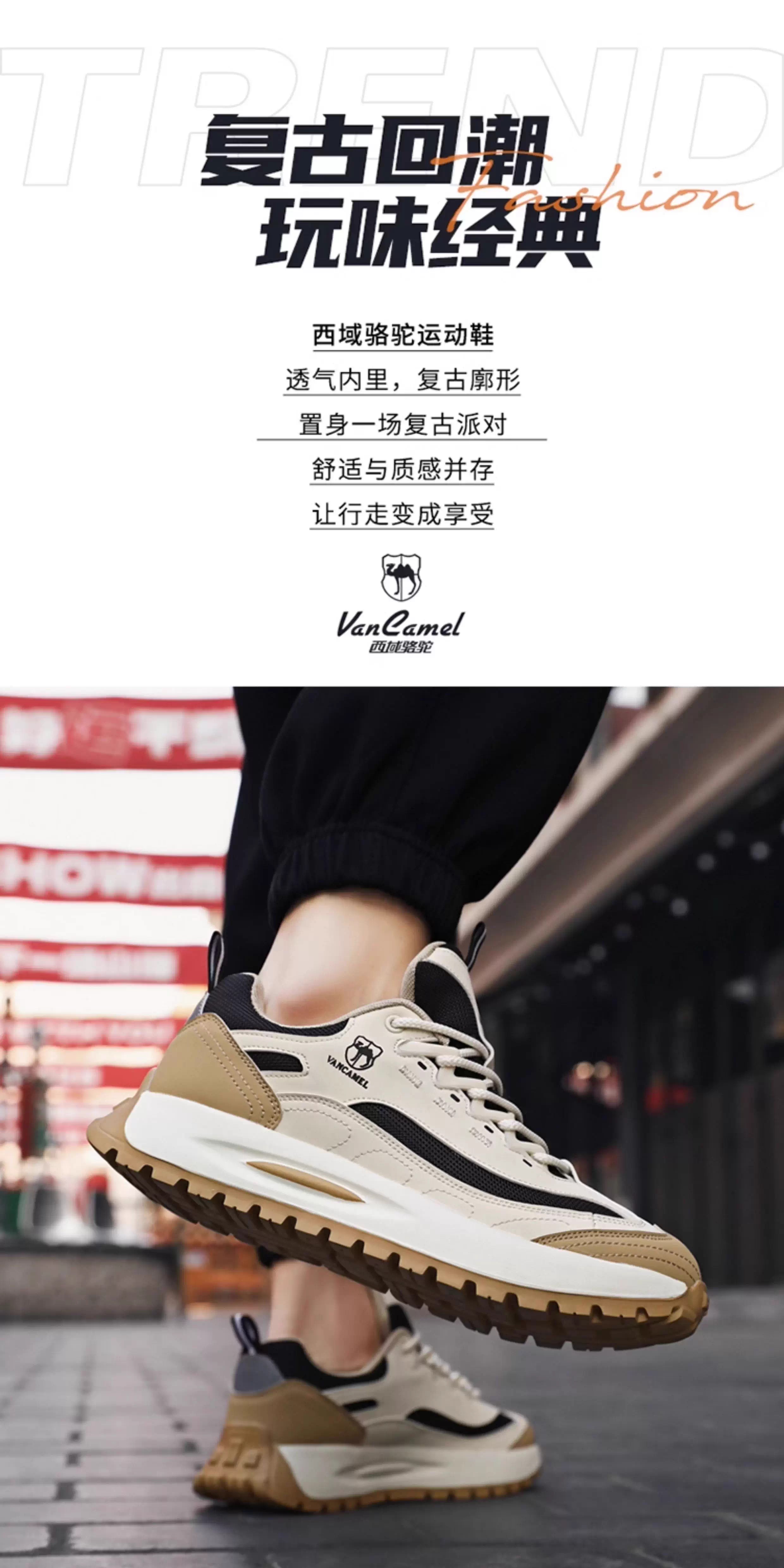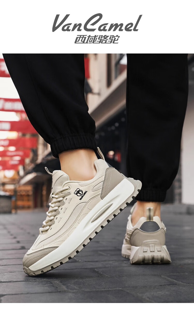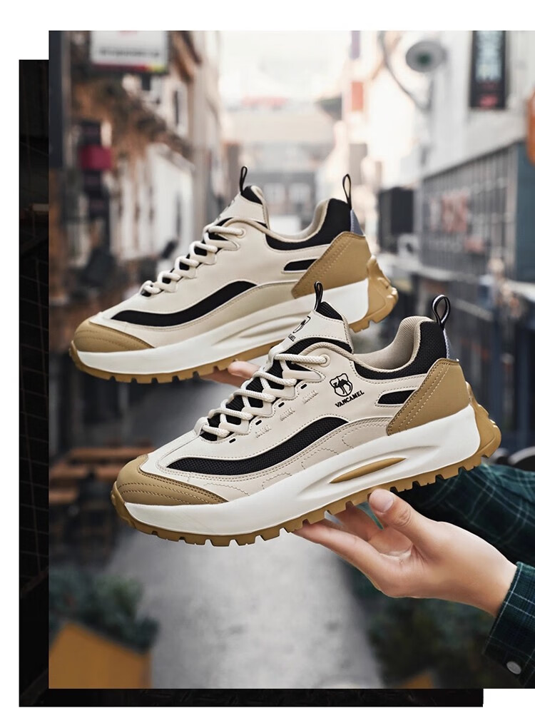 西域骆驼(VANCAMEL)轻奢男鞋秋冬季新款百搭运动鞋男软底增高休闲鞋子时尚男士老爹鞋 【官方正品 质量保证】米粽皮面款 40