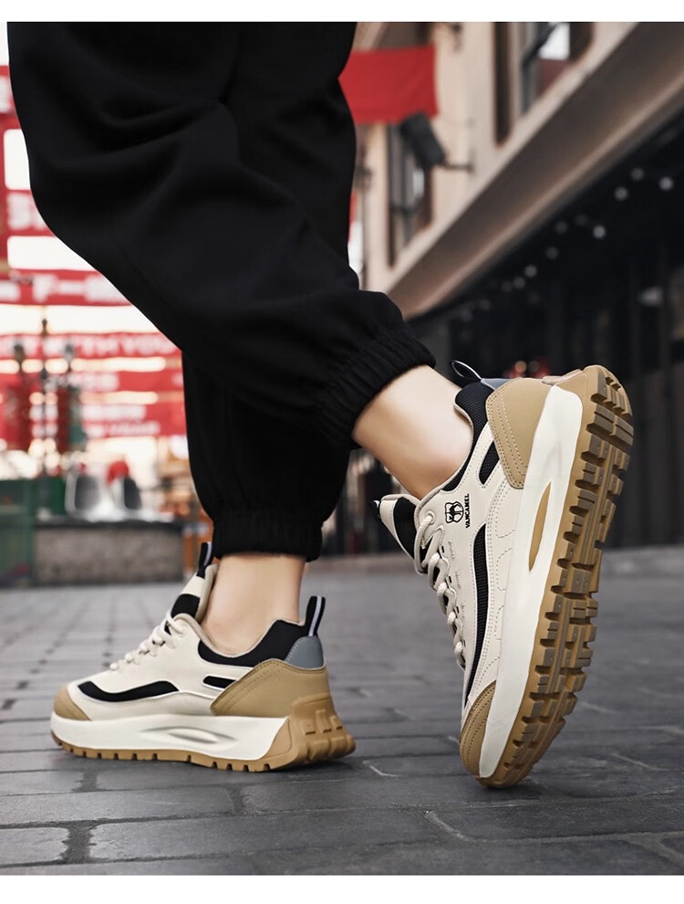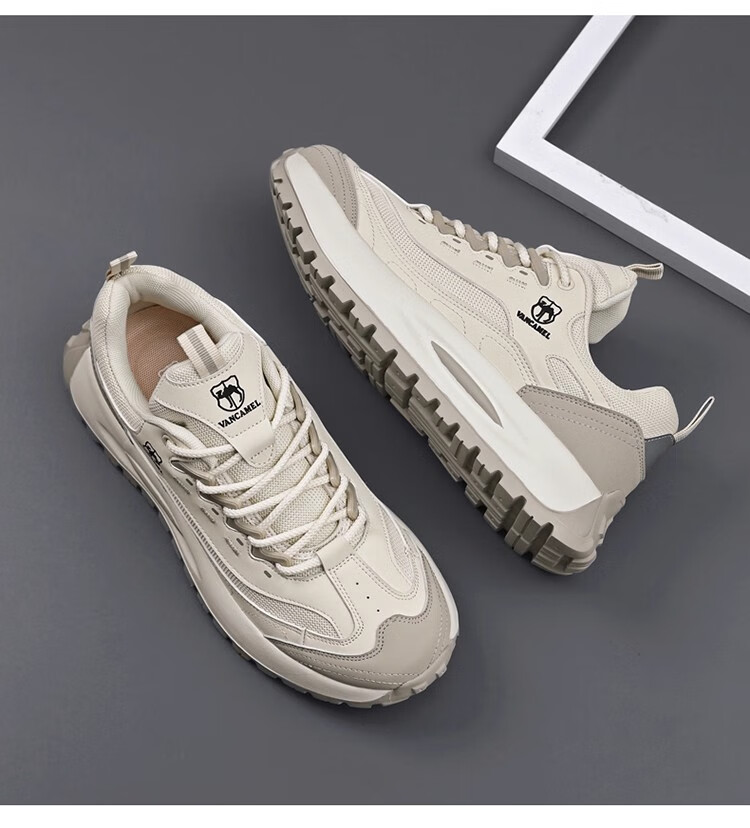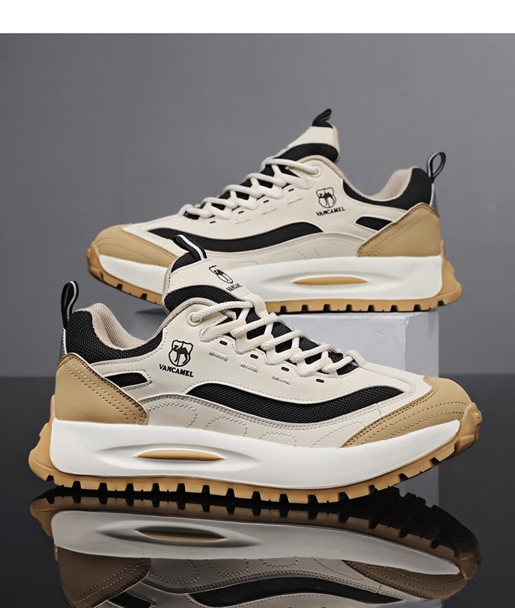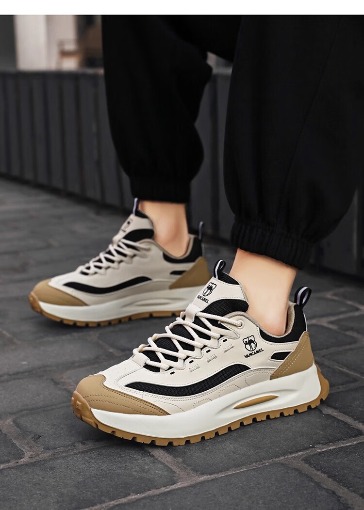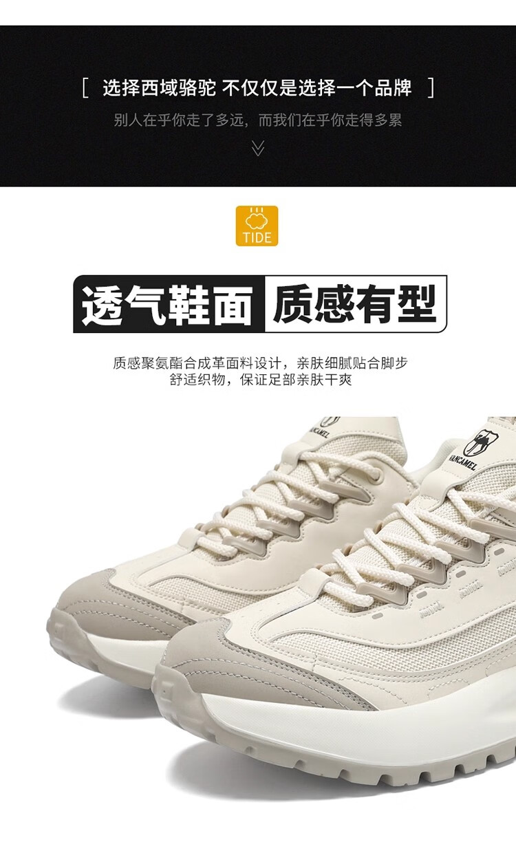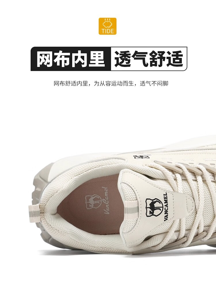 西域骆驼(VANCAMEL)轻奢男鞋秋冬季新款百搭运动鞋男软底增高休闲鞋子时尚男士老爹鞋 【官方正品 质量保证】米粽皮面款 40