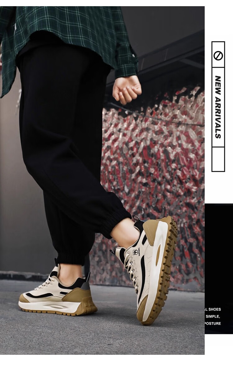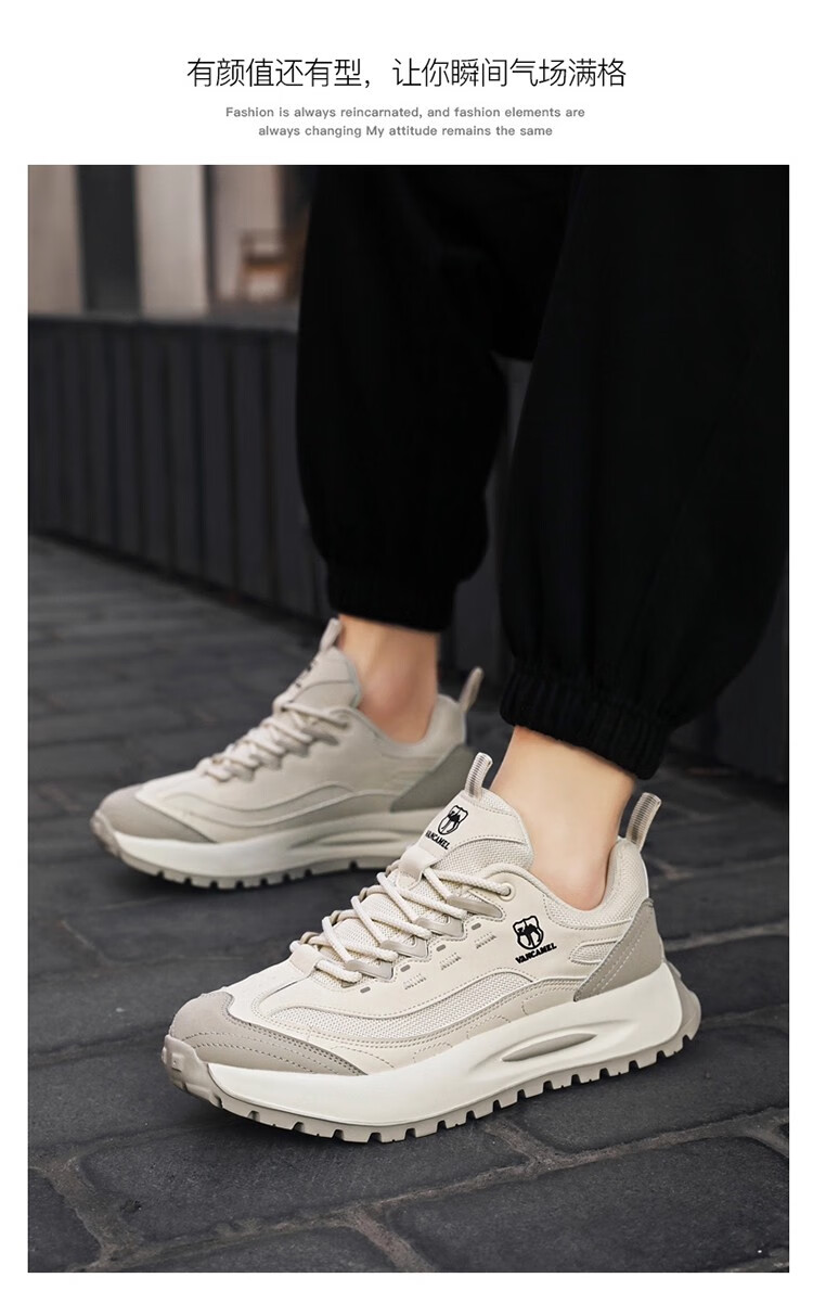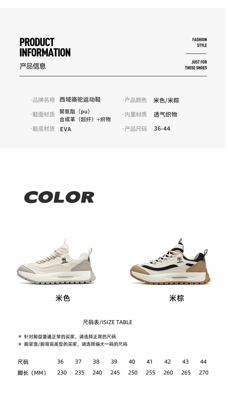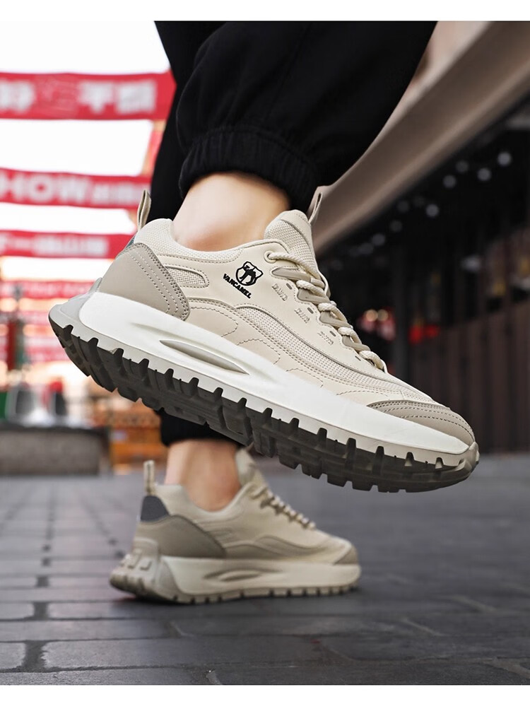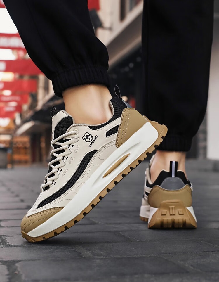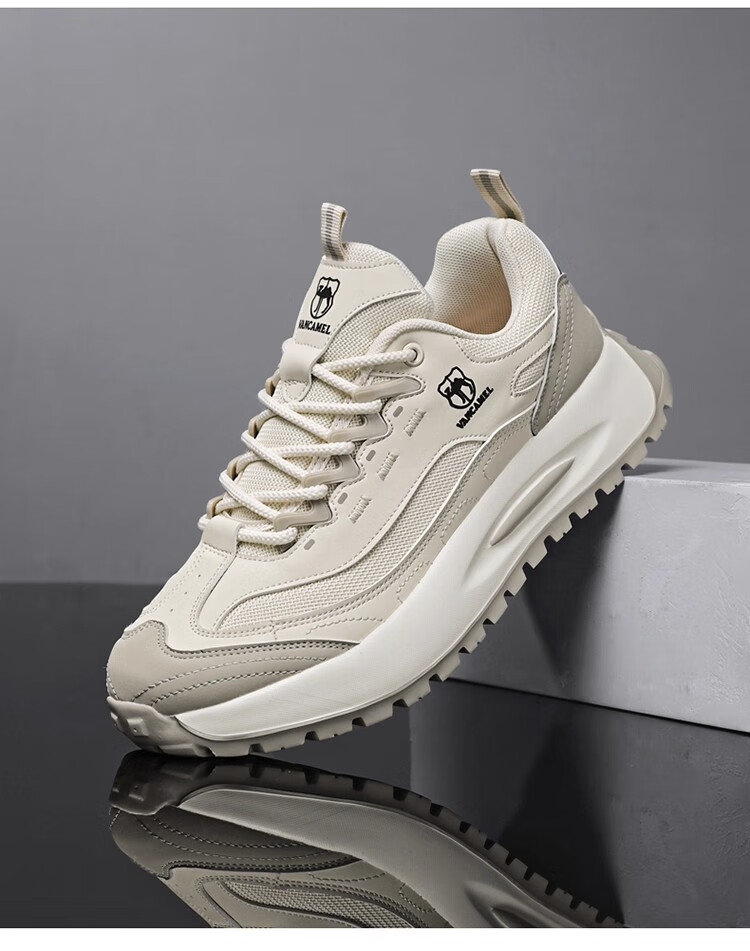 西域骆驼(VANCAMEL)轻奢男鞋秋冬季新款百搭运动鞋男软底增高休闲鞋子时尚男士老爹鞋 【官方正品 质量保证】米粽皮面款 40