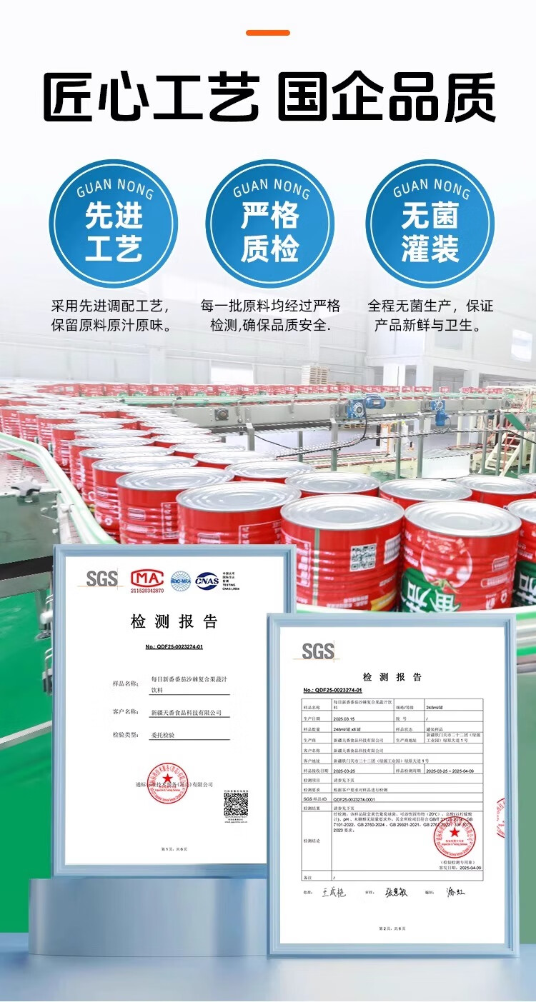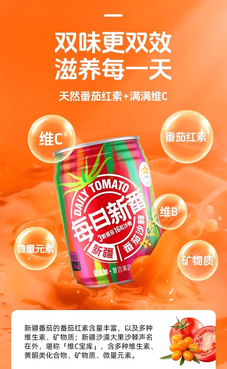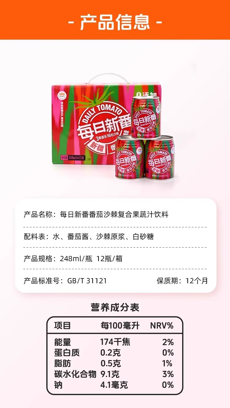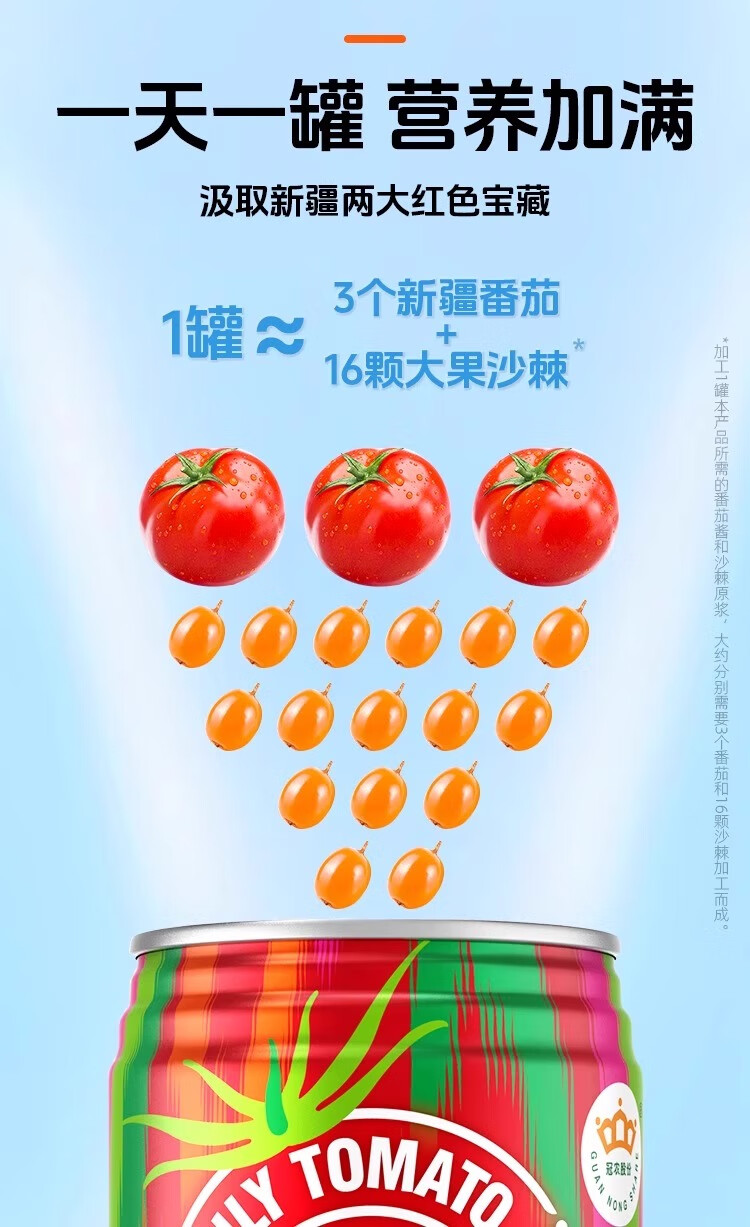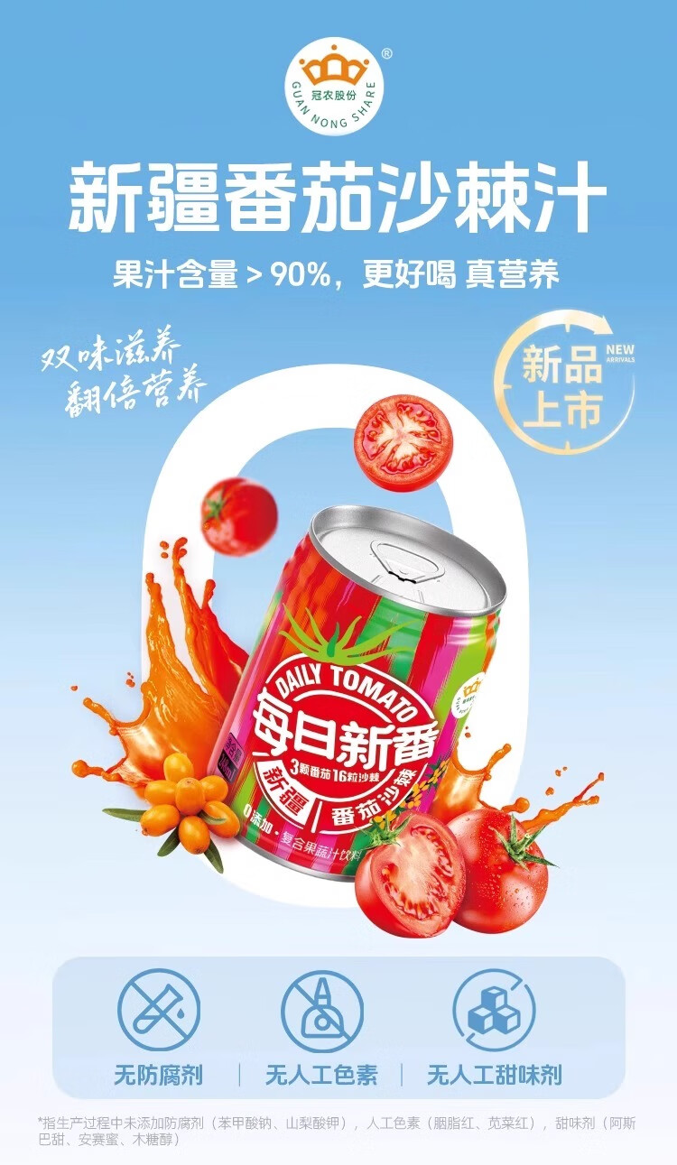 冠农股份(GUAN NONG SHARE)新疆番茄汁沙棘果蔬汁248ml*6罐西红柿代餐饮料果汁含量>90%顺丰 番茄汁(原味不加糖)310ml*12罐【整箱】