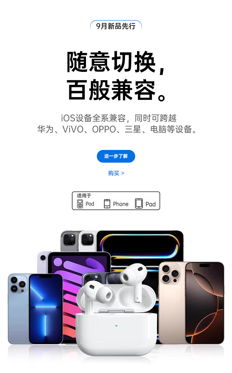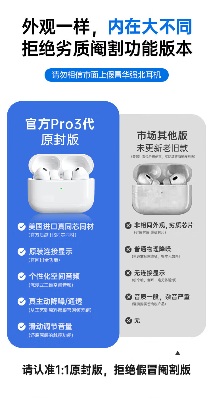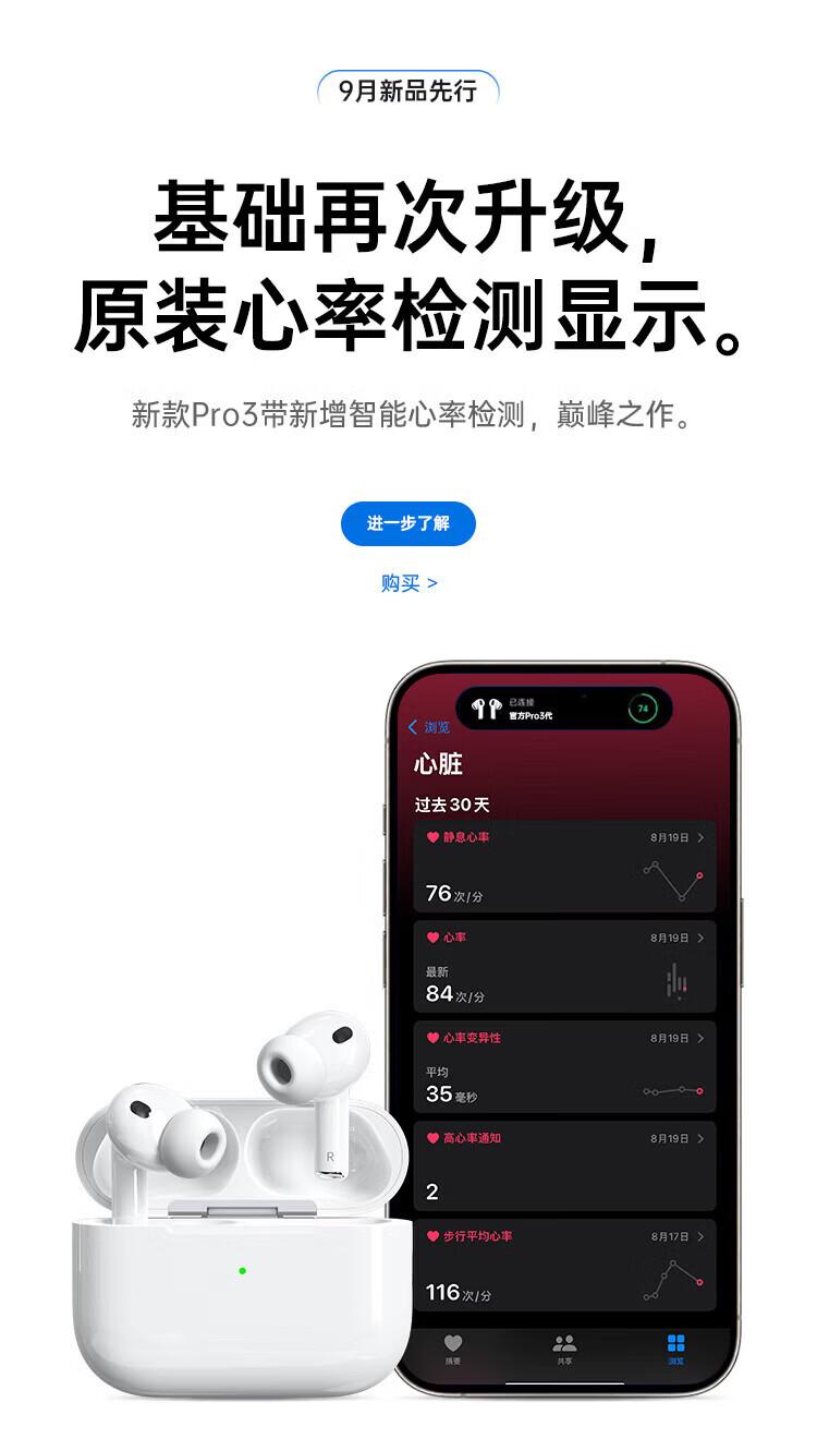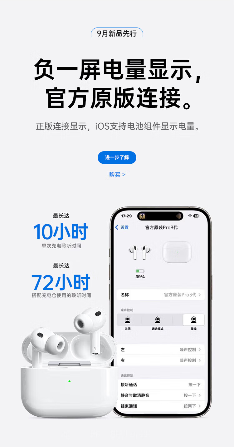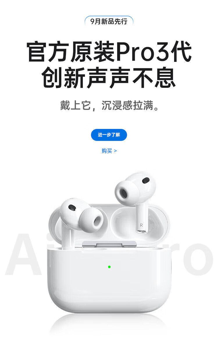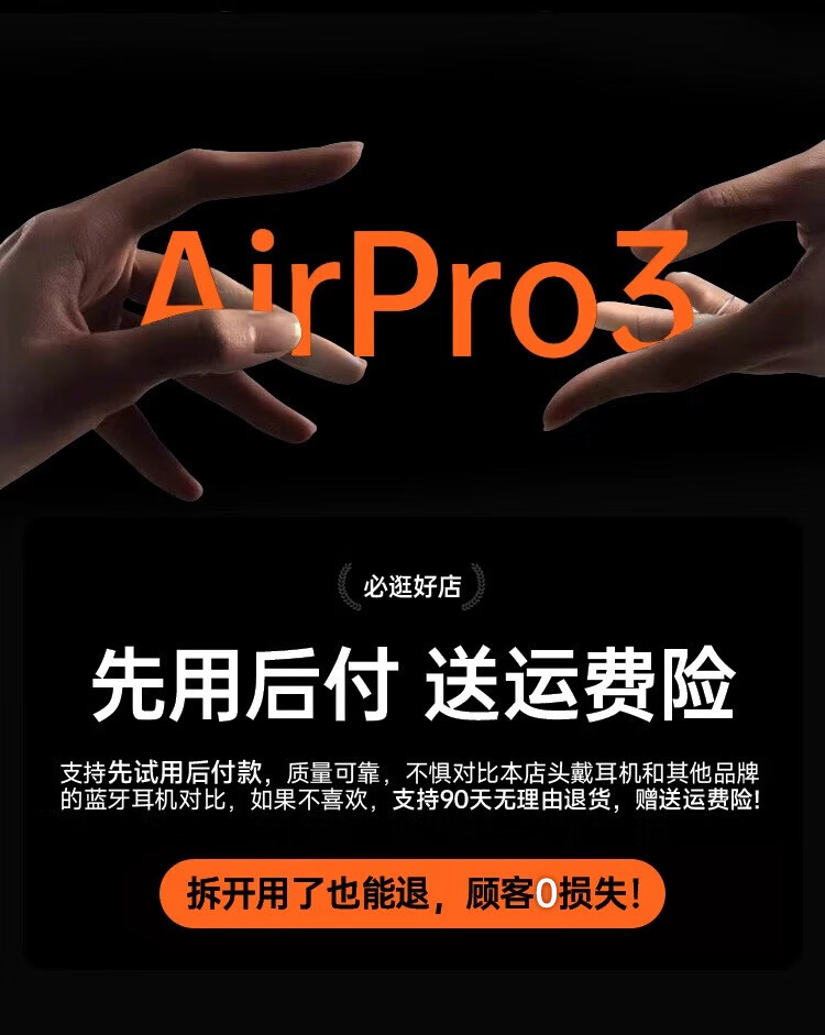 华强北新款【官配首发 | Pro3顶配版】蓝牙耳机适配苹果无线主动降噪iPhone17/16/15/14/13入耳式AirPodsPro3 【2025新款|9月首发|全功能AirPro3顶配|新年礼物】 灵动岛弹窗+空间音频+心率监测+十年质保