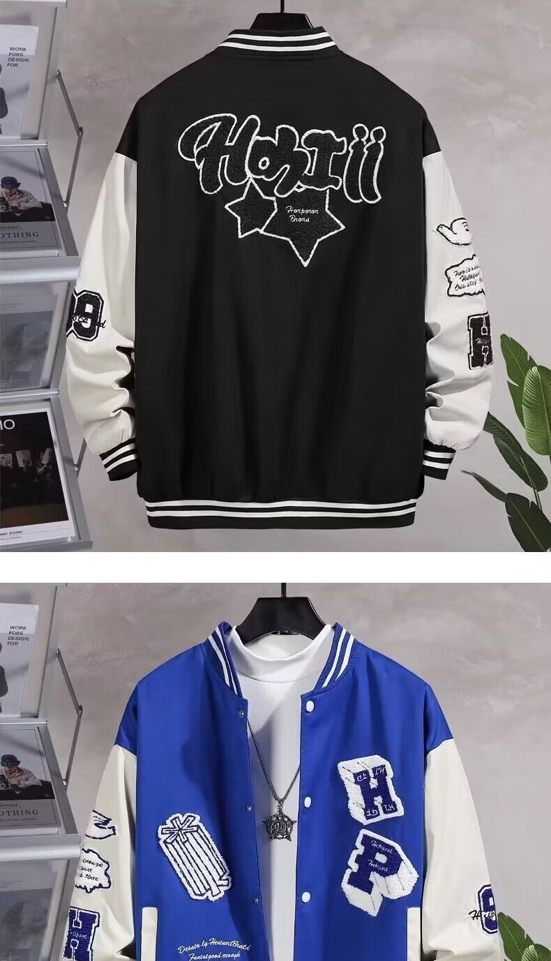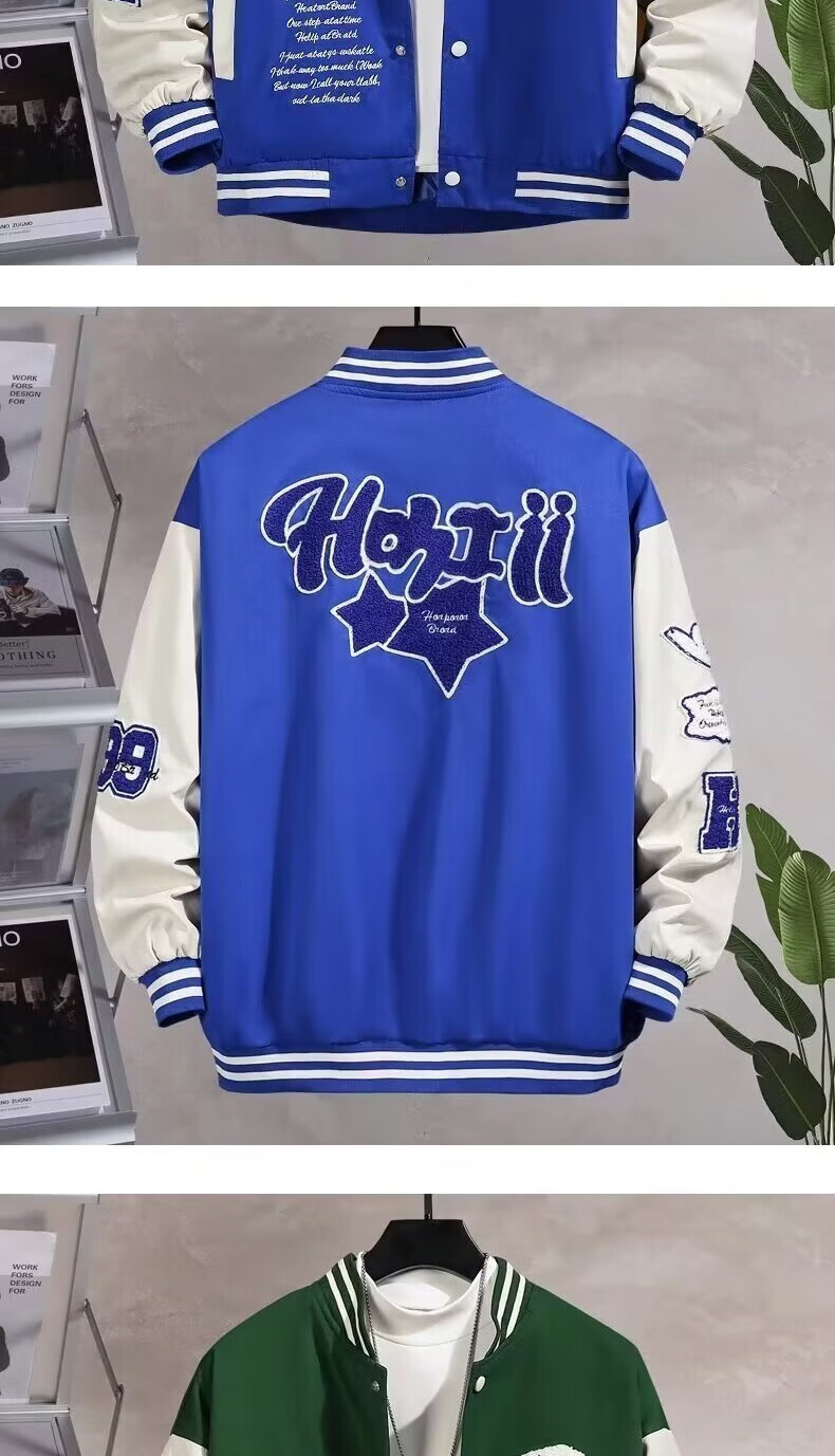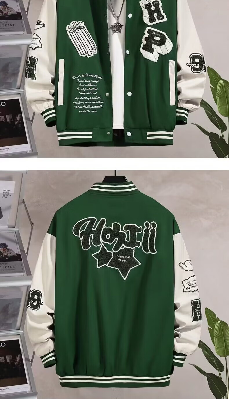极巅欧美复古高街头潮牌刺绣棒球服男女春秋嘻哈夹克炸街情侣外套 绿色 XL