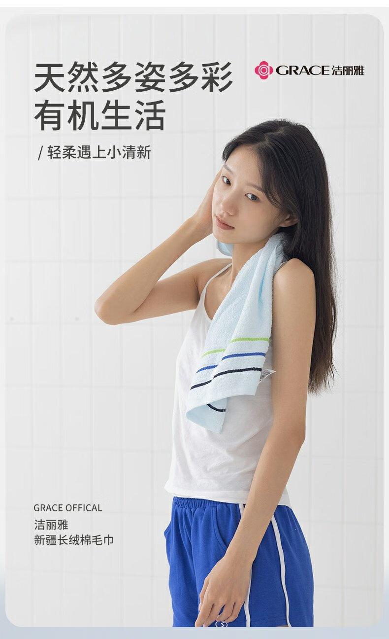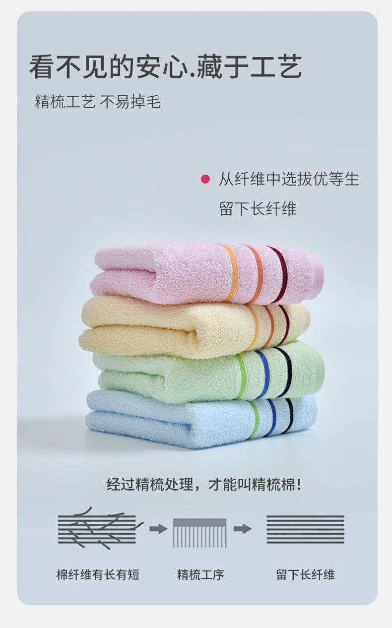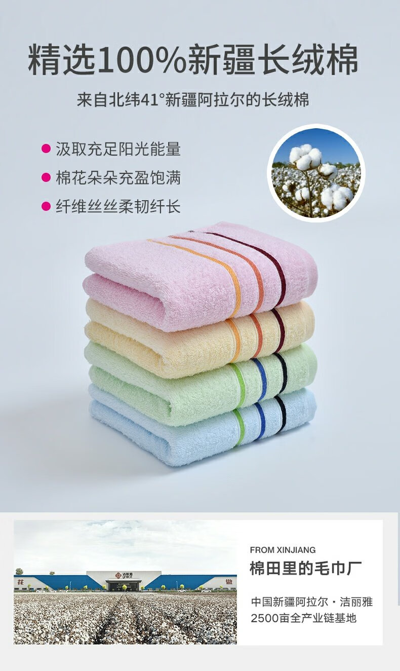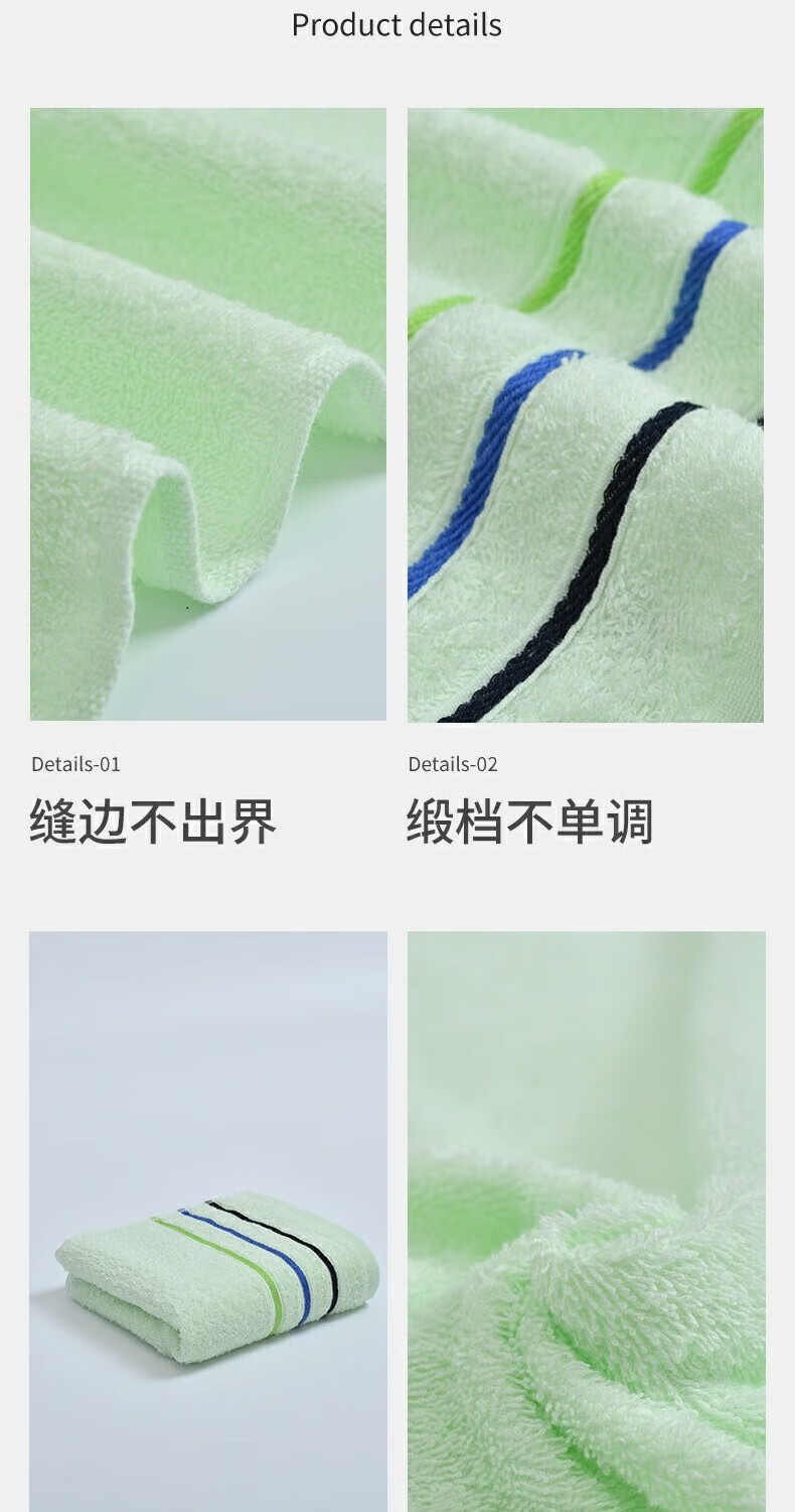 洁丽雅纯棉毛巾吸水全棉家用100%棉洗脸巾成人不掉毛儿童男女士面巾 蓝1绿1(E0114款100%棉) 2条