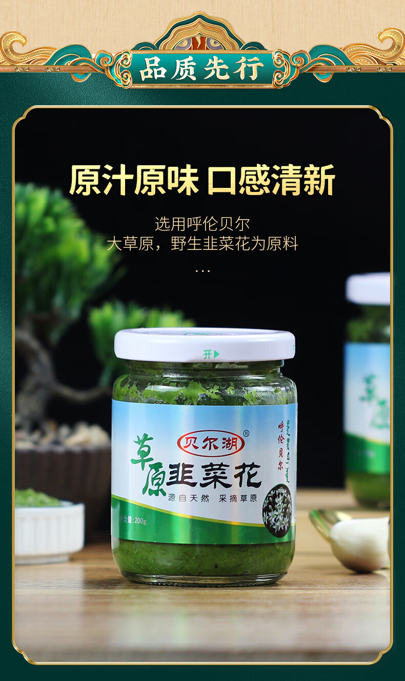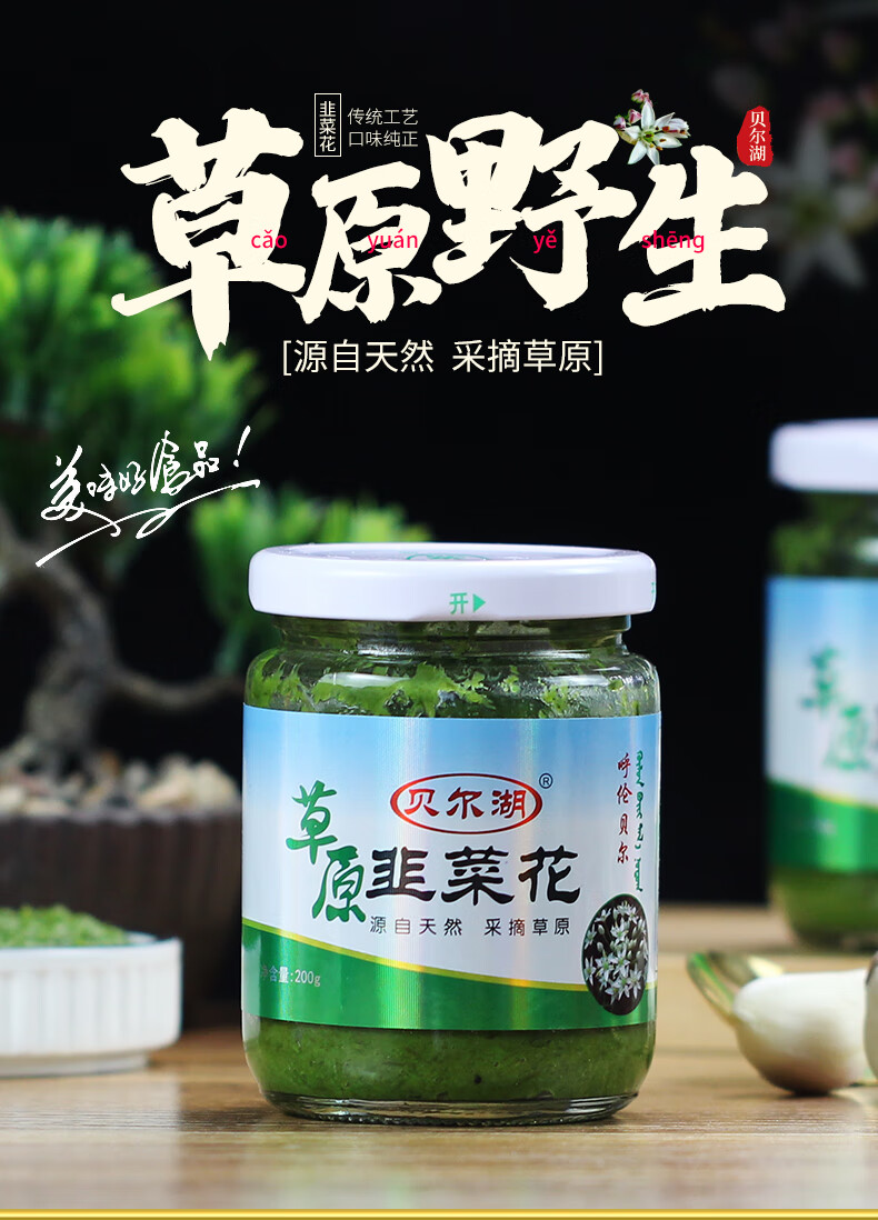 贝尔湖内蒙古海拉尔特产呼伦贝尔草原野生韭菜花酱火锅手把肉蘸料 1瓶