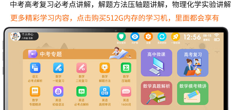 东方状元学习机平板2025款AI小学生英语点读机初高中课本同步家教机上网课早教机Deepseek儿童思维伴学练机 5G极速网【睿智蓝】+AR智慧眼+AI护眼 12G+512G解同类题+作业批改+培优课+精品课
