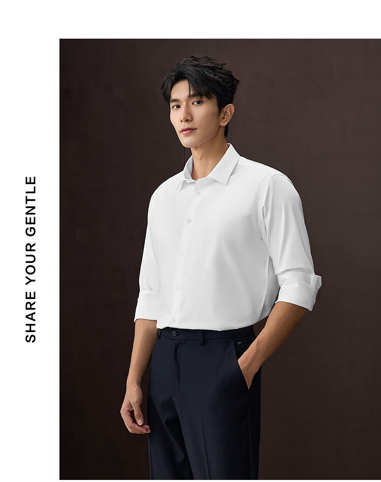 HLA海澜之家长袖衬衫男秋季25新衫及系列吸湿排汗衬衣男 漂白40 42 180/100A 推荐161-172斤