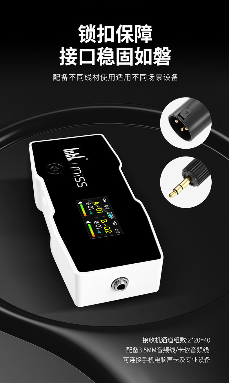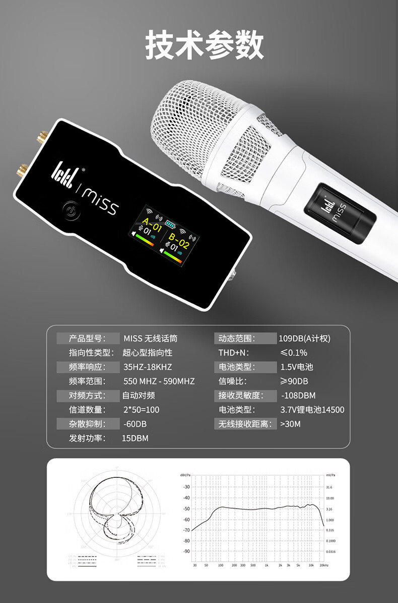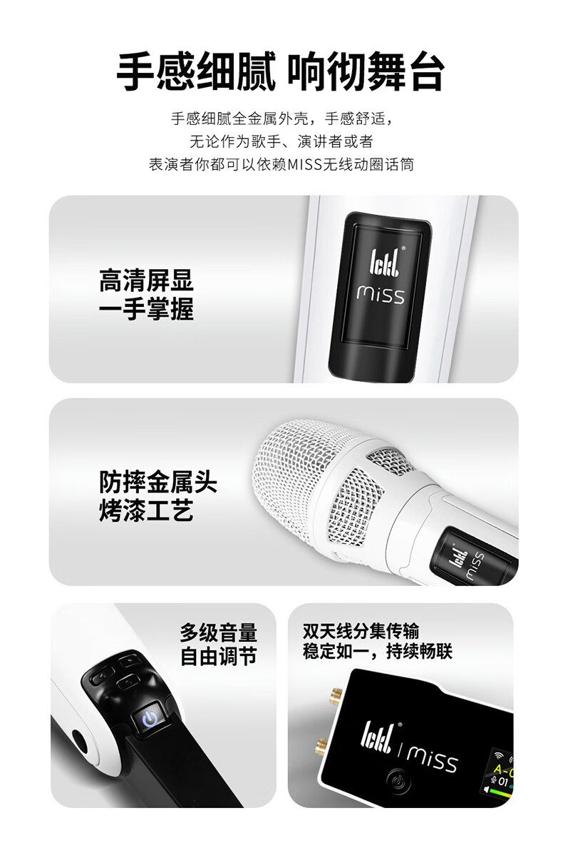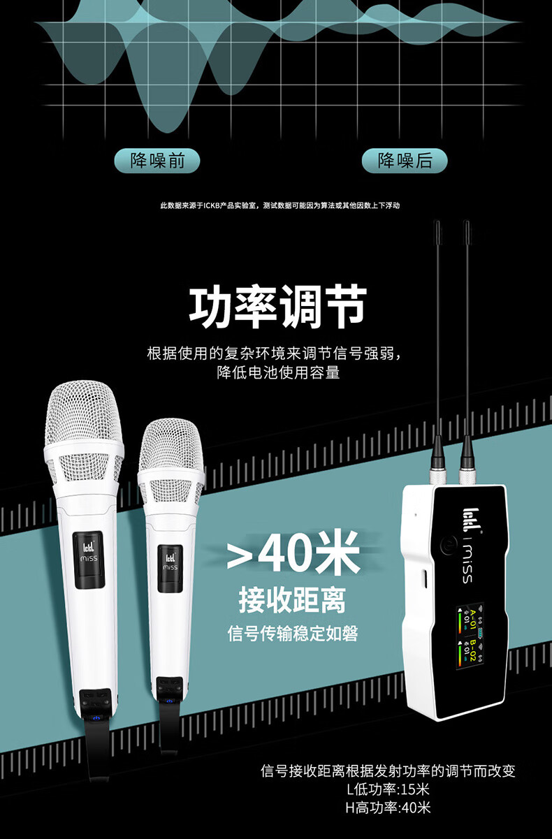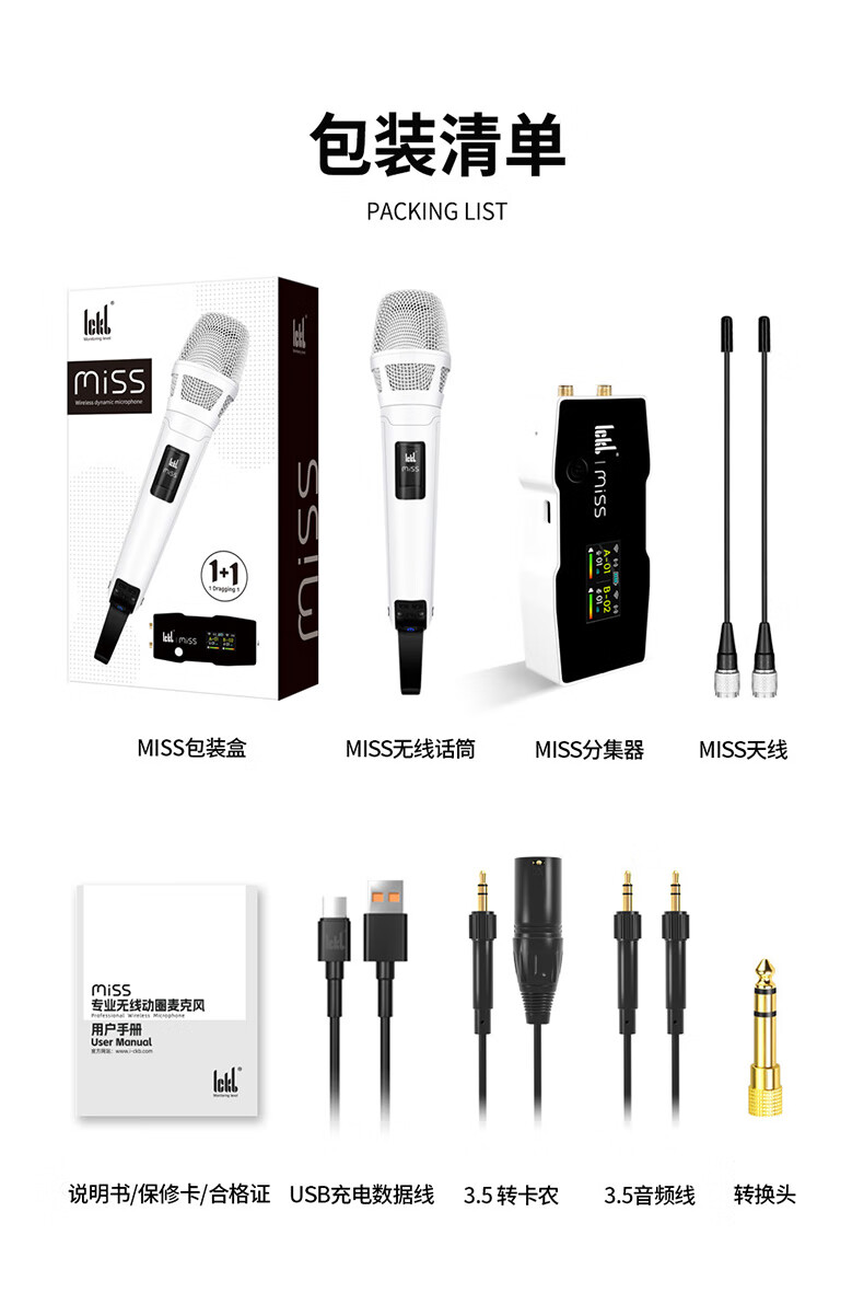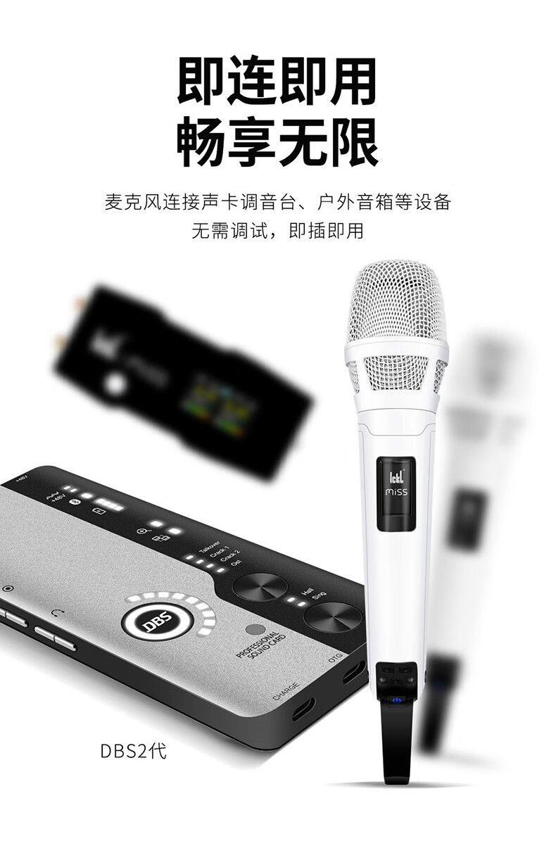 Ickb miss无线动圈麦手机直播唱歌户外麦克风抖音快手主播舞台演讲专业K歌音响音响一拖二话筒设备全套 Miss无线话筒1拖2【两人使用】