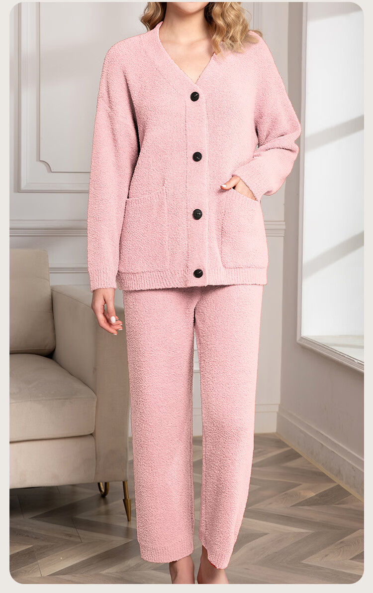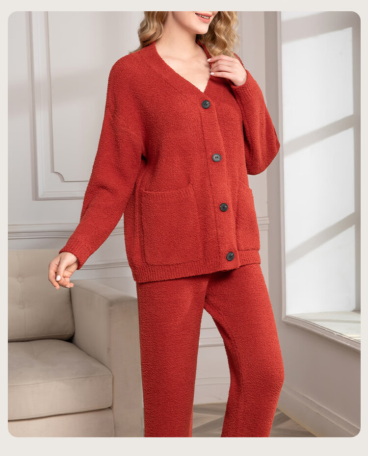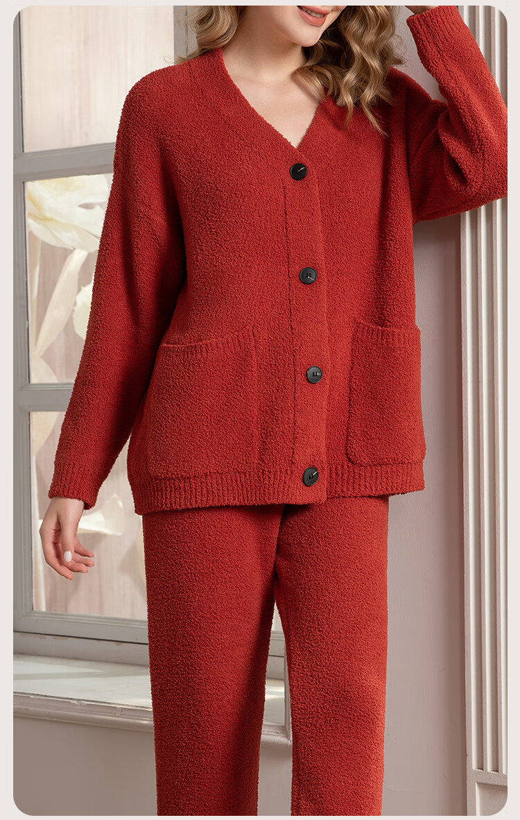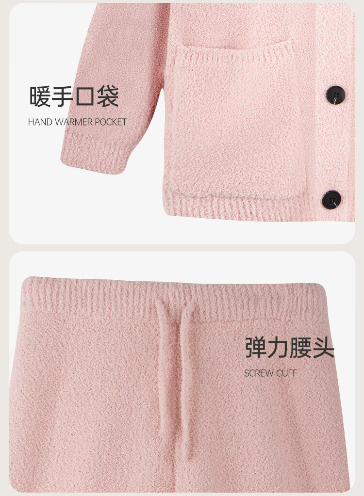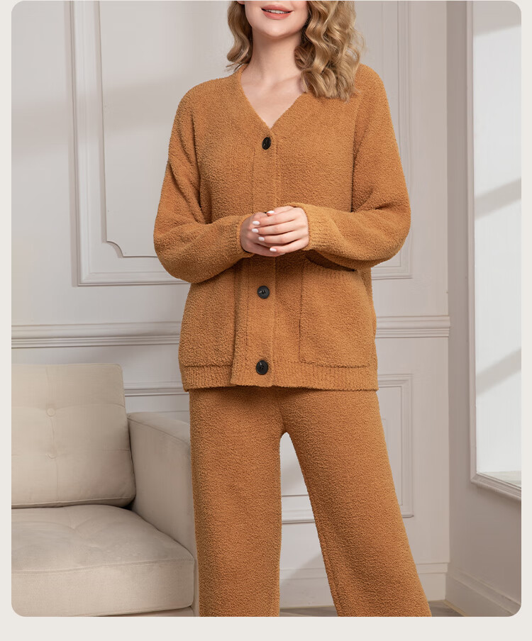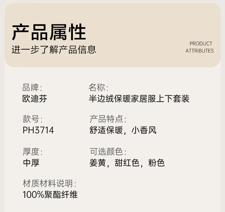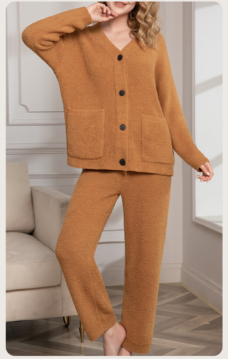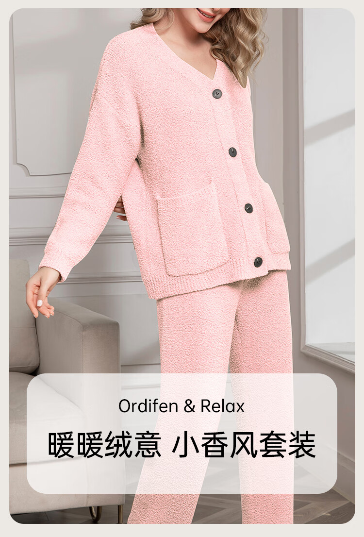 欧迪芬(Ordifen)秋冬睡衣女舒适半边绒保暖家居服小香风上下套装送女友 姜黄 L