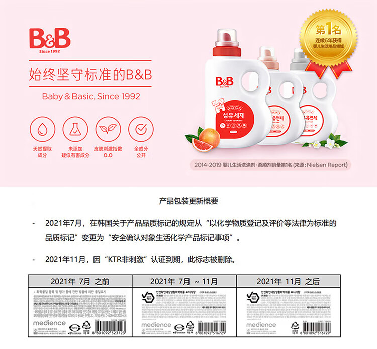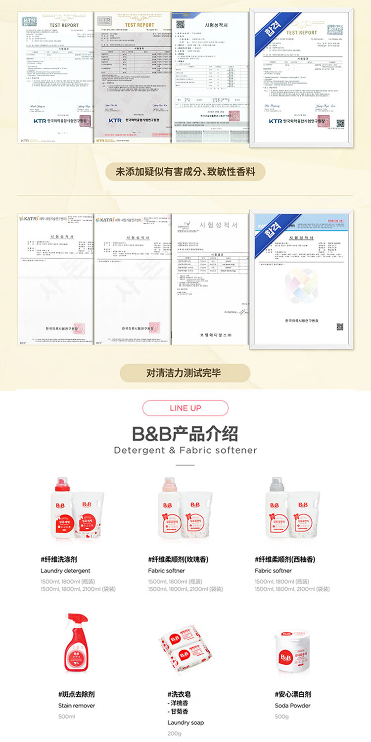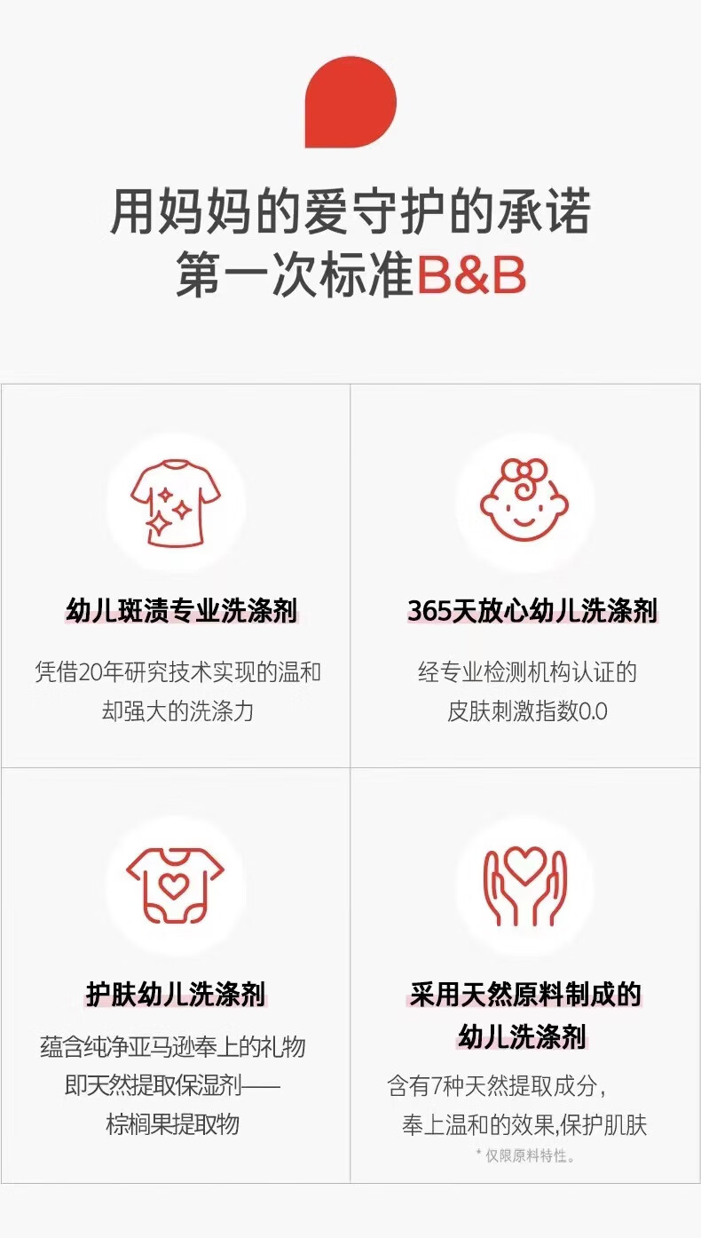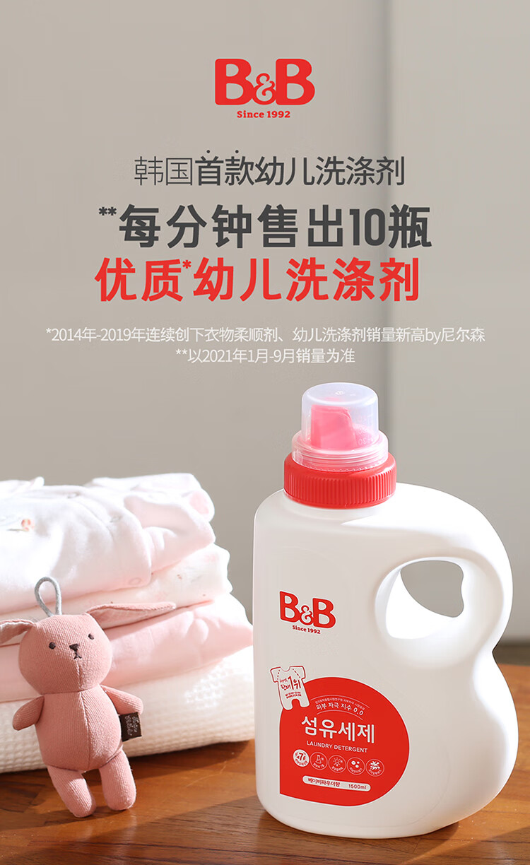 保宁B&B婴幼儿洗衣液去污成分温和香草洗衣液1800ml*2