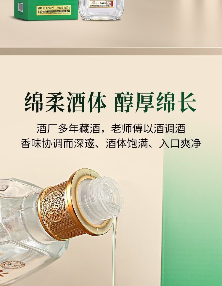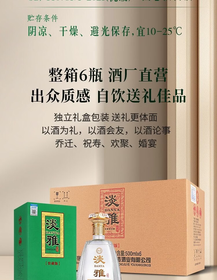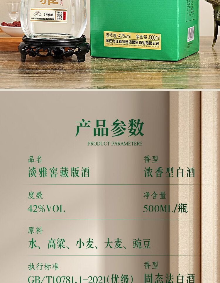 洋宾淡雅42度52度浓香型白酒整箱500*6瓶赠3礼品袋 52度 500mL 6瓶