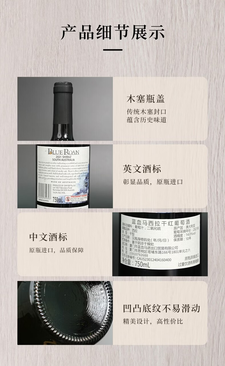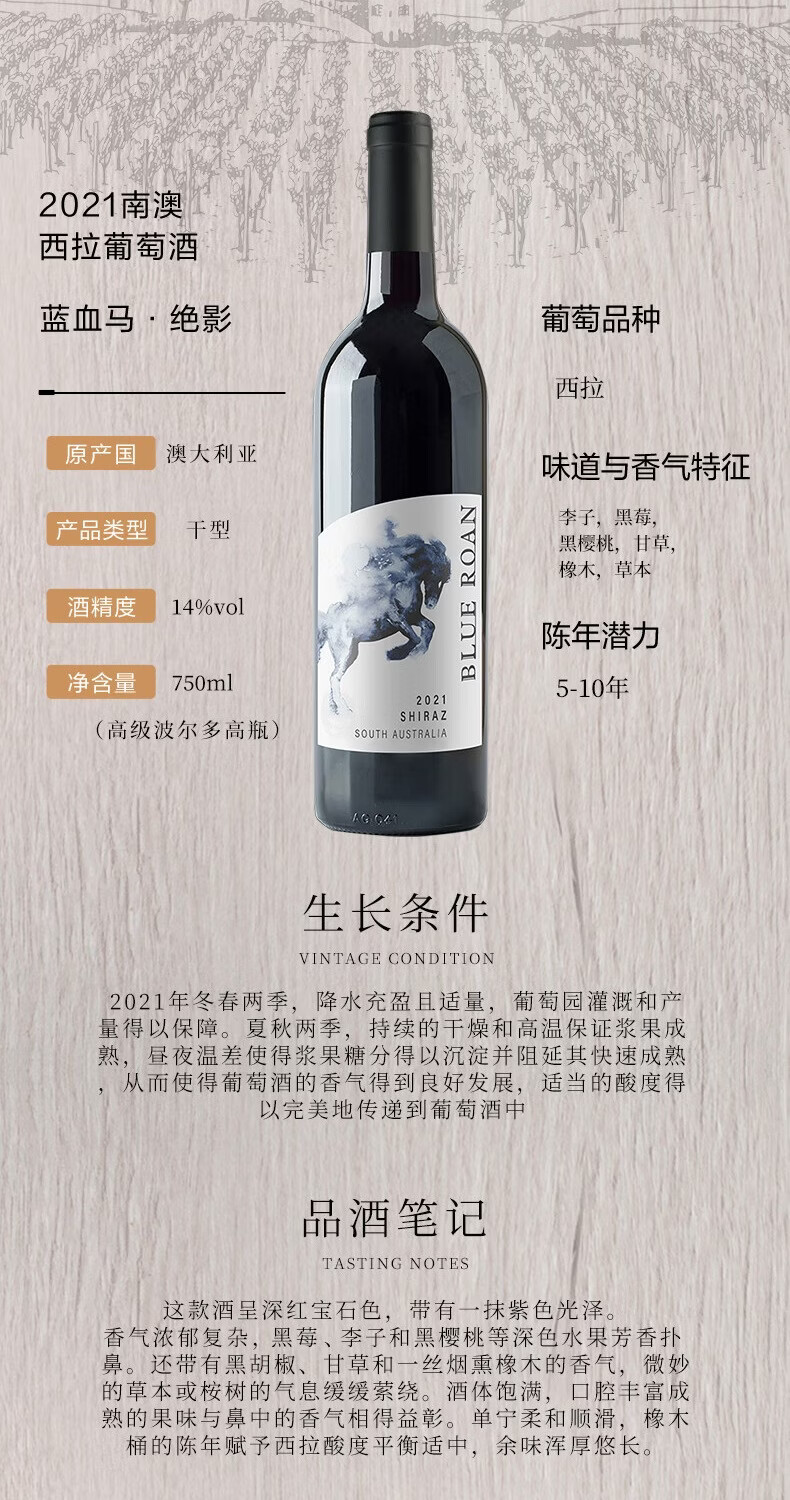 蓝血马进口红酒14度绝影西拉干红葡萄酒澳洲原瓶原装进口马年新春红酒礼 2瓶礼盒装750ml*2
