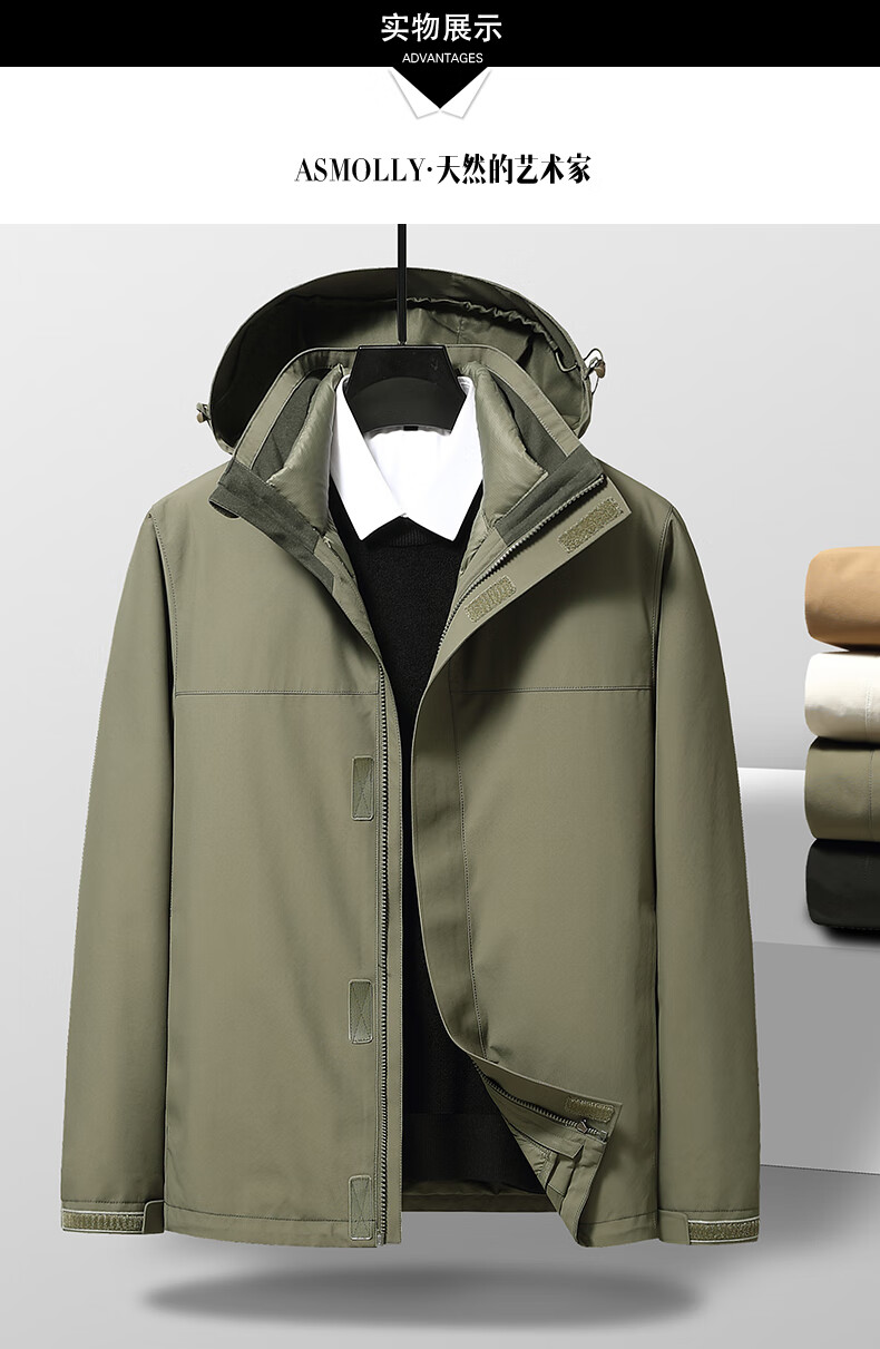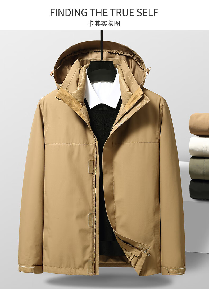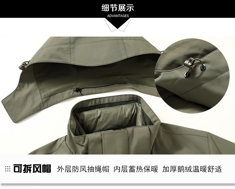 SHANSHAN杉杉【鹅绒】户外冲锋羽绒服男秋冬新款连帽可拆防风保暖休闲外套 黑色 【三合一冲锋 内胆+帽子可拆卸 】 XL (180/96A)
