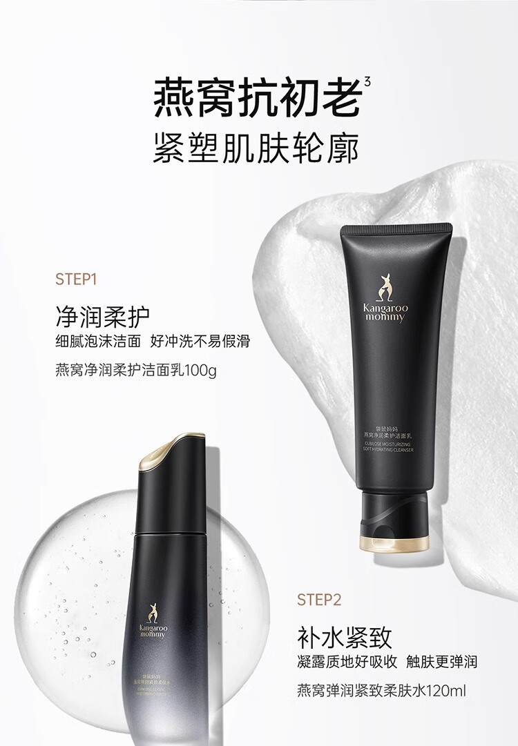 袋鼠妈妈燕窝锁鲜丰润塑颜准孕妇护肤套装抗皱紧致滋养补水保湿抗初老养肤 燕窝洁面+乳