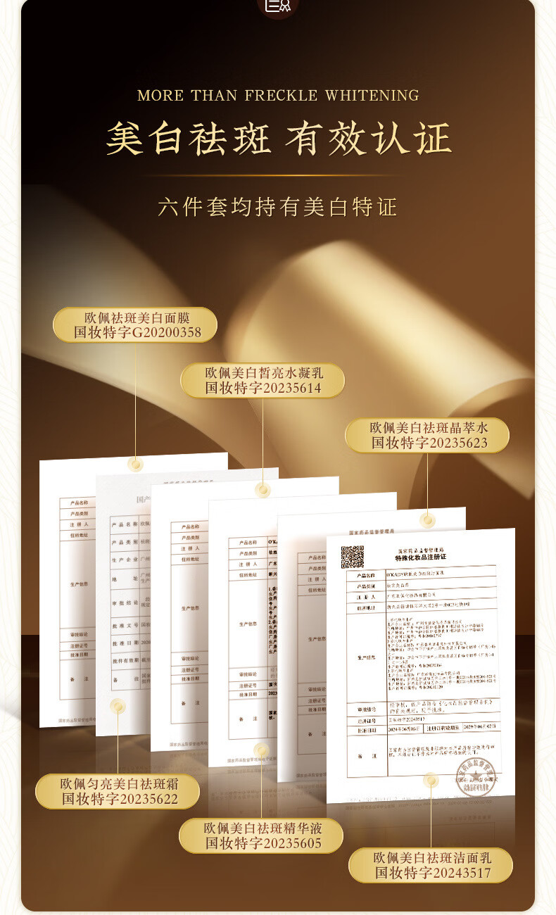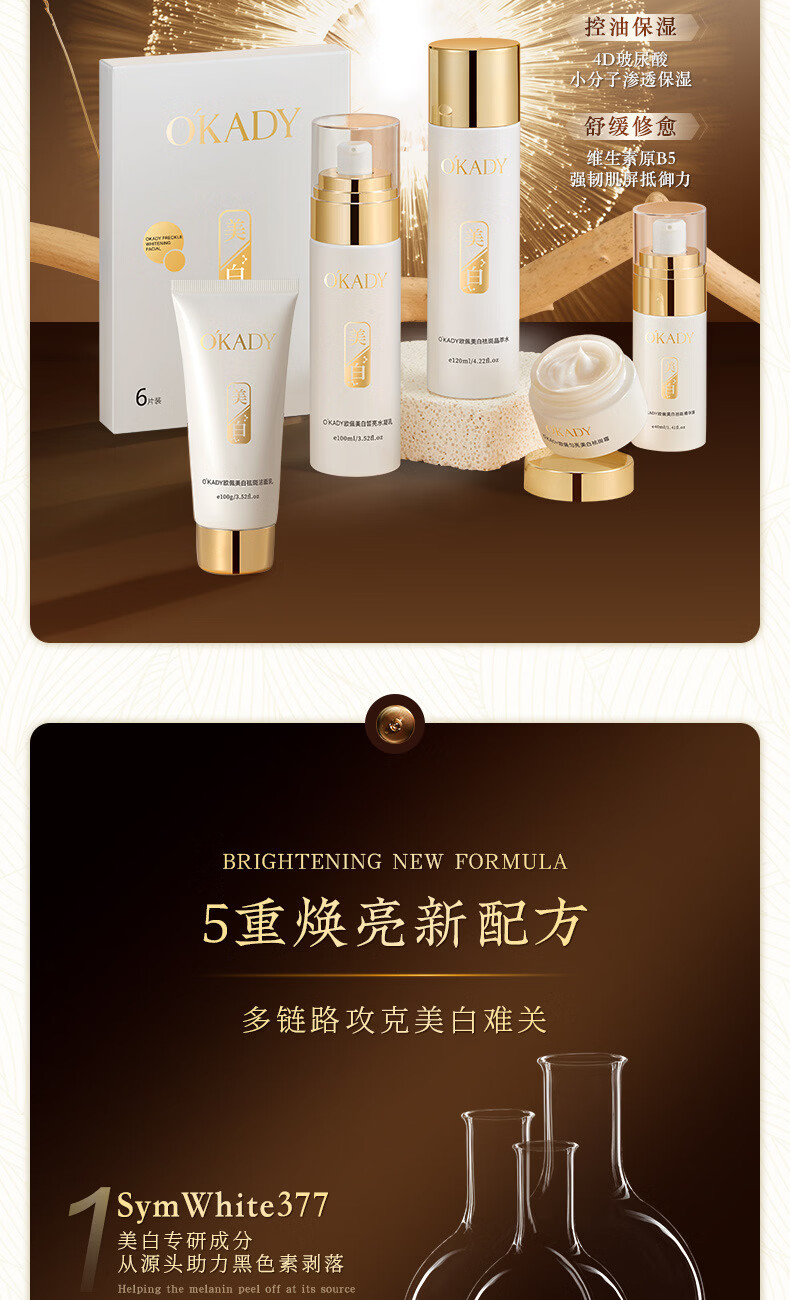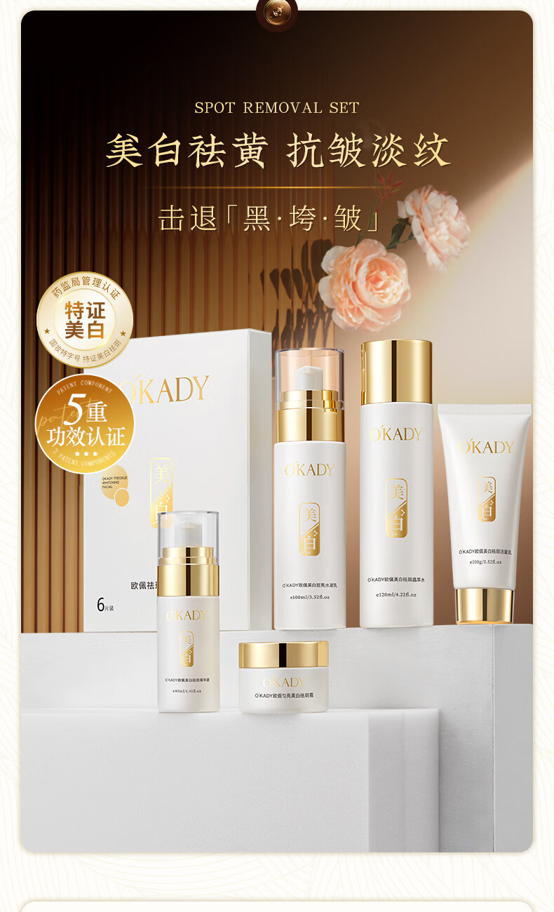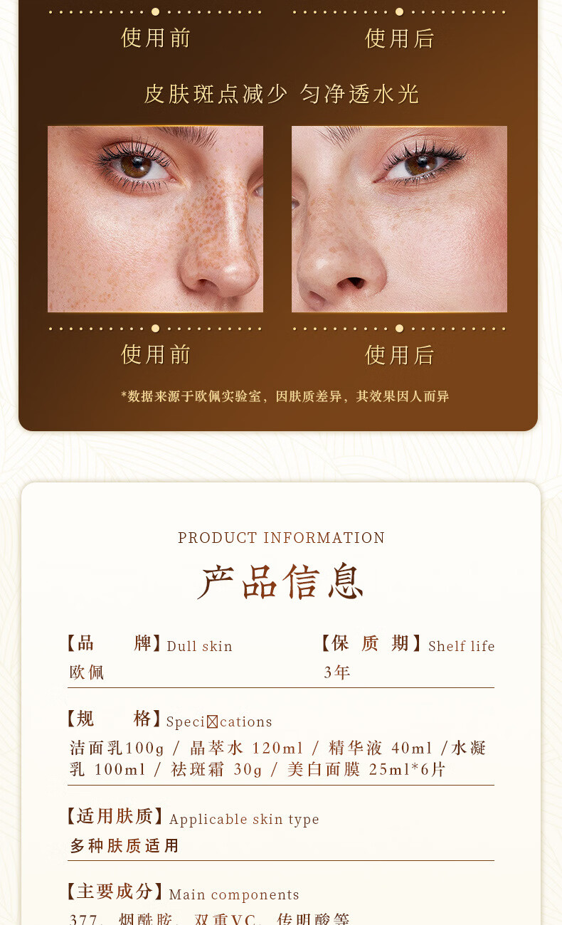 欧佩美白祛斑六件套可减轻斑点盈润肌肤提亮肤色美白护肤套盒