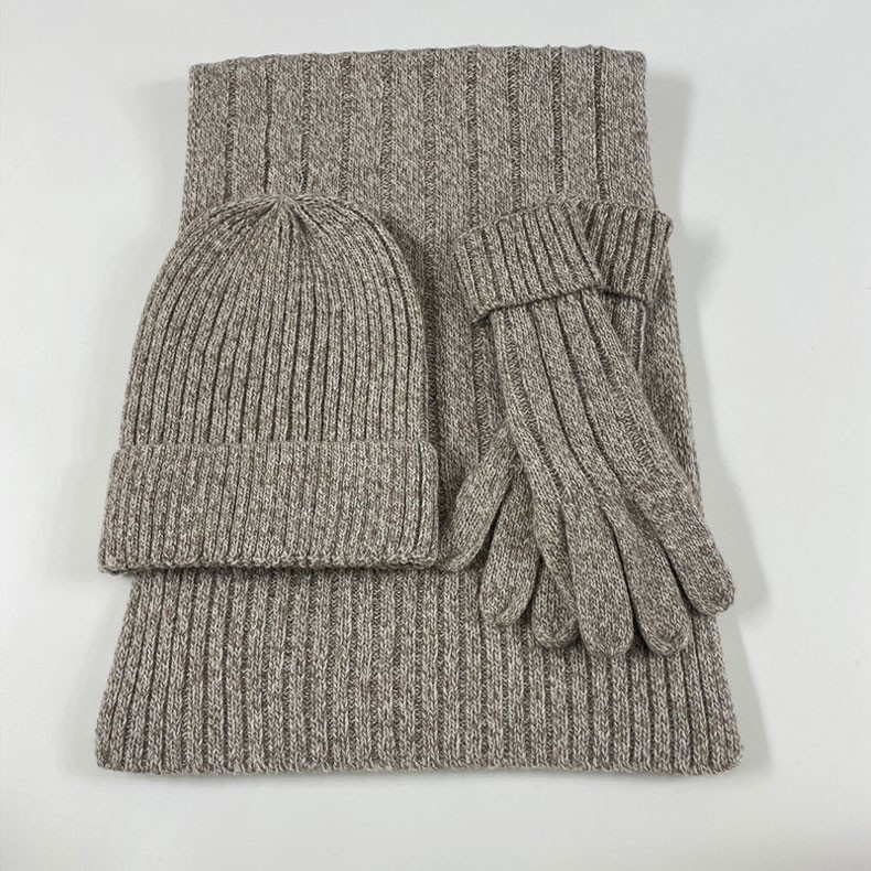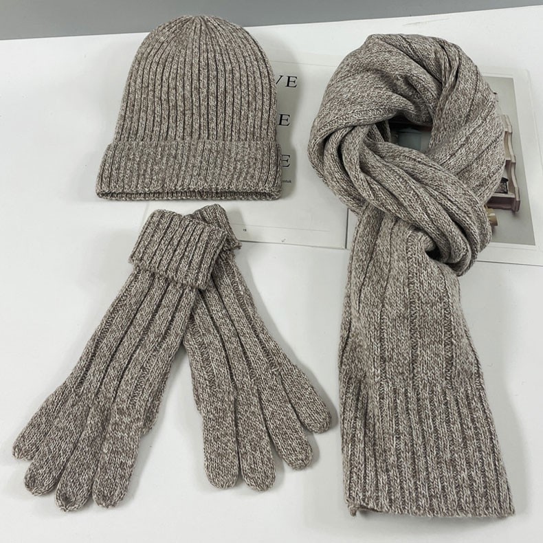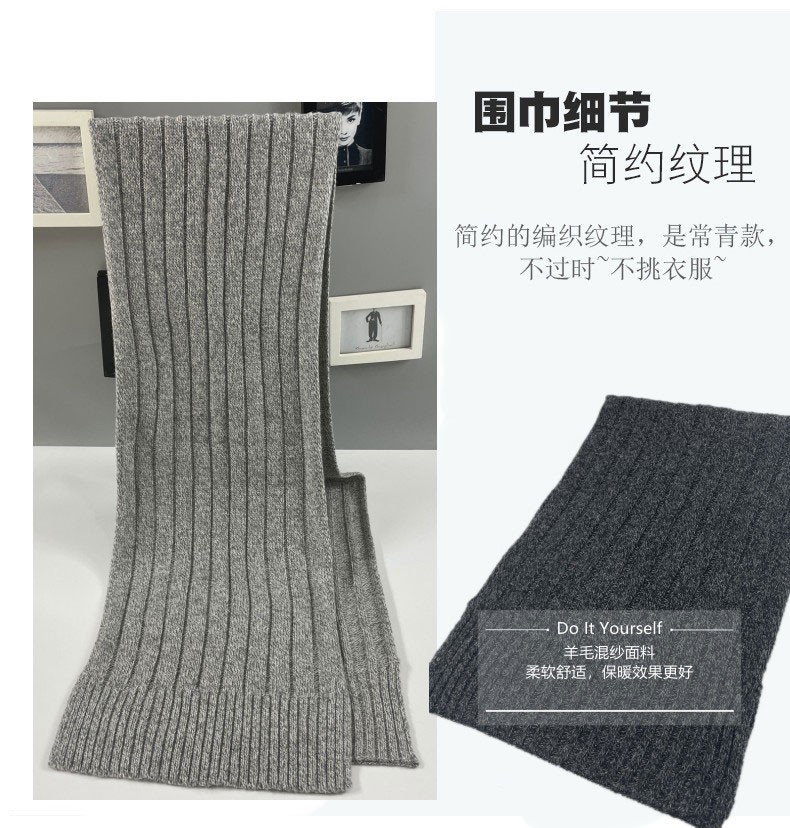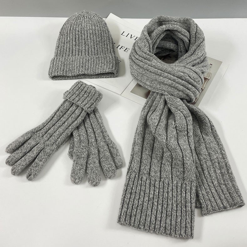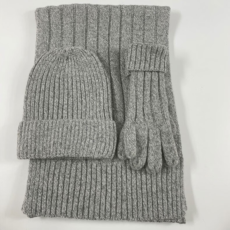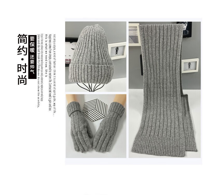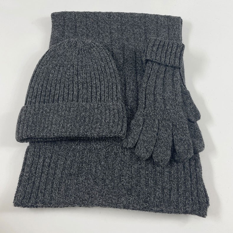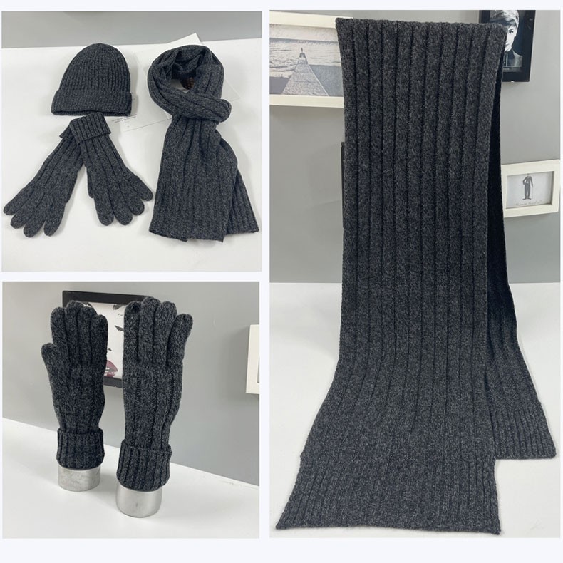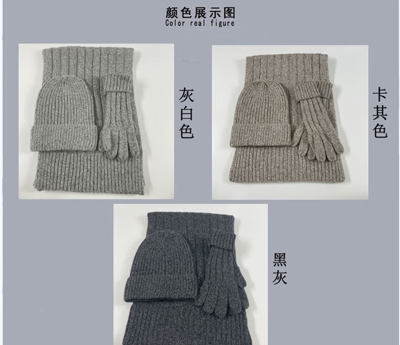 誠一集手套帽子围巾三件套男士围巾礼盒 毛线帽子围巾男保暖手套冬季 黑灰色 三件套