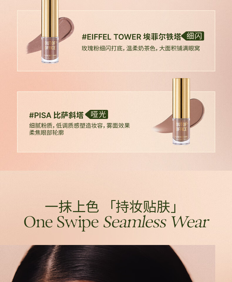 OUT-OF-OFFICE气质雾感液体眼影OOO细闪哑光亮片不晕妆修饰眼型百搭 礼物 【液体眼影】埃菲尔铁塔+比萨斜塔