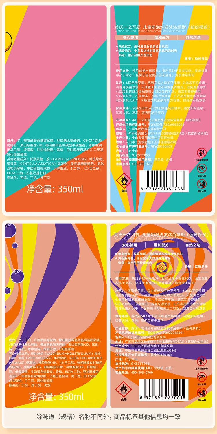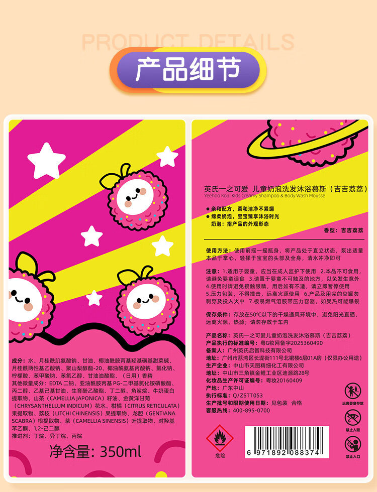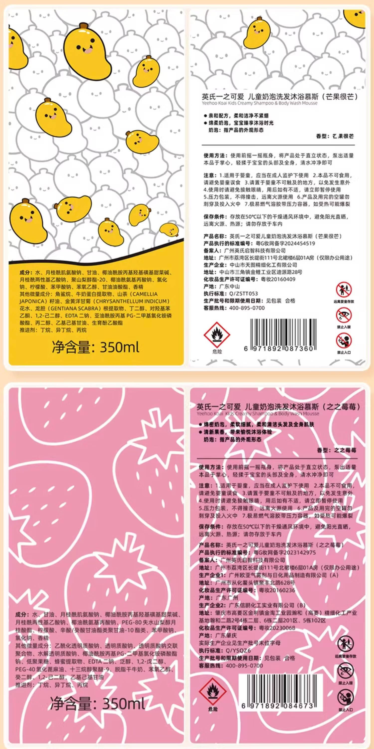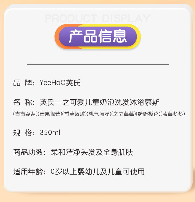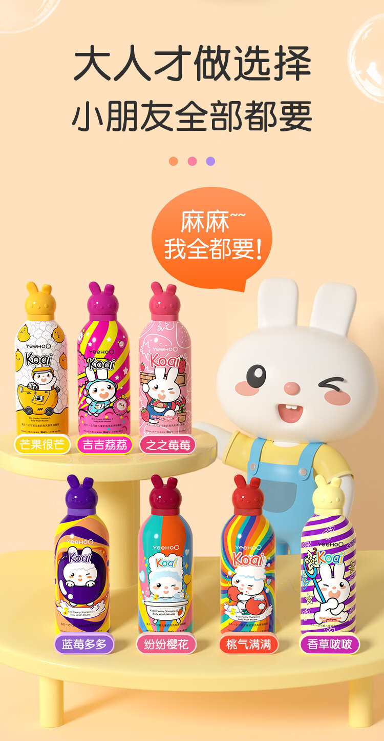 英氏(YEEHOO)儿童沐浴露洗发水二合一婴幼儿宝宝洗发水沐浴露慕斯小奶泡泡沫浴 【桃子味+樱花味】