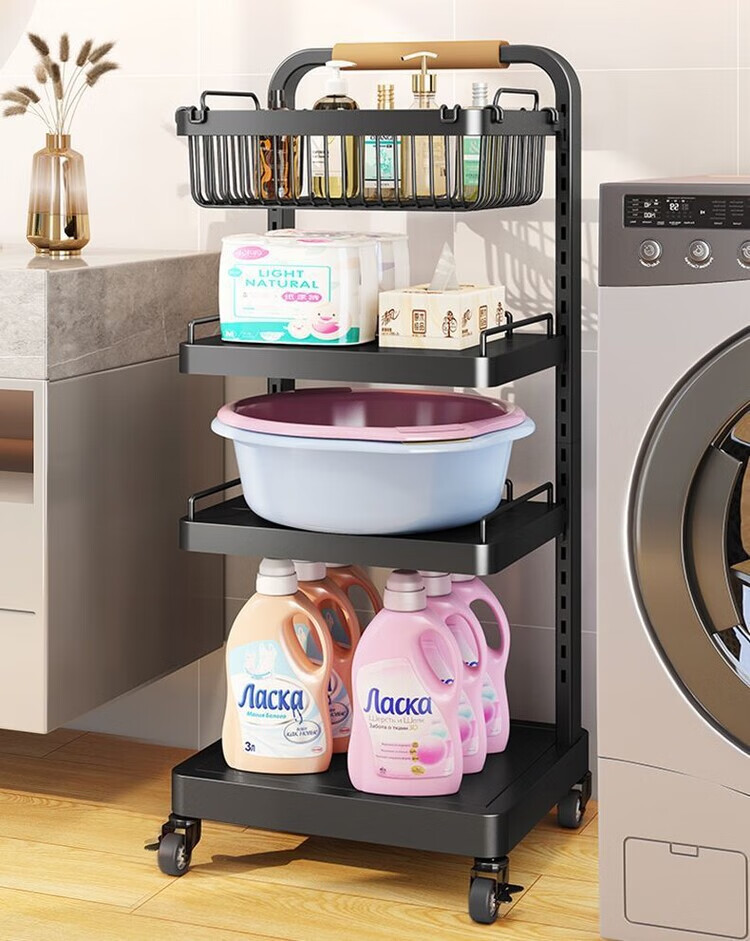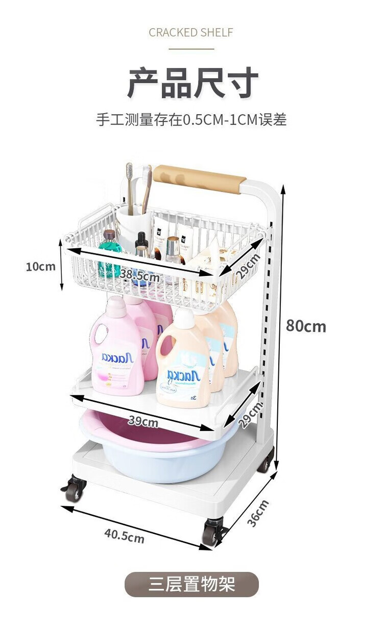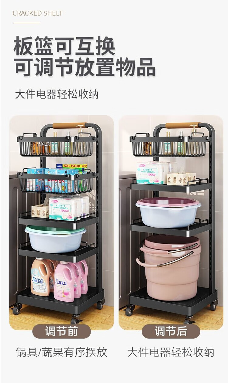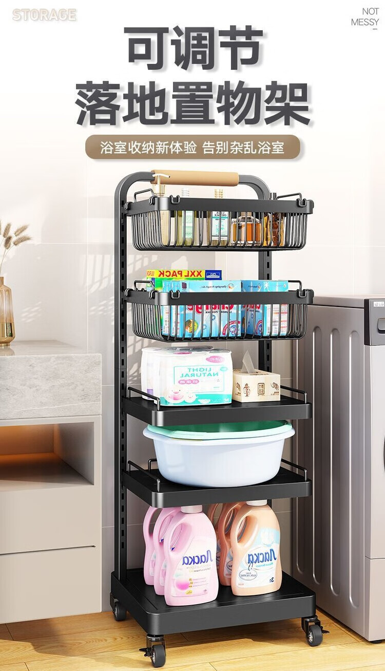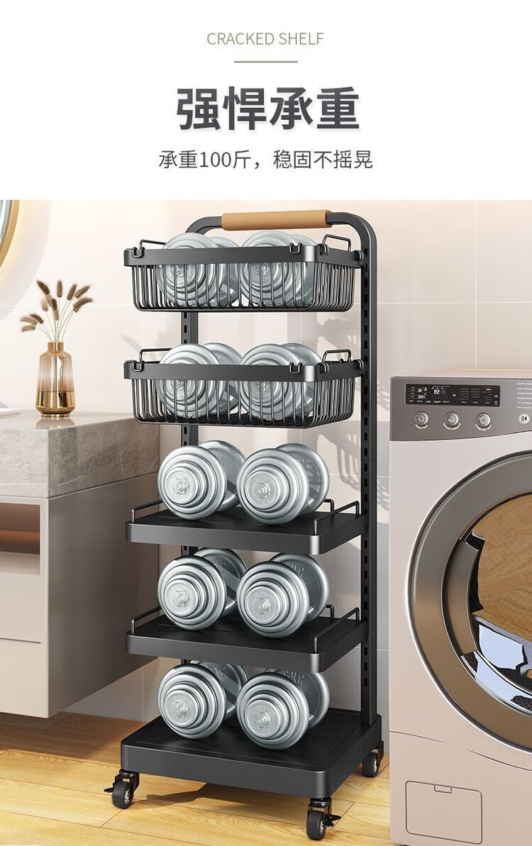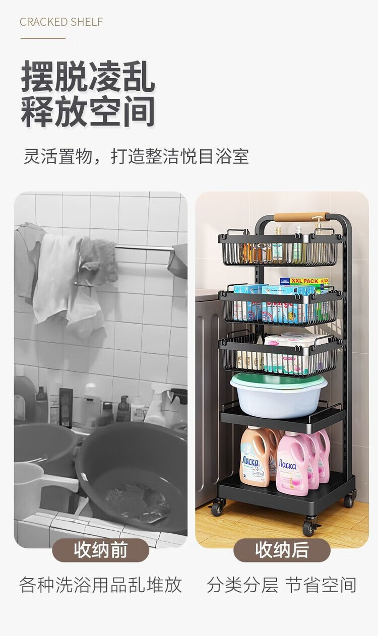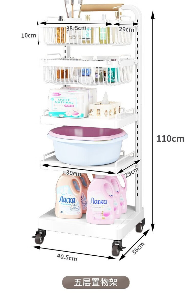 阳台洗衣机旁置物架落地洗衣液浴室盆子脸盆厕所多层卫生间收纳架 【白色】五层5板