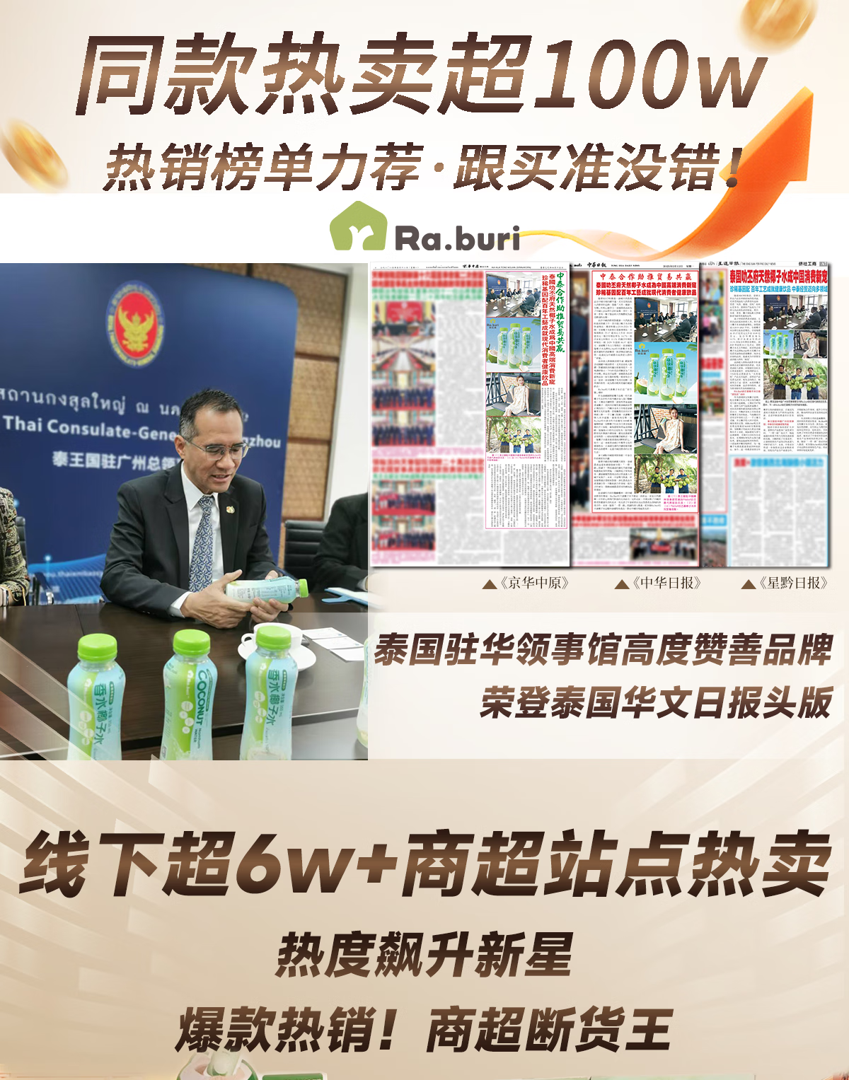 RA.BURI泰国进口NFC100%椰子水饮料原浆纯果汁椰汁水补水电解质年货礼盒 【店内热销TOP1】246ml*16瓶补水 【热卖爆款】日期新鲜