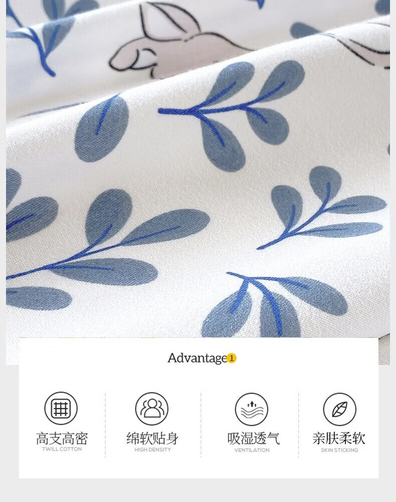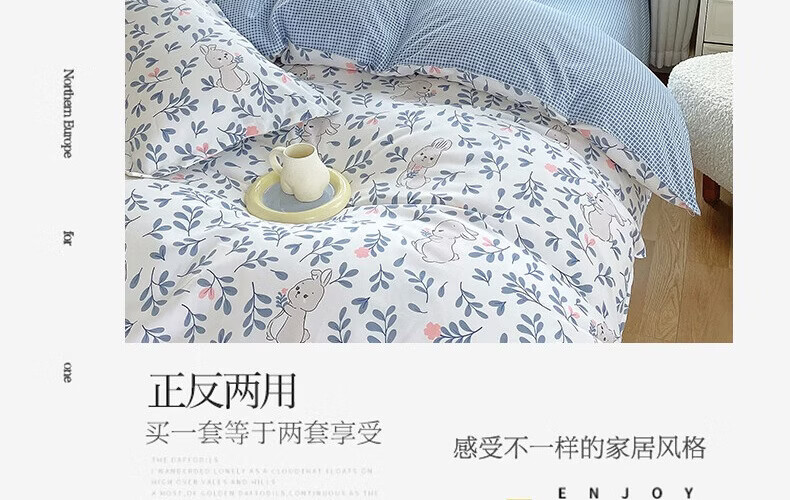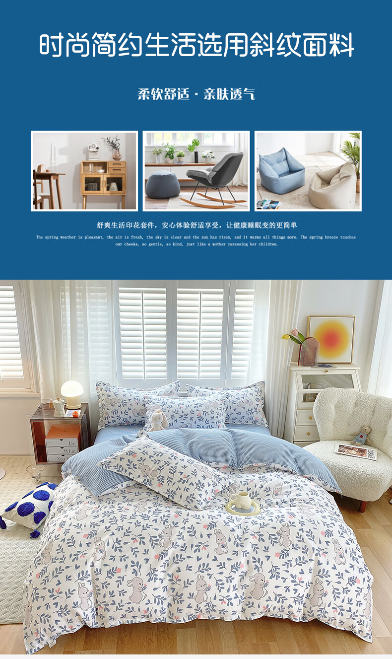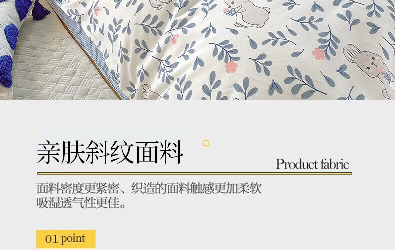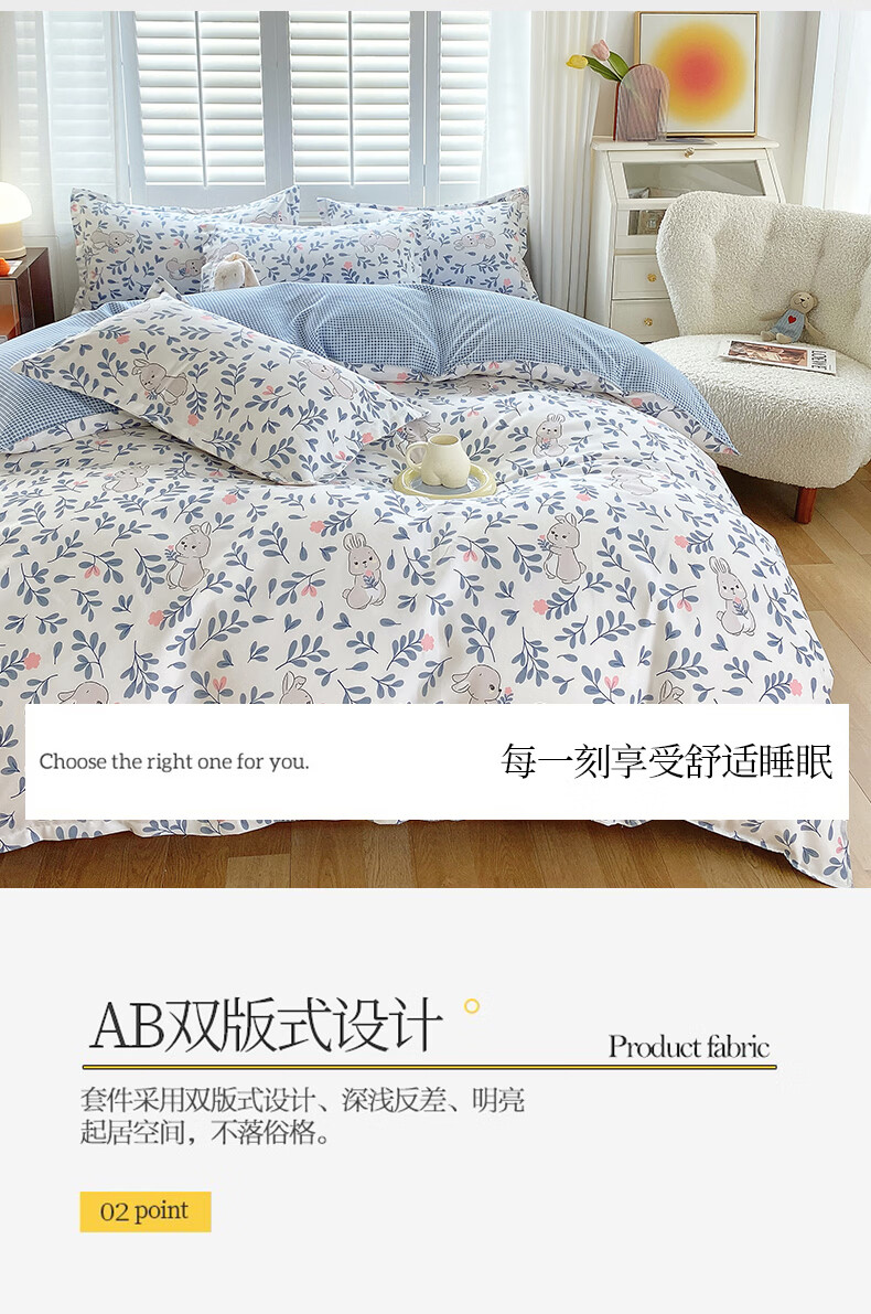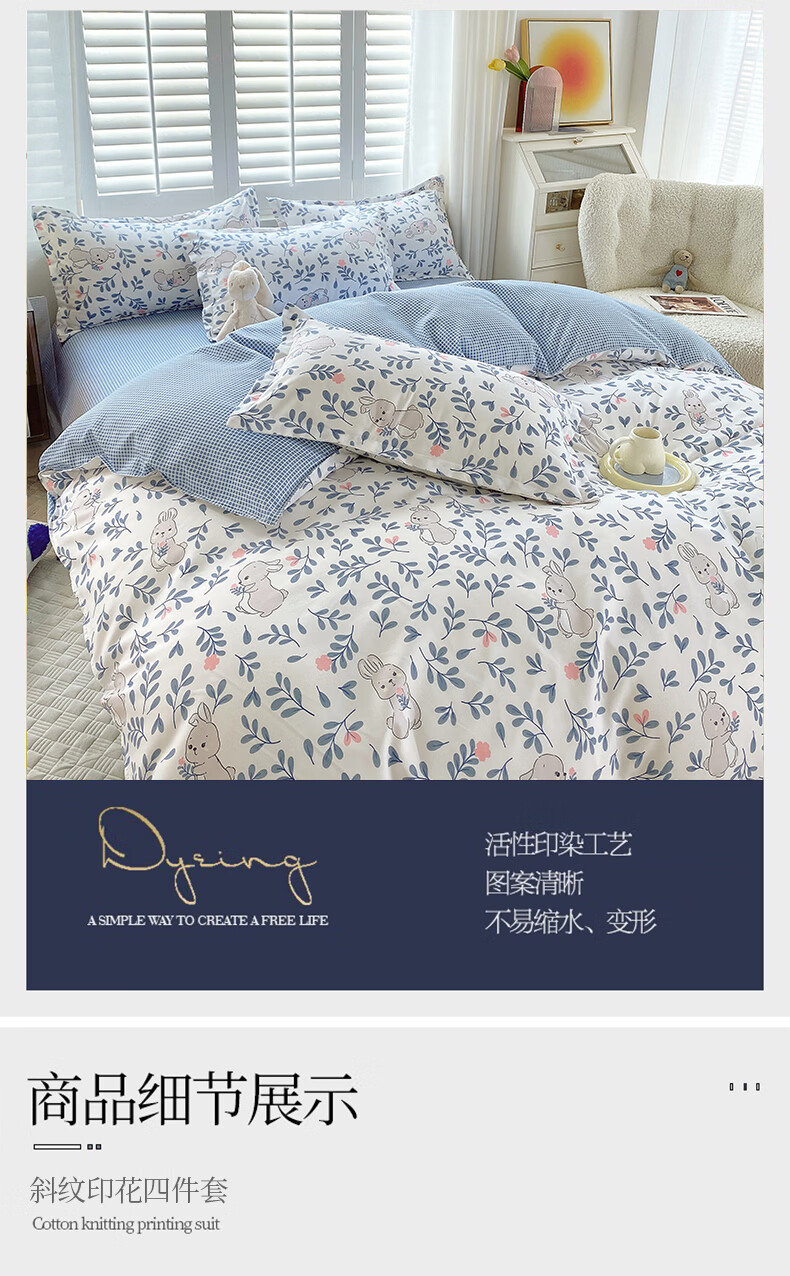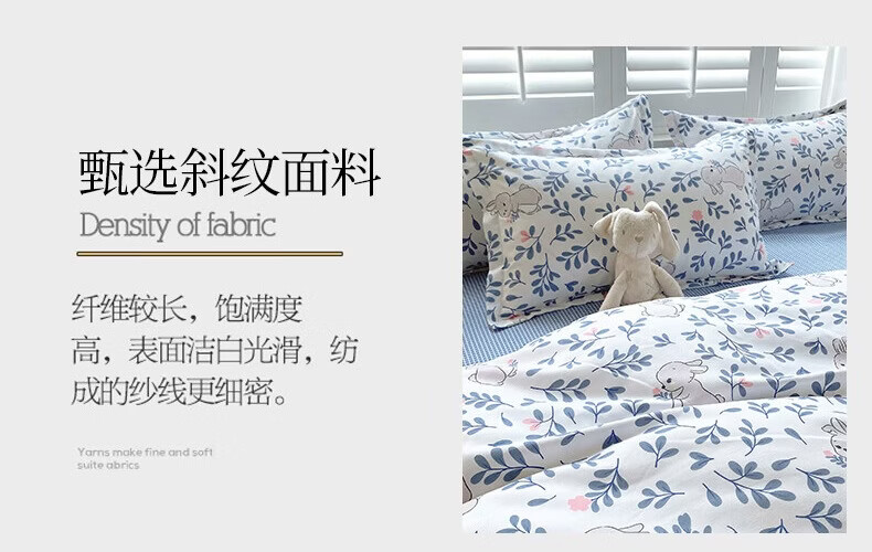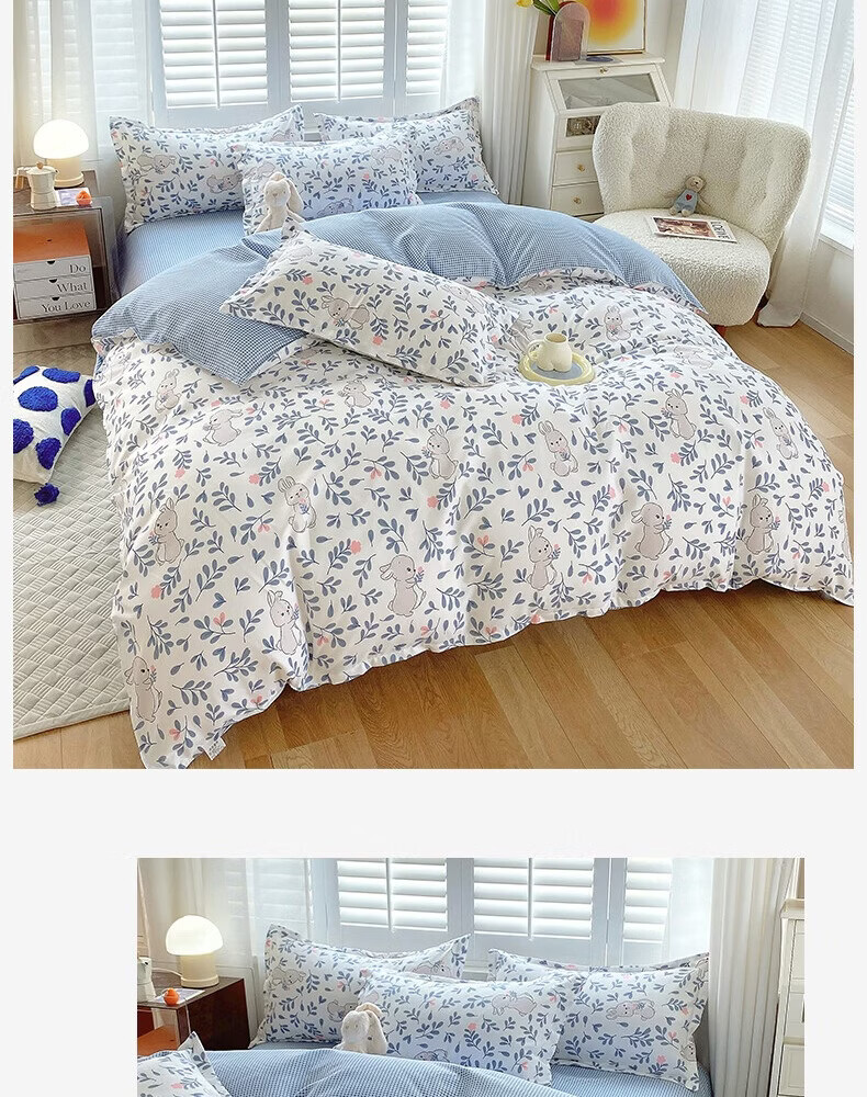 金号100%全棉加厚磨毛四件套单人学生宿舍被罩纯棉被套床单三件套套件 花园小兔【全棉磨毛】 单被套-【适150*200cm被芯】