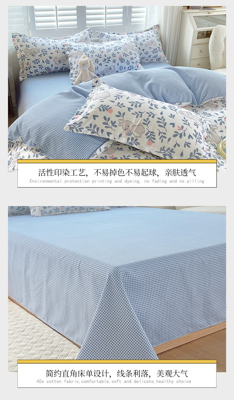 金号全棉加厚磨毛四件套单人学生宿舍被罩100%纯棉被套床单三件套套件 花花熊【A类100%全棉 加厚磨毛】 小号床单三件套(适合1.5m被芯)